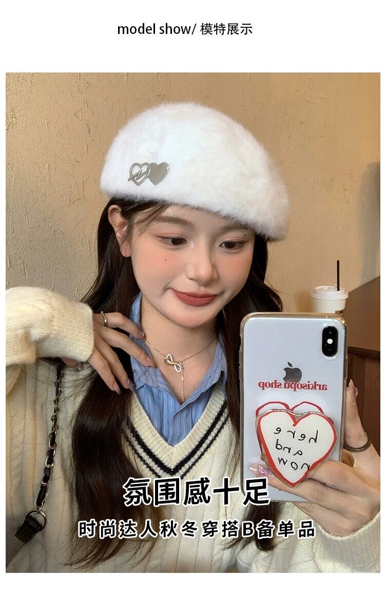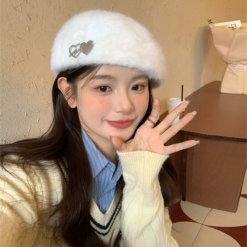 甘くてクールな白ウサギの毛皮のベレー帽女性 2023 新しいスタイルの顔見せ小さな逆着用病棟帽子豪華な画家の帽子 ホワイト 大人ガーリー スウィート キュート カジュアル ベレット ヘアアクセサリー 15dd12989232724