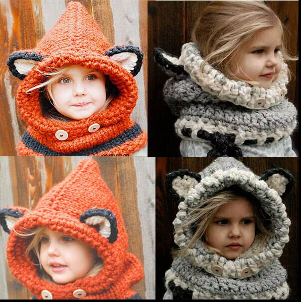 かわいい耳キツネ動物ウール帽子秋と冬厚く暖かい耳保護ニットスカーフ女性の親子 大人ガーリー スウィート キュート カジュアル オータム 秋物 ウィンター 冬物 15dd39020271556