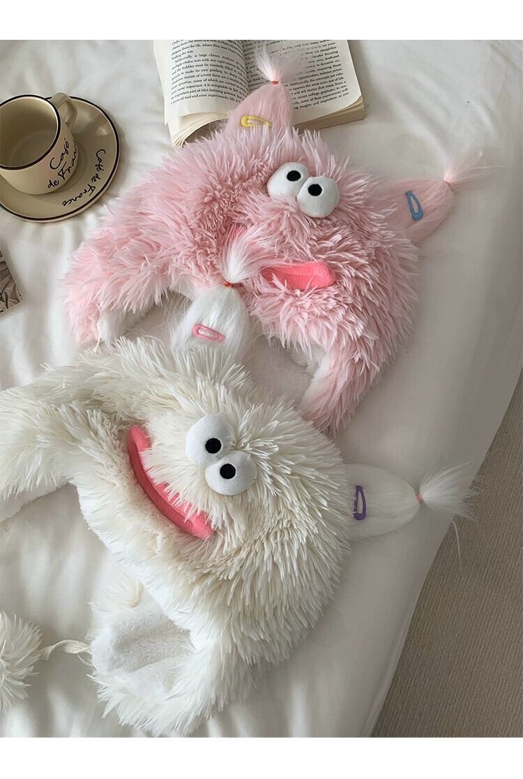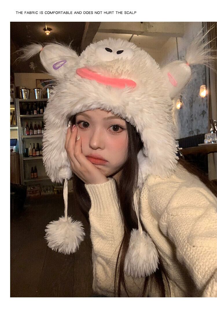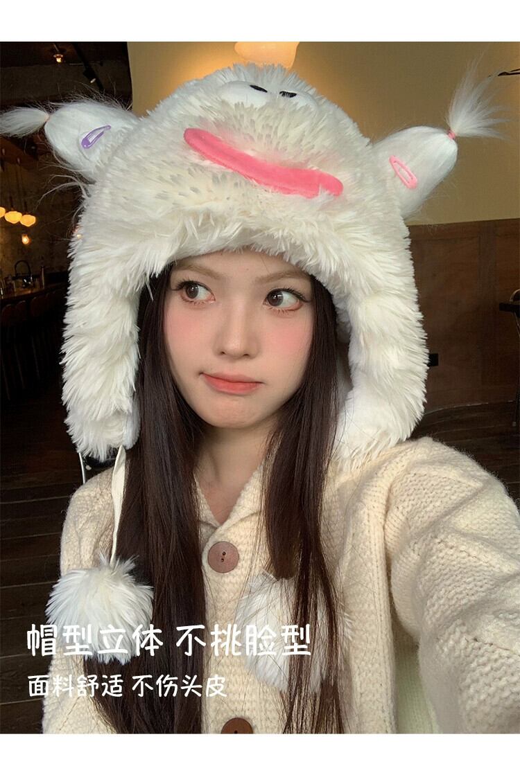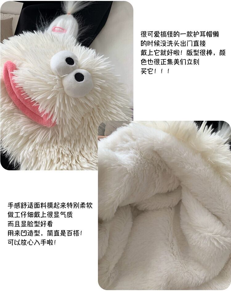 秋冬のリトルモンスターハット女性、毛皮で覆われた、面白くてかわいいニットぬいぐるみ帽子、暖かくて防寒性のある耳保護ウール帽子 大人ガーリー スウィート キュート カジュアル オータム 秋物 ウィンター 冬物 15dd14217207004