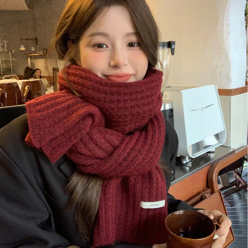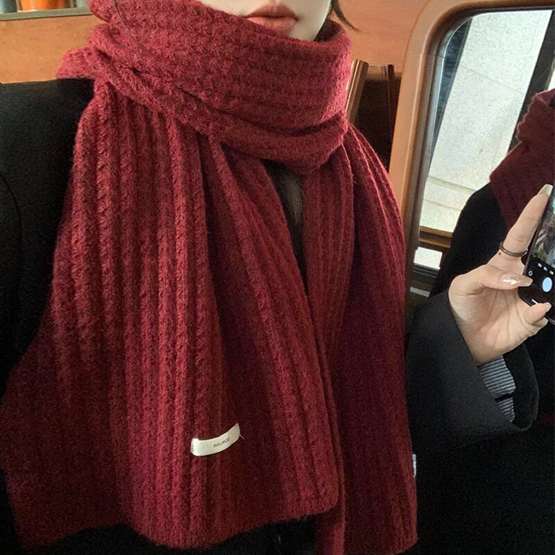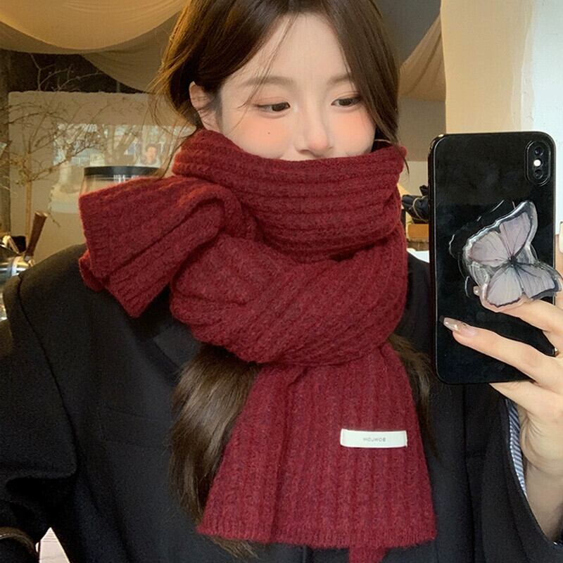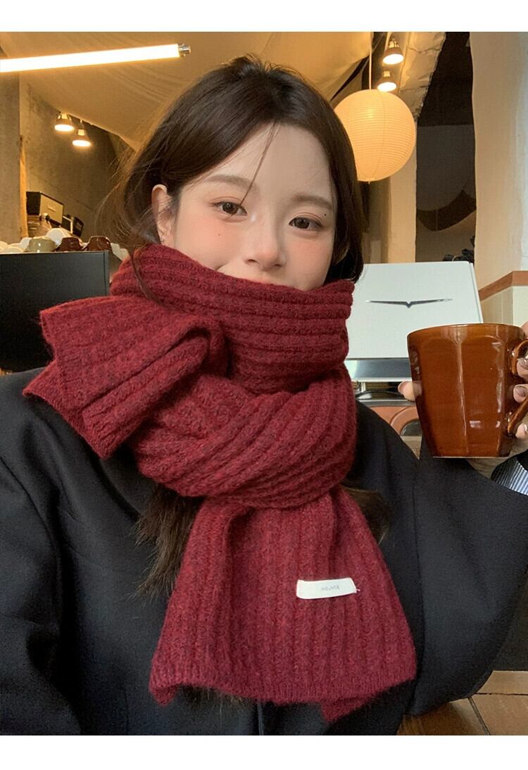 2023 冬のウールの赤いスカーフの女性の新しいハイエンドの暖かく厚みのある暖かくて耐寒性ニットスカーフの女性 レッド ウィンター 冬物 15dd37475020100