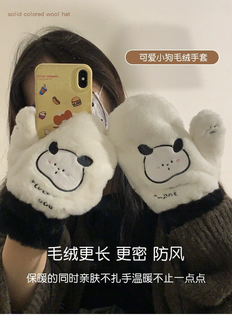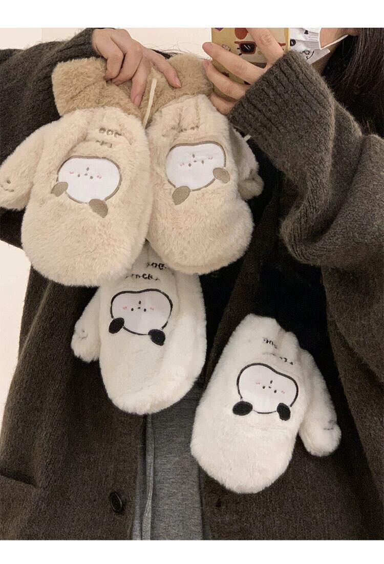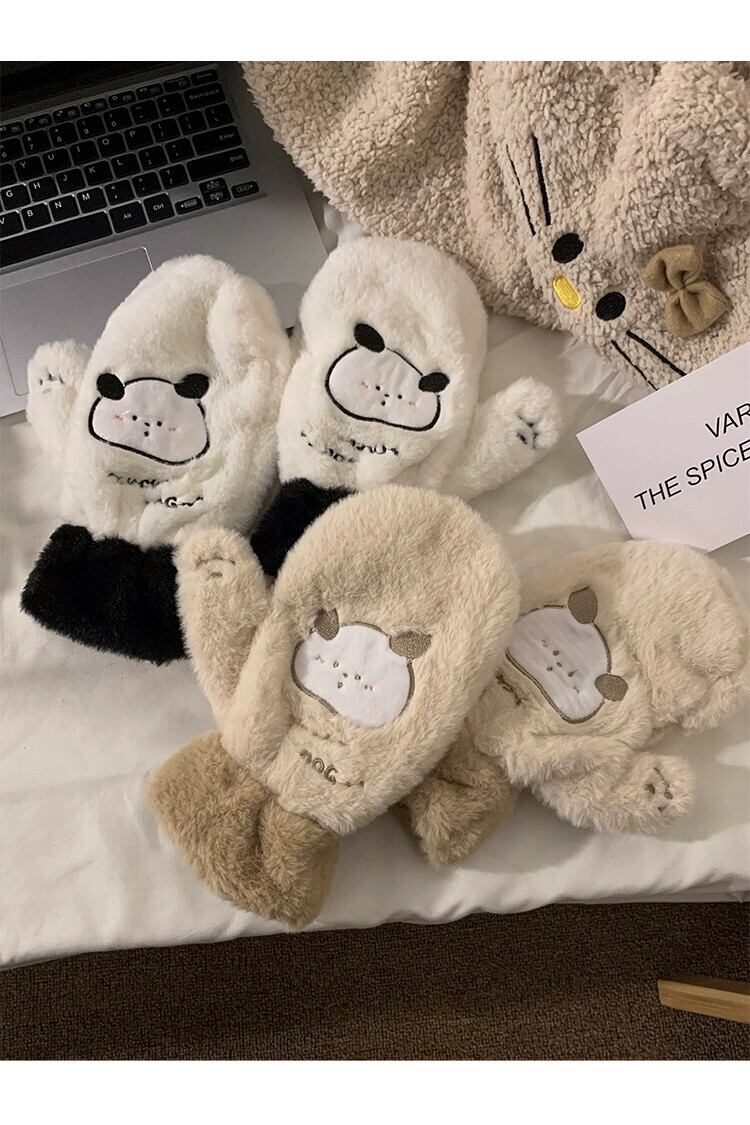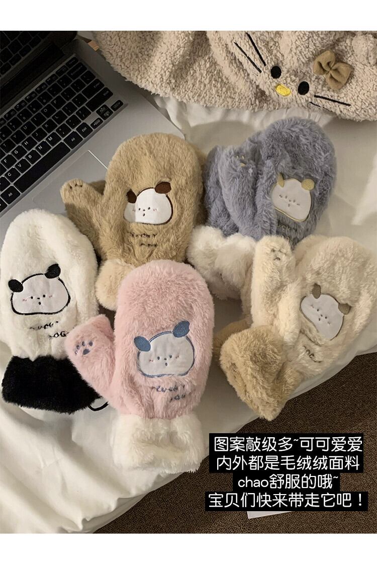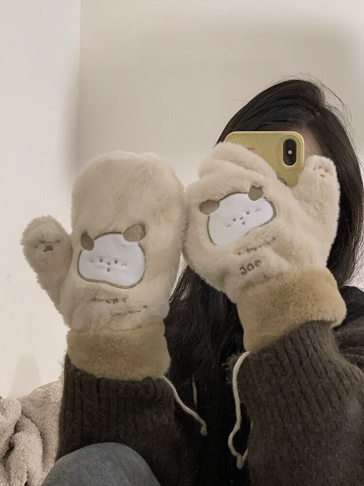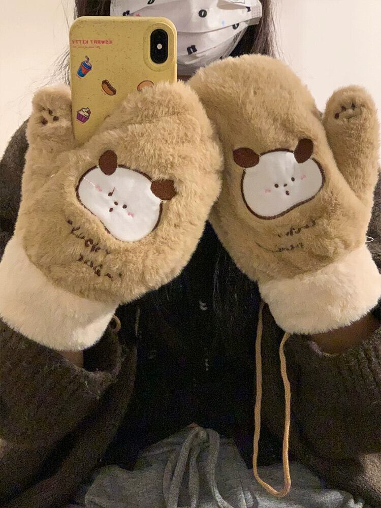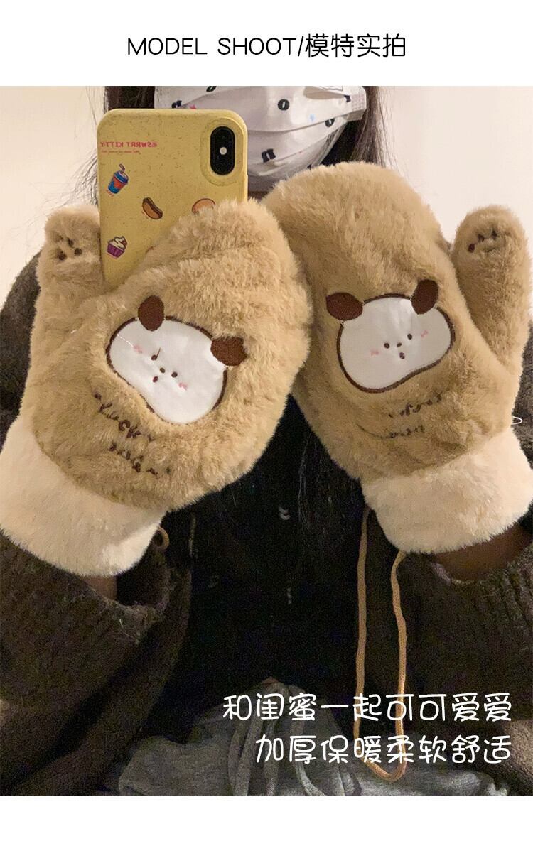 冬用手袋 クマ プラス ベルベット 肥厚 オールインクルーシブ 指 ぬいぐるみ かわいい 暖かい 髪 防寒 サイクリング 学生 大人ガーリー スウィート キュート カジュアル ウィンター 冬物 15dd87869596825