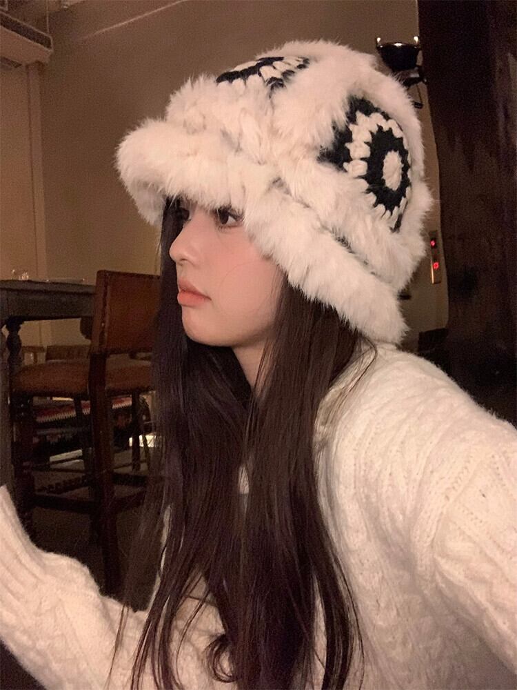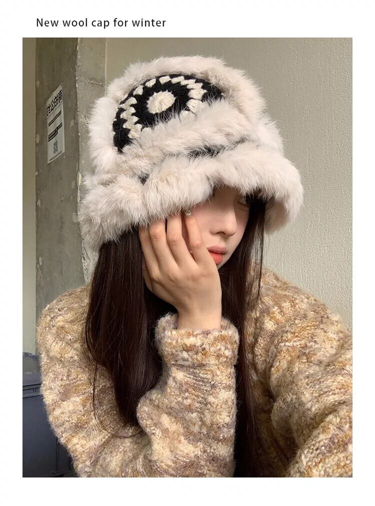 ウサギの毛皮ニットぬいぐるみ帽子女性の秋と冬の毛皮のような虎の頭ライオン漁師の帽子顔を出すかわいい小さなウールの帽子 大人ガーリー スウィート キュート カジュアル オータム 秋物 ウィンター 冬物 15dd1737460090