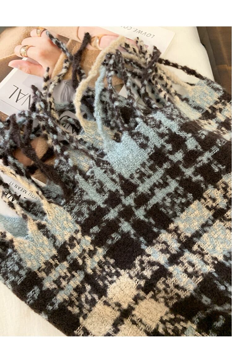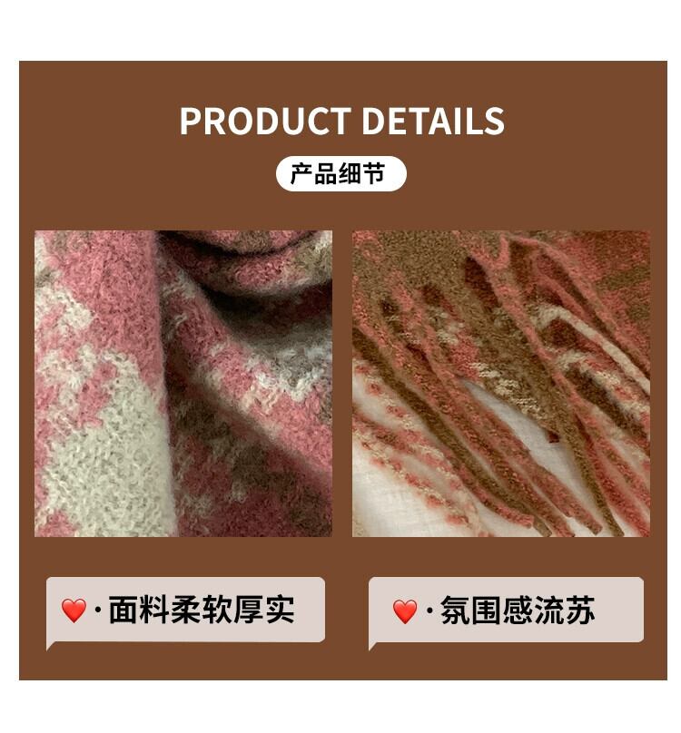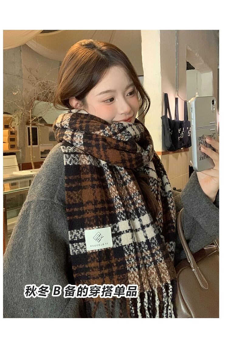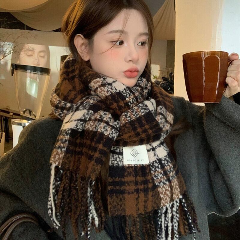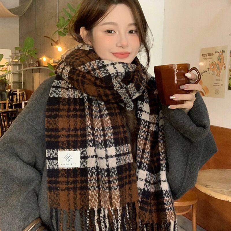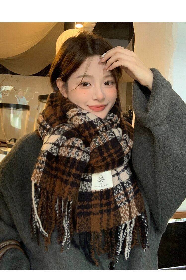 メイラードスタイルブラウン模造カシミヤスカーフ女性の冬のハイエンドチェック柄モヘア肥厚スカーフ学生新スタイル ウィンター 冬物 15dd9463981685
