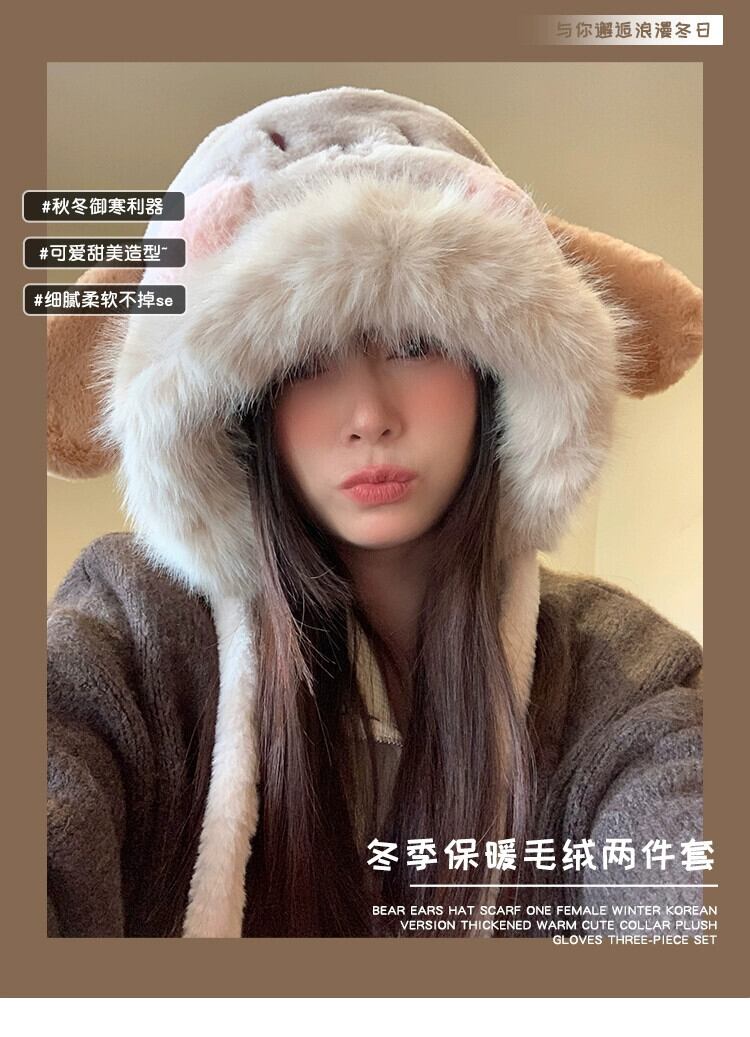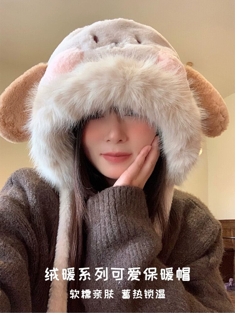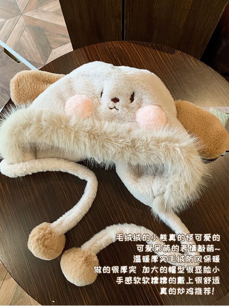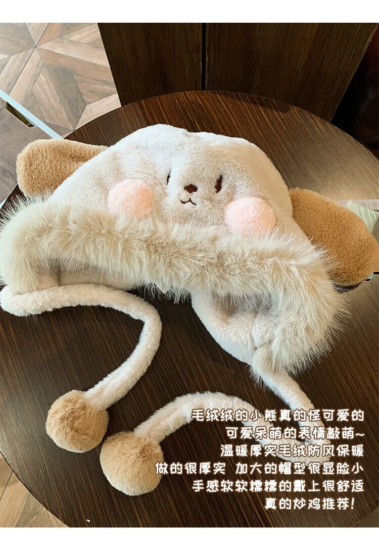 かわいいぬいぐるみ子犬耳帽子女性の冬暖かいプラスベルベット多用途ソフトかわいい甘いサイクリング耳保護雷峰帽子トレンディ 大人ガーリー スウィート キュート カジュアル ウィンター 冬物 15dd22249525413