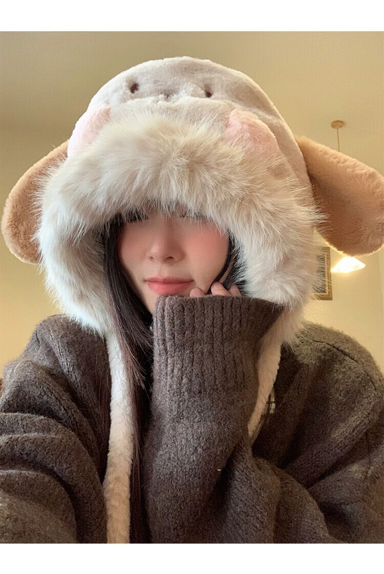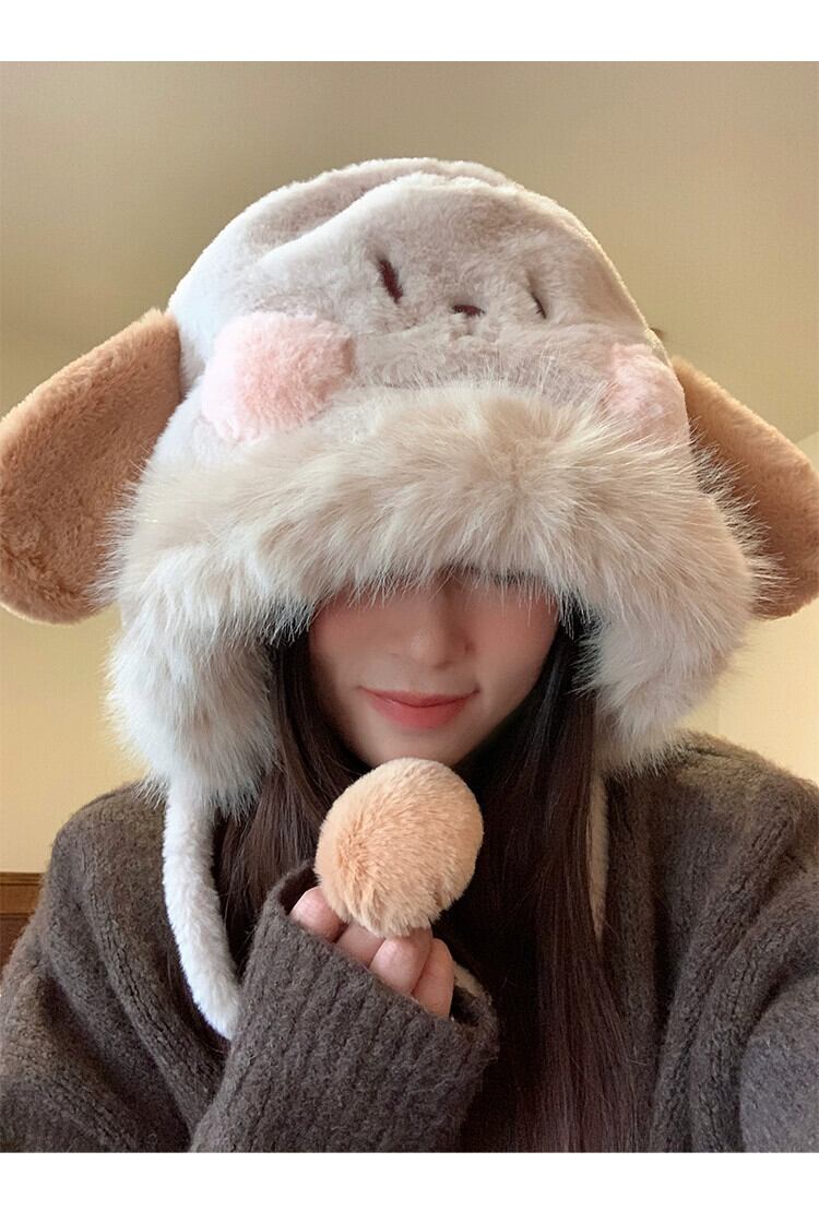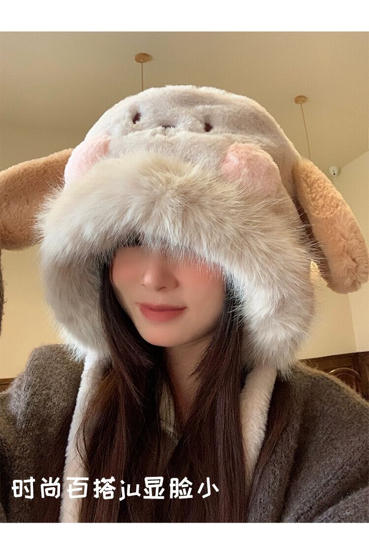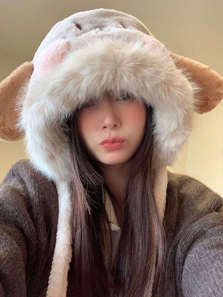 かわいいぬいぐるみ子犬耳帽子女性の冬暖かいプラスベルベット多用途ソフトかわいい甘いサイクリング耳保護雷峰帽子トレンディ 大人ガーリー スウィート キュート カジュアル ウィンター 冬物 15dd22249525413