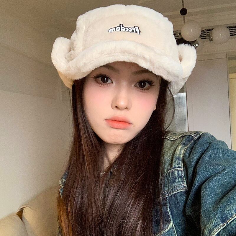 豪華なアヒルくちばしの帽子の女性 2023 新しい秋と冬の暖かい野球帽プラスベルベット肥厚防寒耳保護雷峰帽子 オータム 秋物 ウィンター 冬物 15dd11278998695