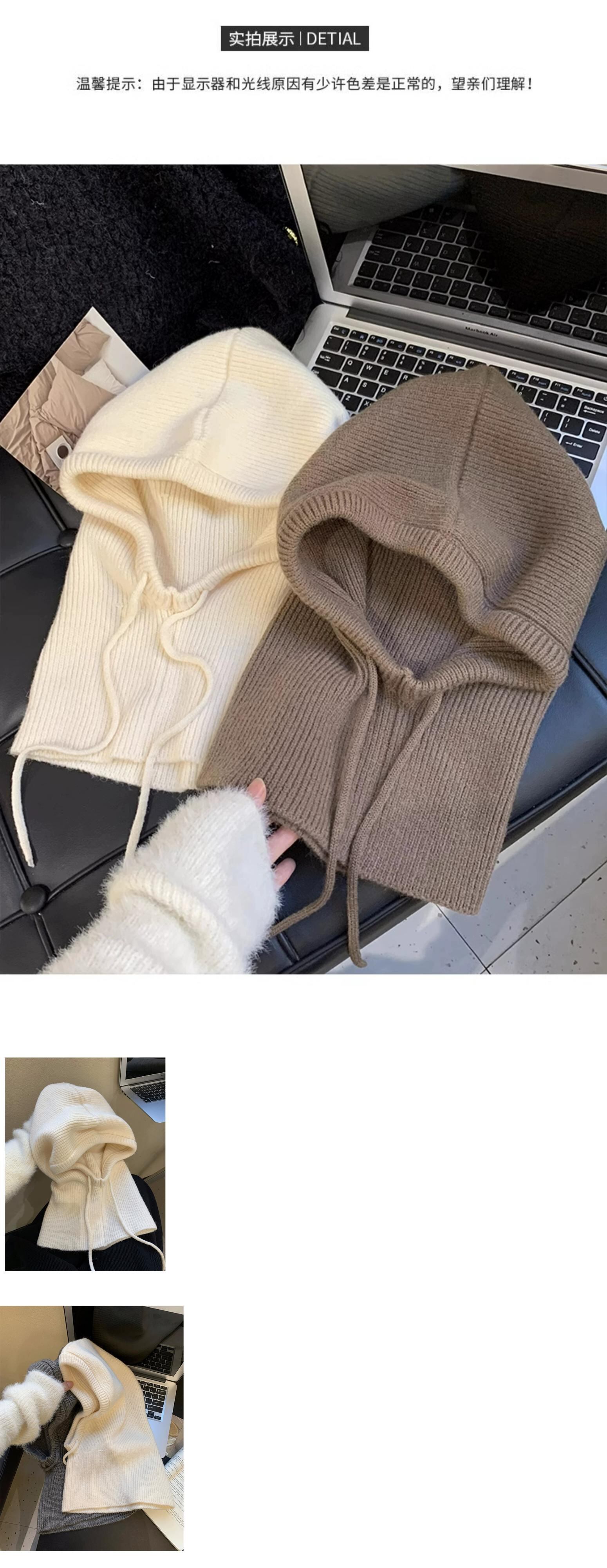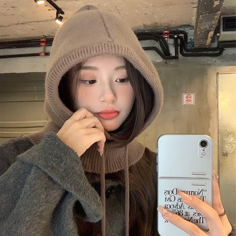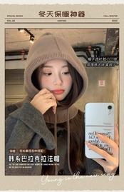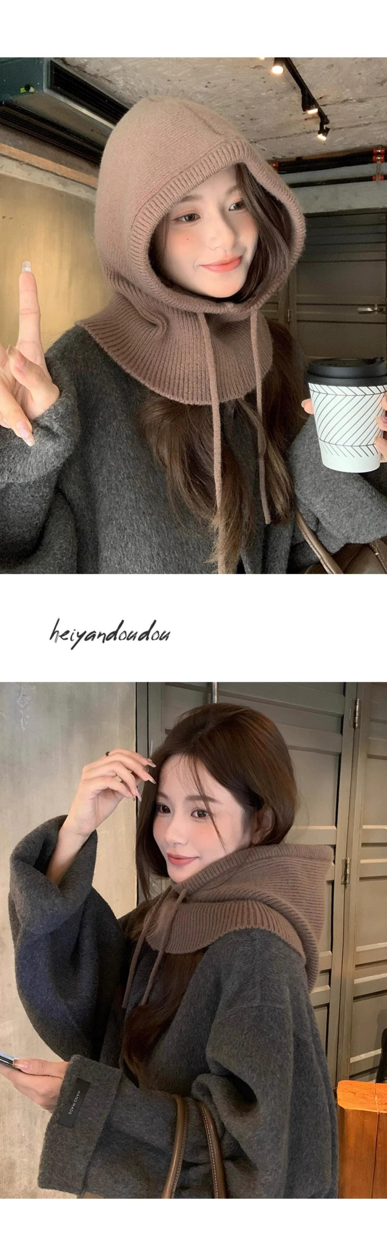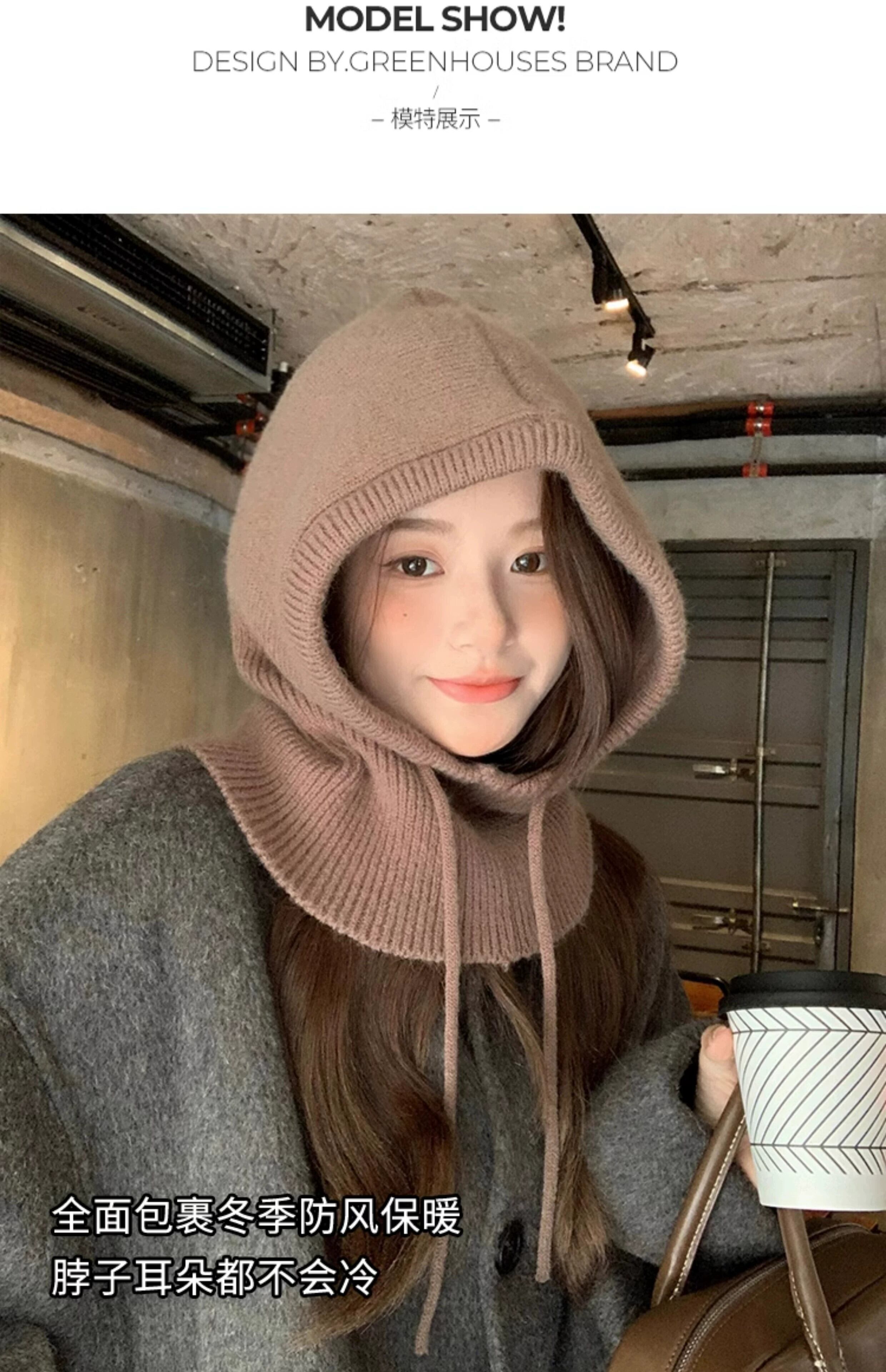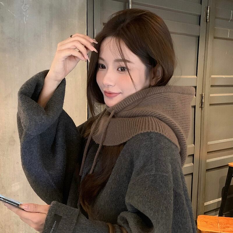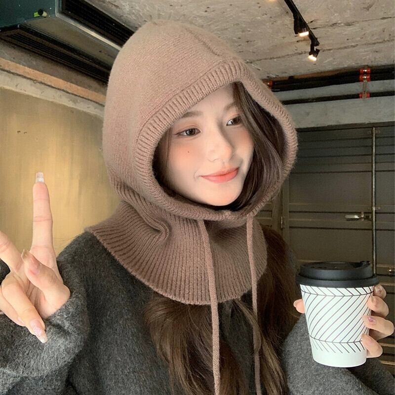 目出し帽女性の冬のファッション暖かい帽子スカーフ統合耳保護ウールニット帽子ネックプロテクター ウィンター 冬物 15dd59316357393