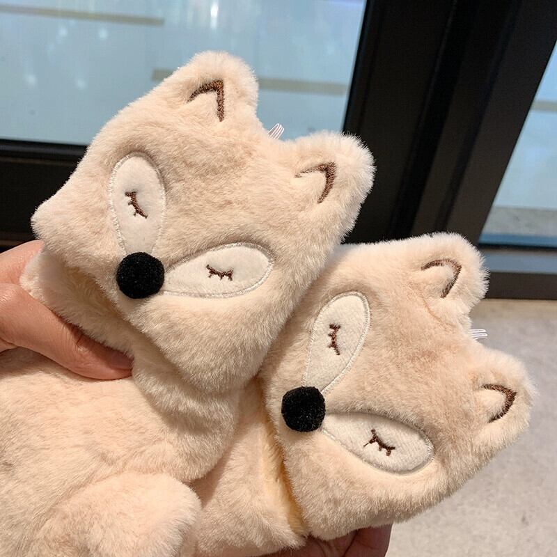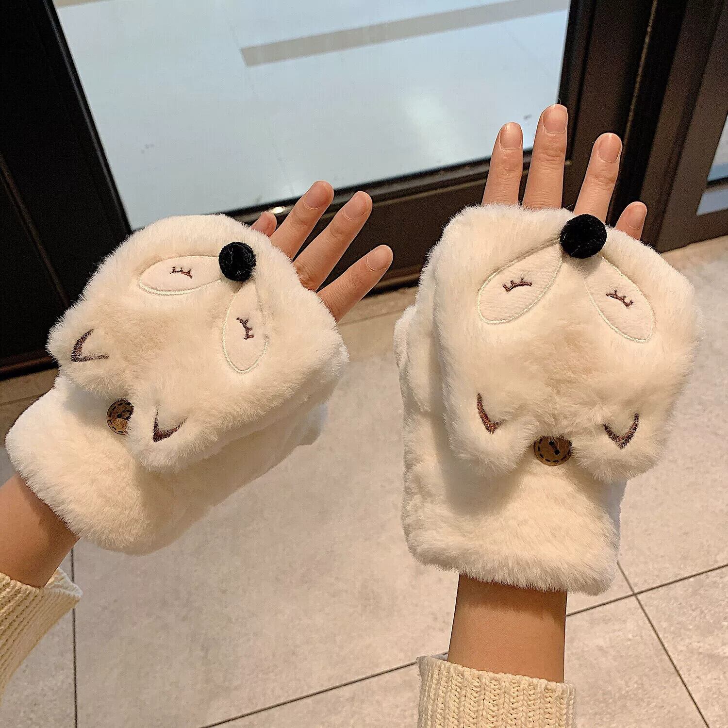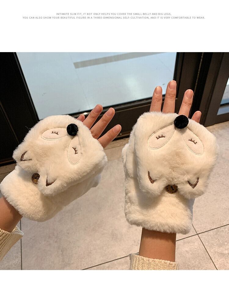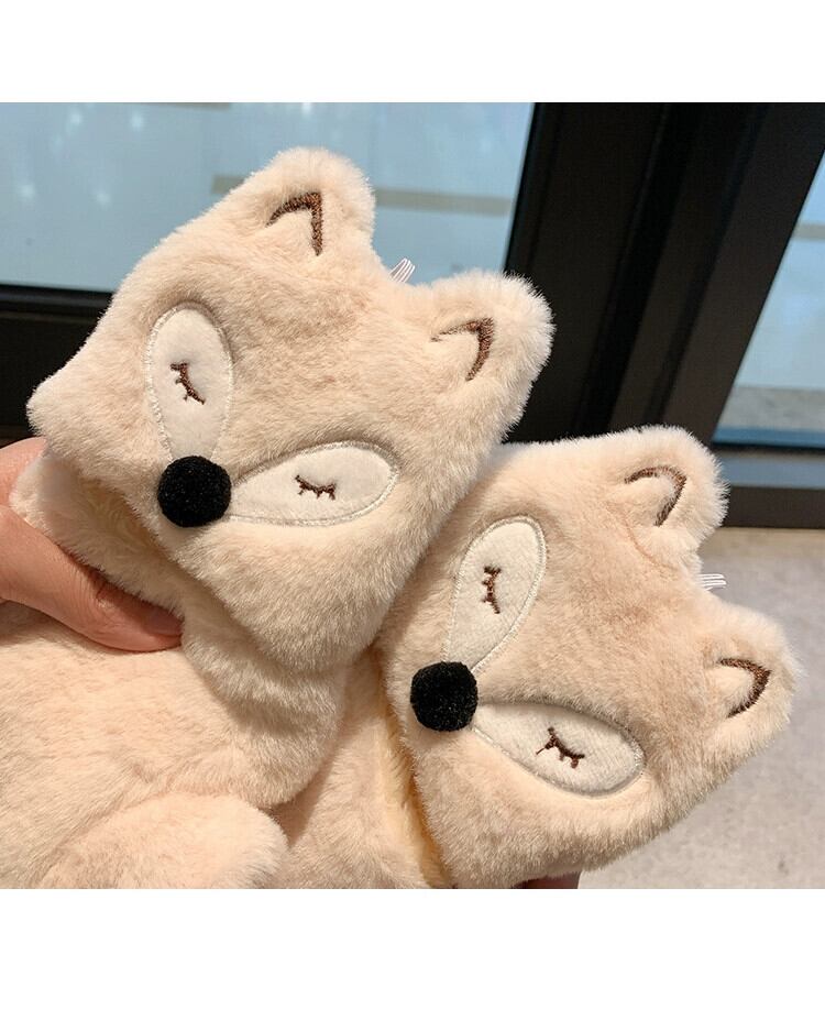 かわいい小さなキツネのフリップトップハーフフィンガーグローブレディース冬用インプラスベルベットと厚みがあり、冬に学生の防寒性と指なしを保ちます。 大人ガーリー スウィート キュート カジュアル ウィンター 冬物 15dd66785944678