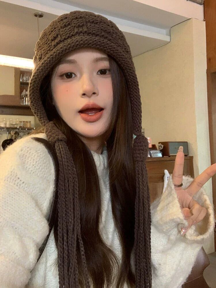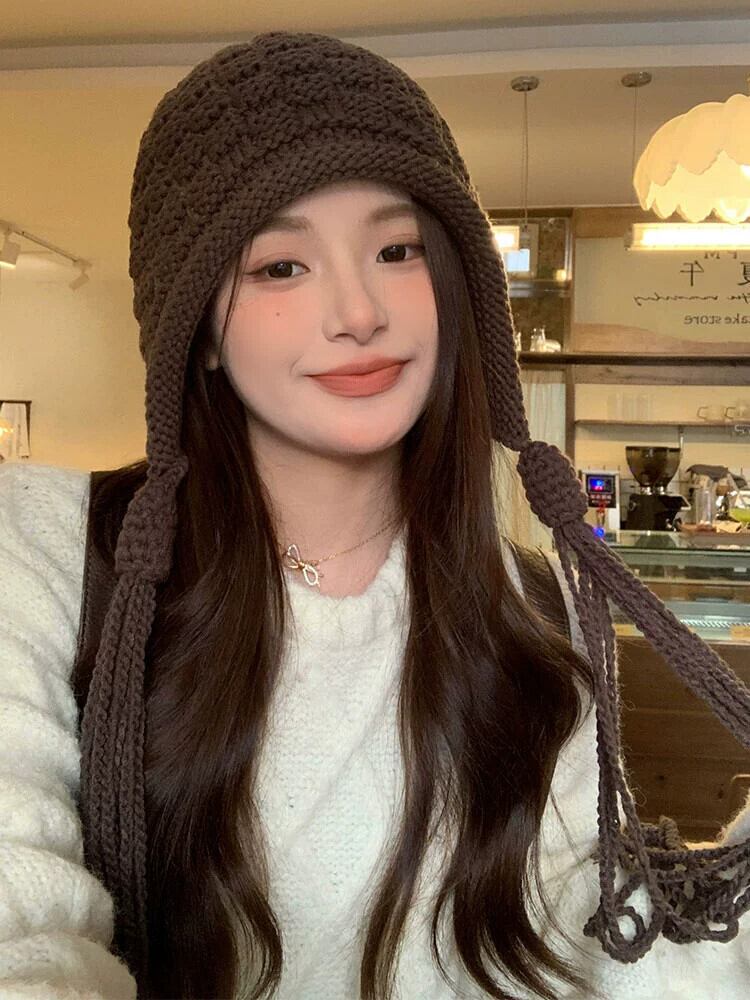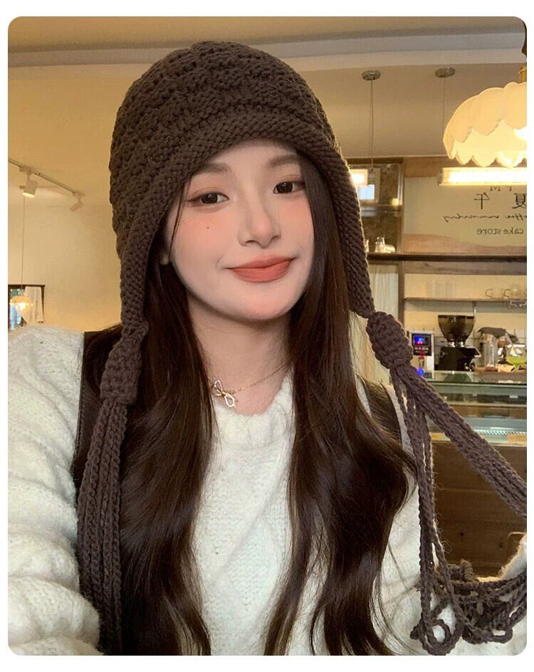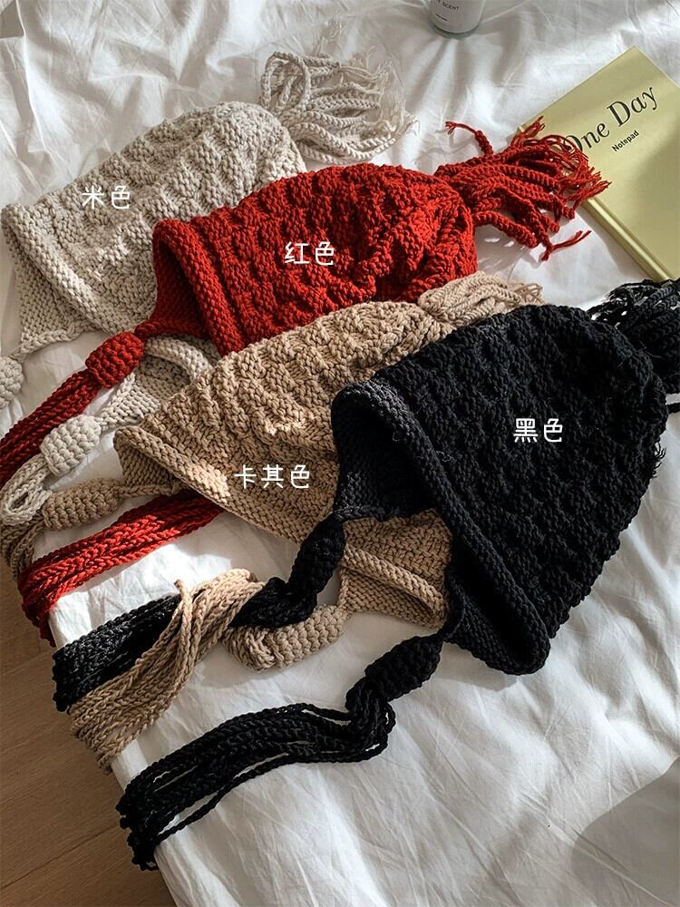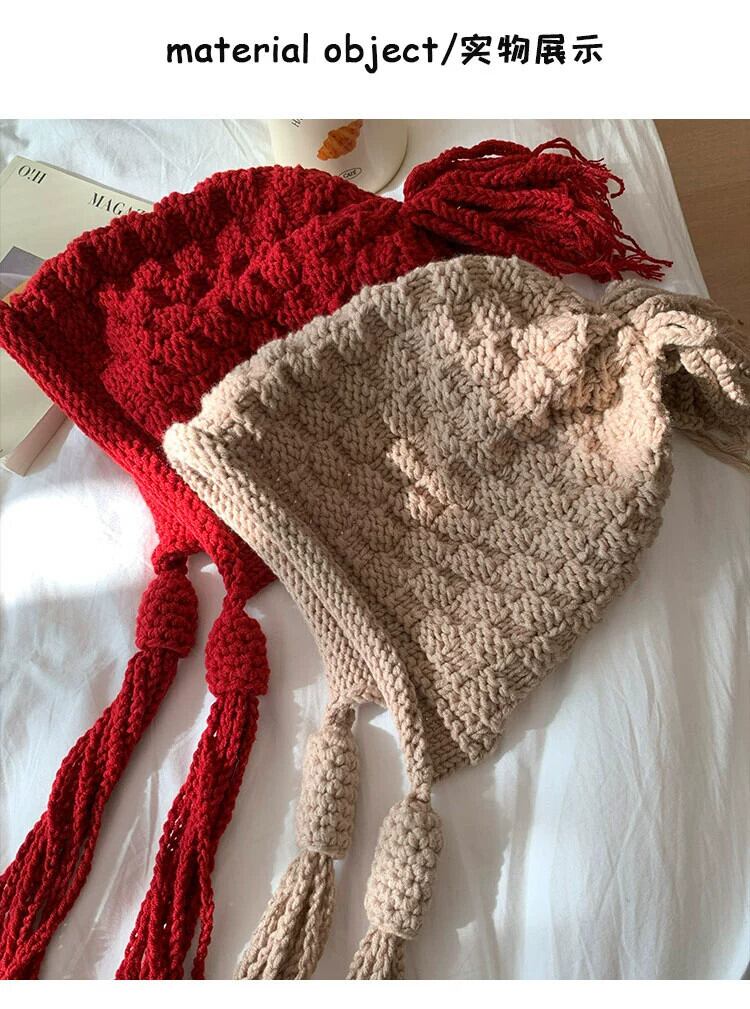 ese 手作りテルニット帽子女性秋と冬の甘くてかわいいウール暖かい肥厚耳保護雷峰帽子 大人ガーリー スウィート キュート カジュアル オータム 秋物 ウィンター 冬物 15dd94342185128