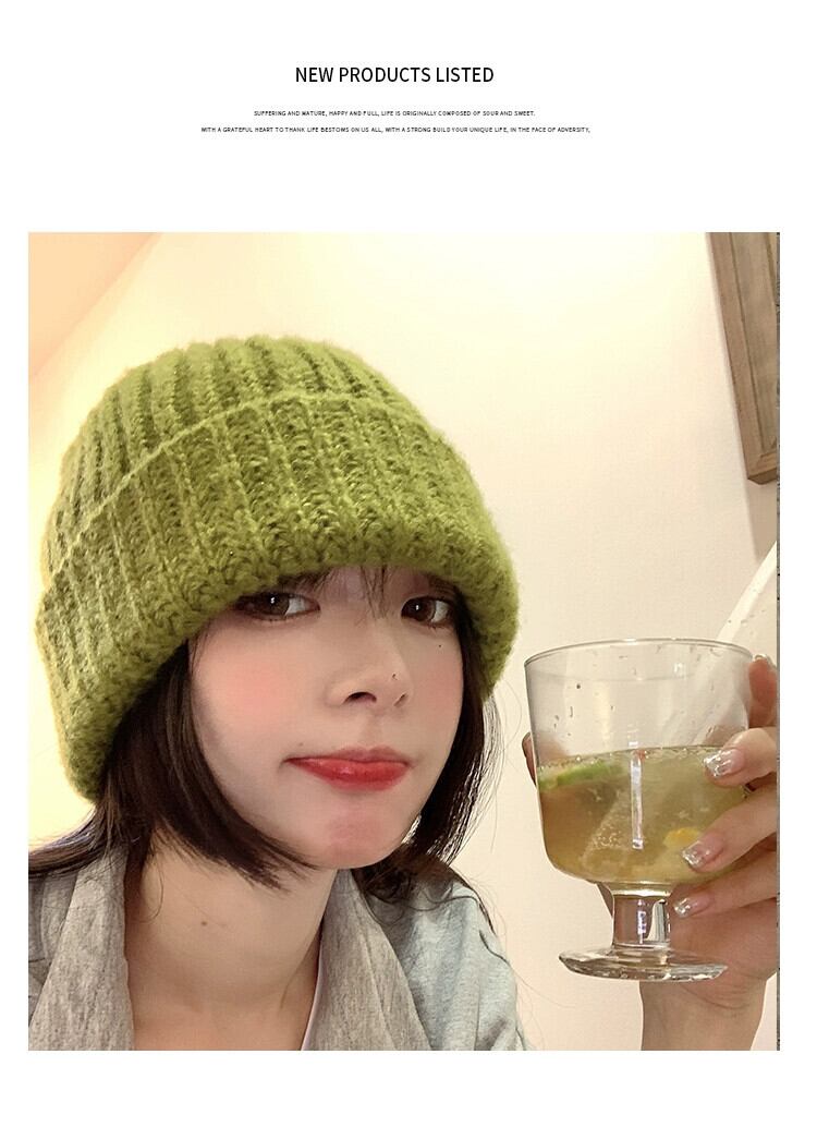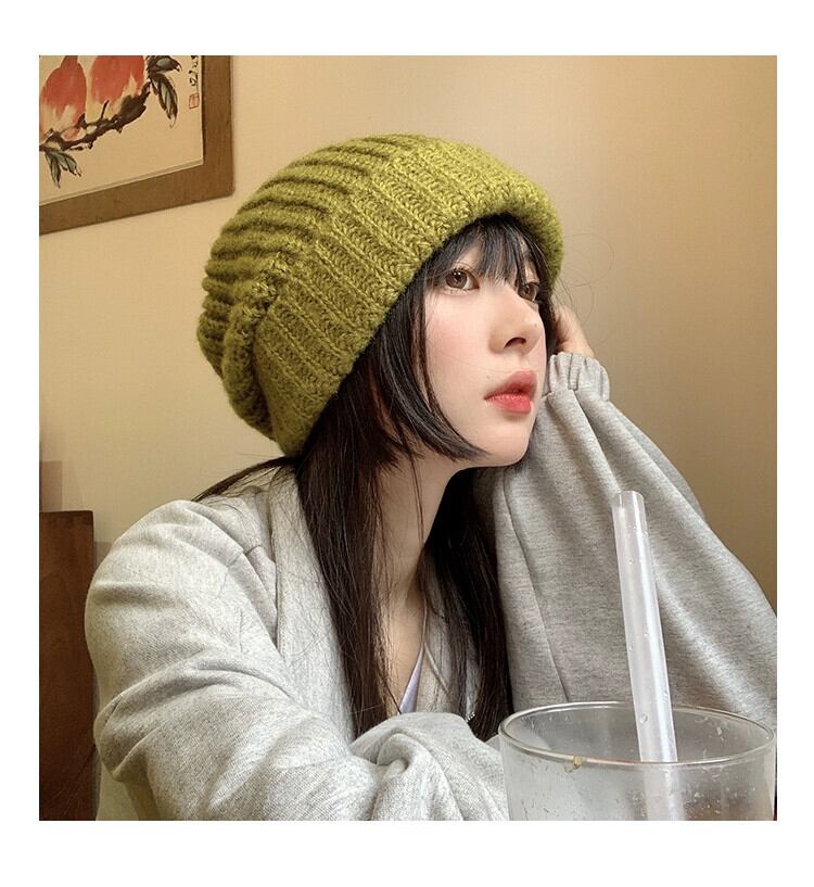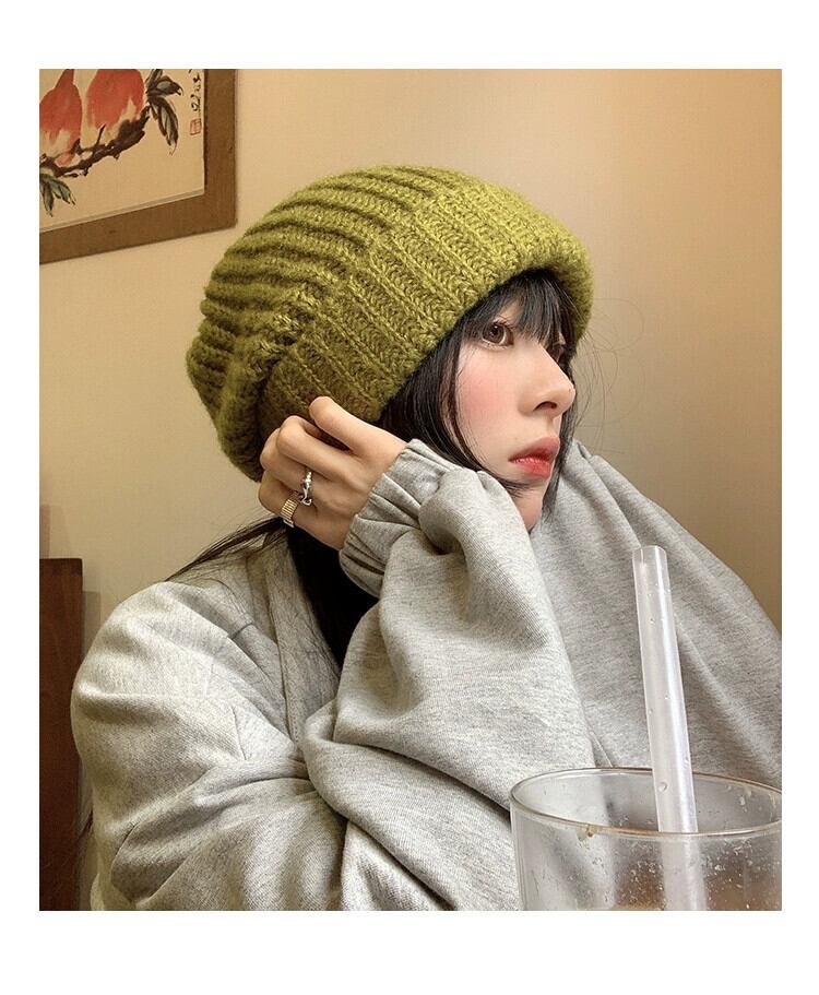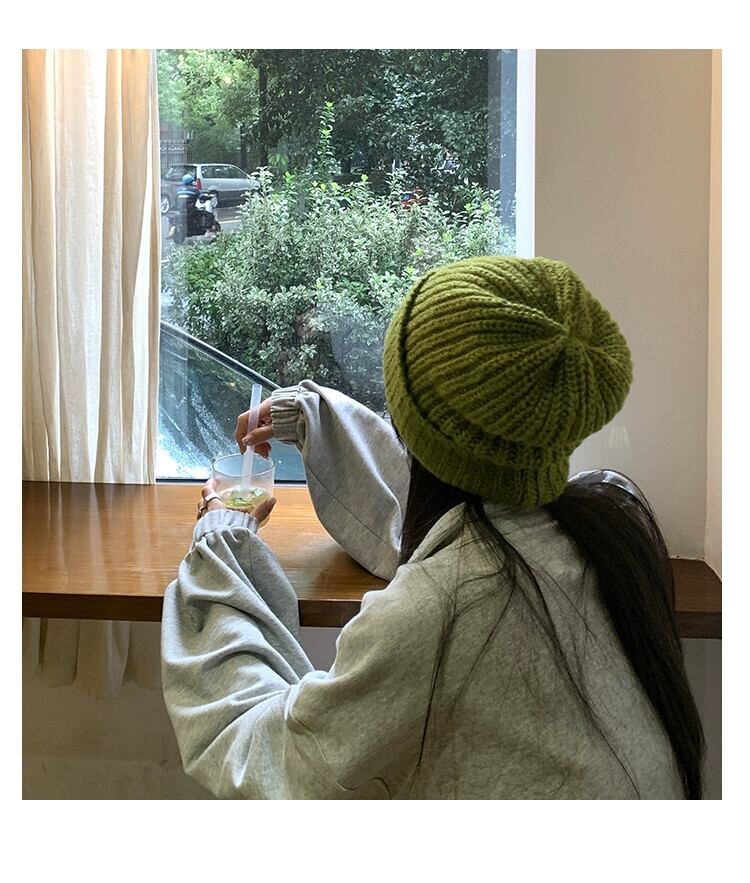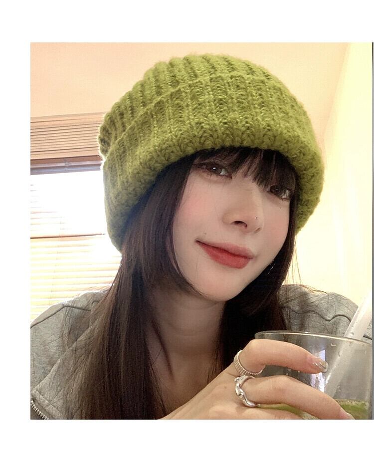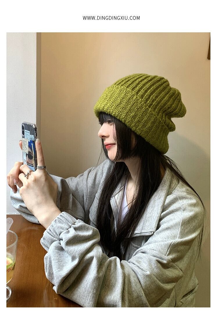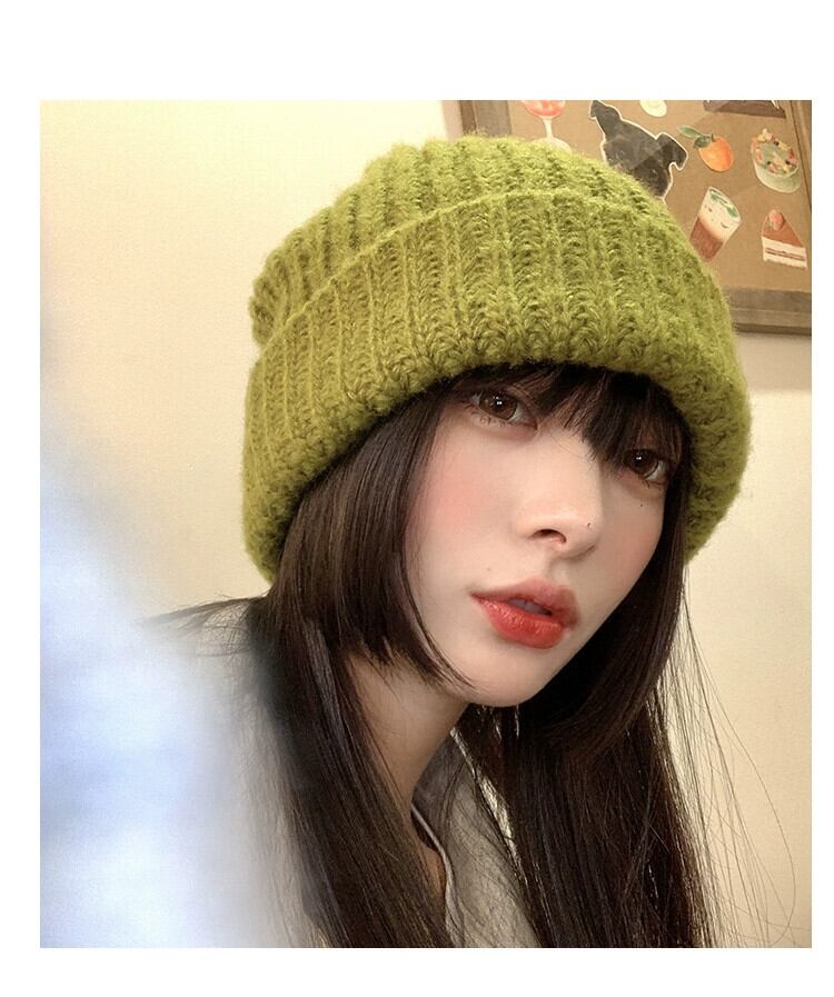 帽子 レディース 秋と冬 多用途 グリーン ウール ハット 冬 ゆったり 冬 太い糸 顔出し 小さな耳保護 大きな頭囲 ニット帽 オータム 秋物 ウィンター 冬物 15dd89269268530