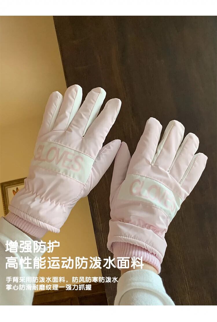 タッチスクリーンとベルベットと厚手の綿を備えた冬用スキー手袋女性、かわいい学生サイクリング屋外防水、暖かく、寒さと防風 コットン 大人ガーリー スウィート キュート カジュアル ウィンター 冬物 15dd17633574258