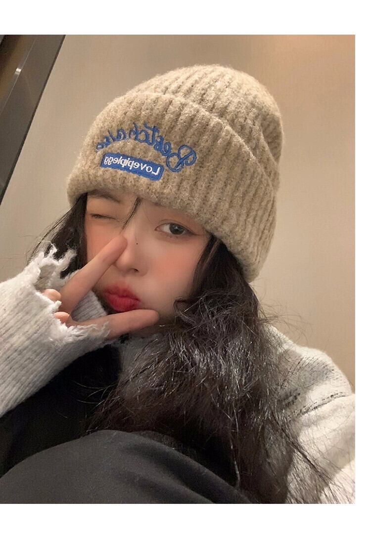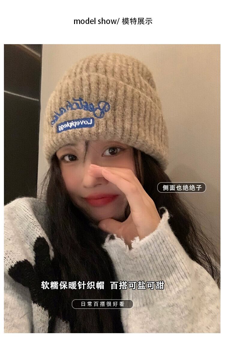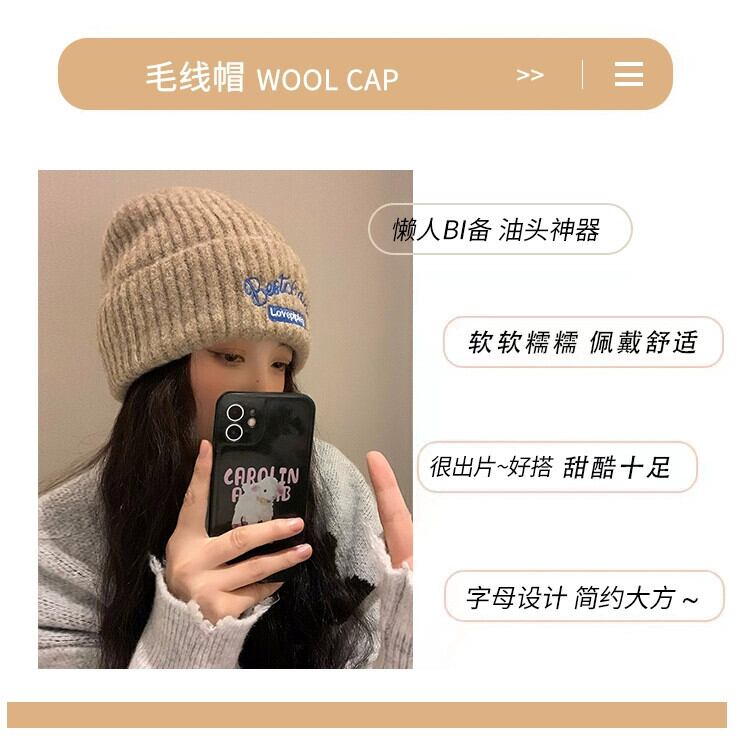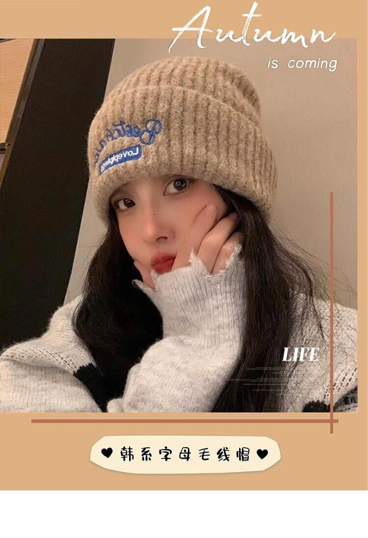 帽子女性 2023 暖かいウールの帽子バージョン多用途秋と冬の耳保護ニットヘッド帽子ショー小顔 オータム 秋物 ウィンター 冬物 15dd52684131455