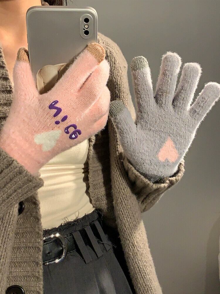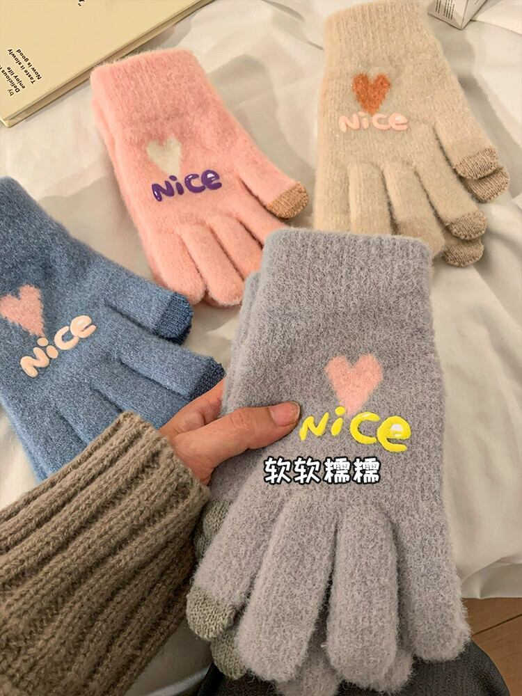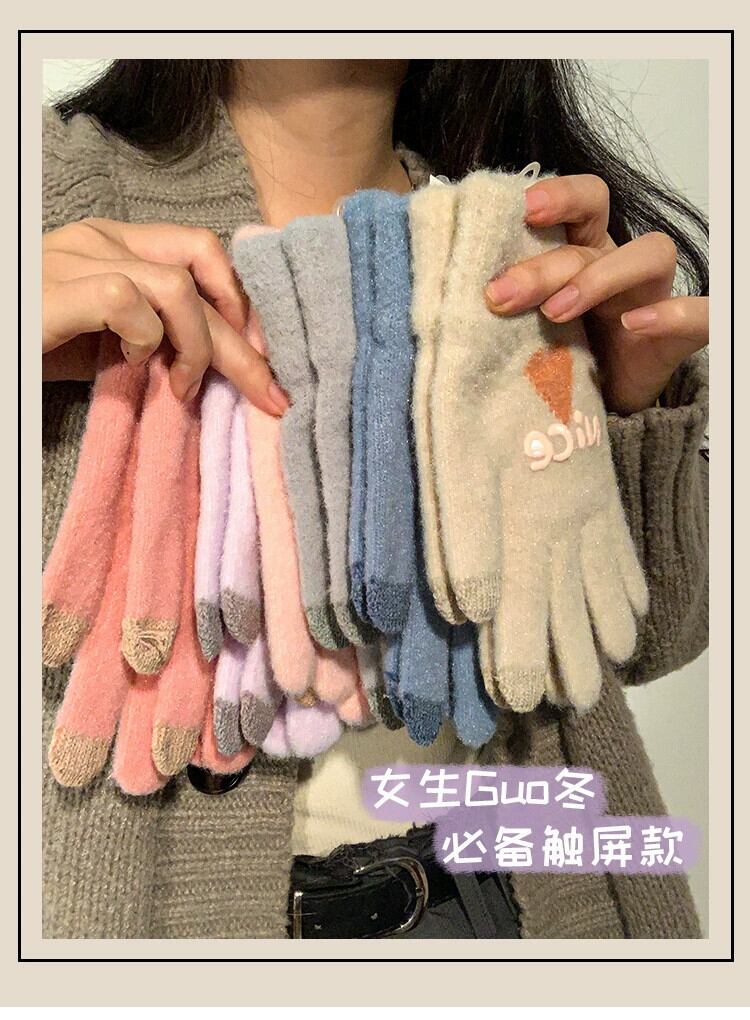 タッチスクリーン漫画ニットウール手袋かわいい冬プラスベルベット肥厚2023新しいスタイルサイクリング暖かくて防風 大人ガーリー スウィート キュート カジュアル ウィンター 冬物 15dd44292201284