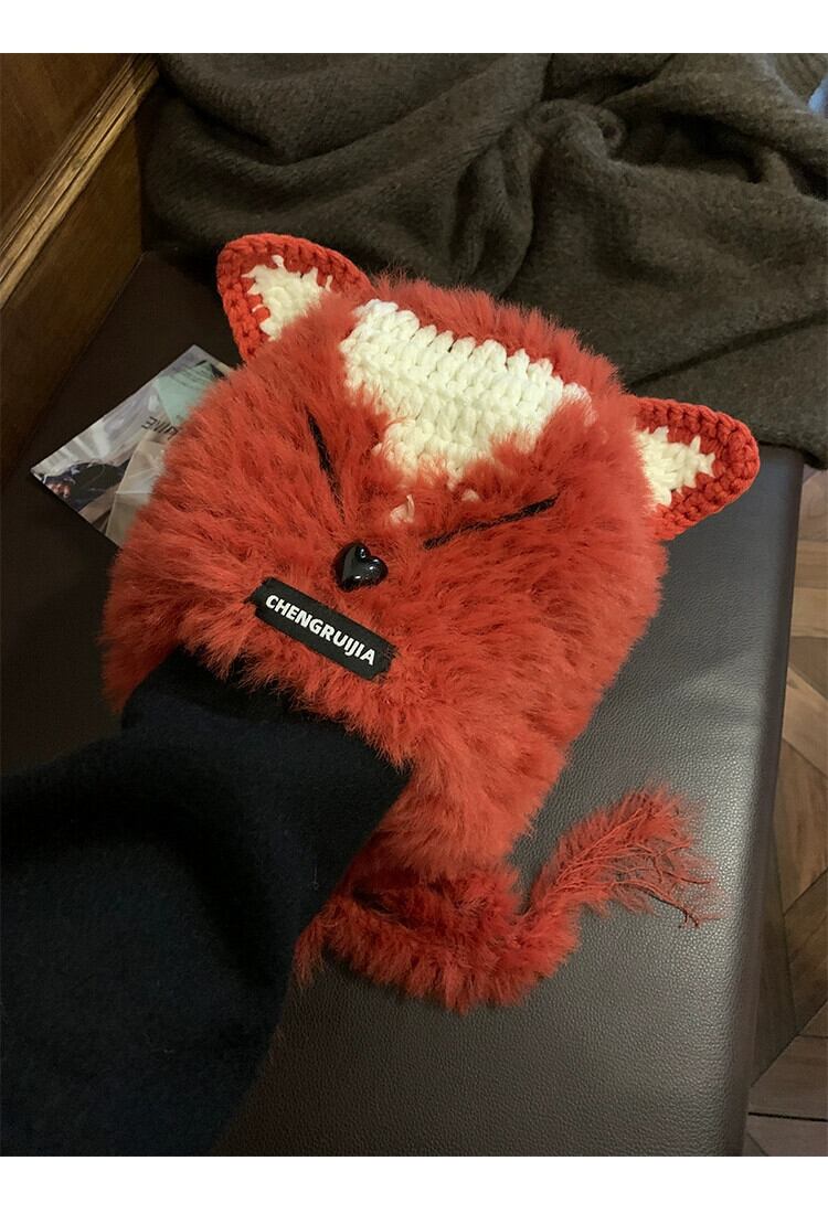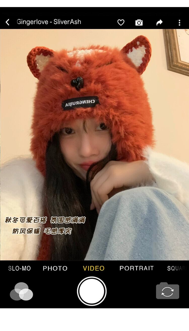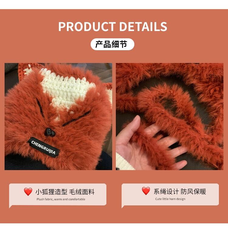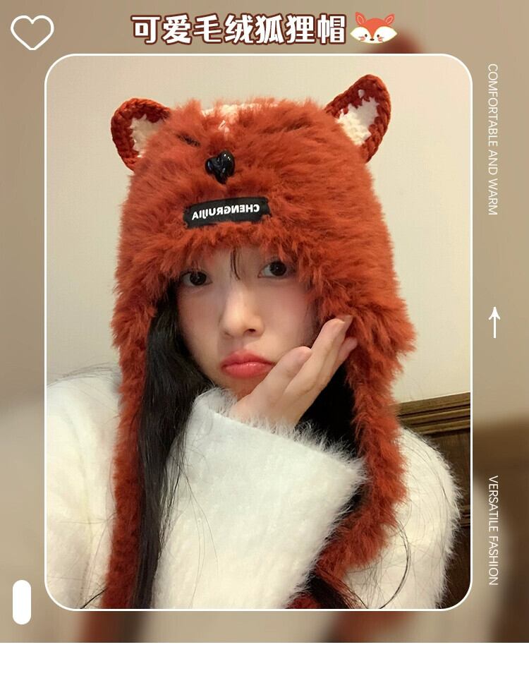 これらのかわいい手編みのキツネの毛皮の耳保護帽子、女性の秋と冬、暖かくて多用途の豪華なサンダーハット 大人ガーリー スウィート キュート カジュアル オータム 秋物 ウィンター 冬物 15dd102751404
