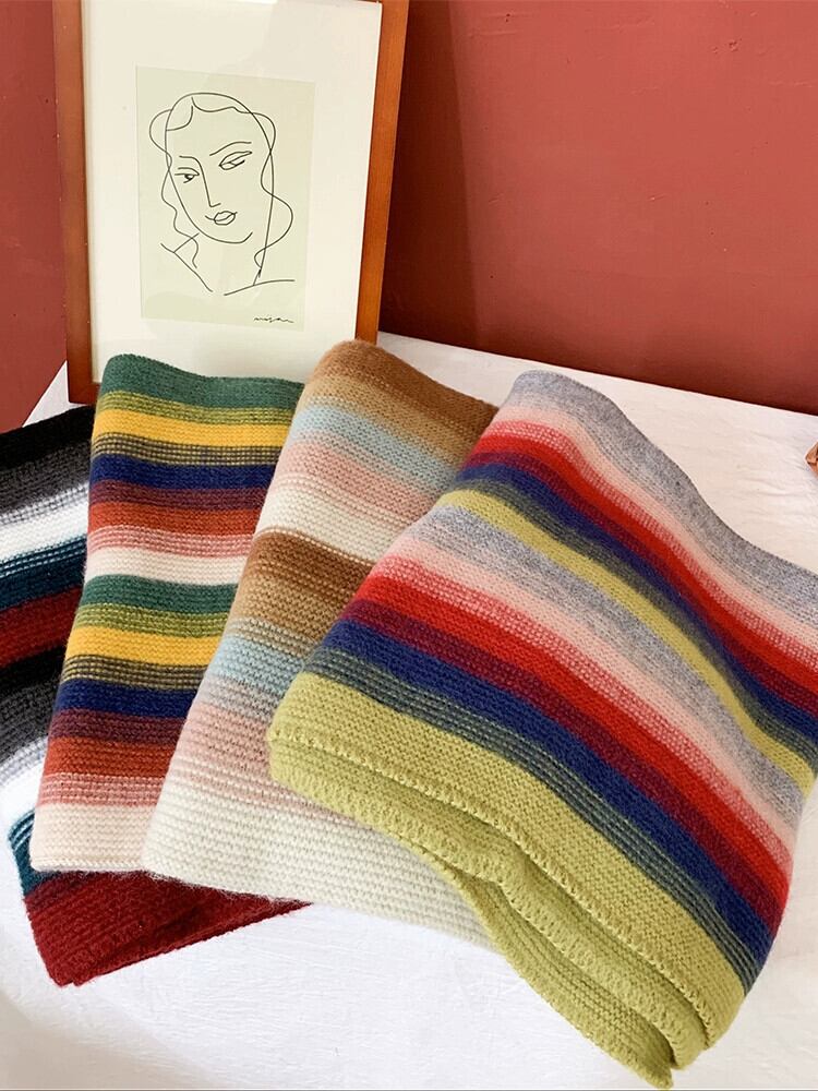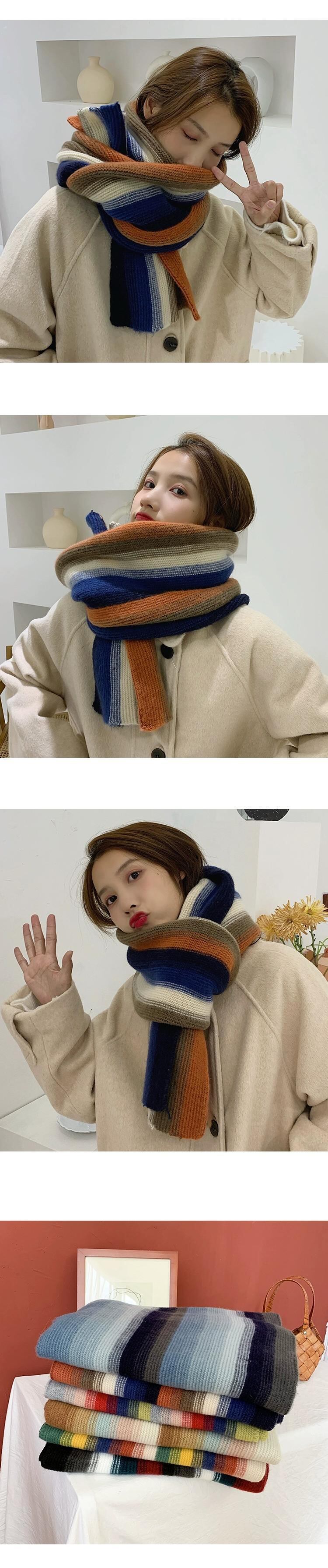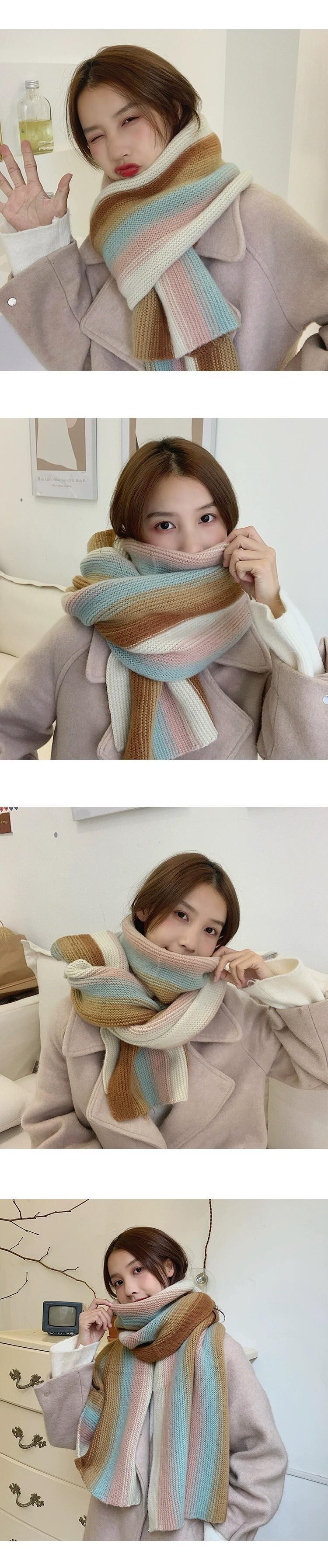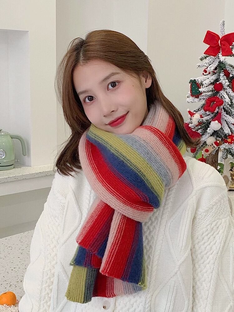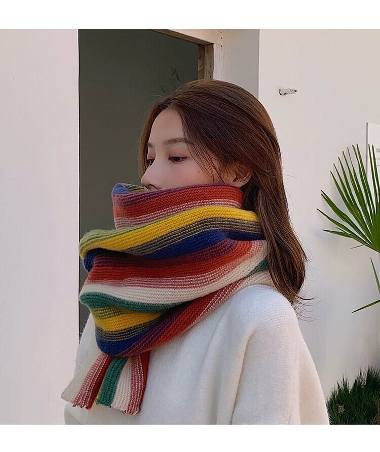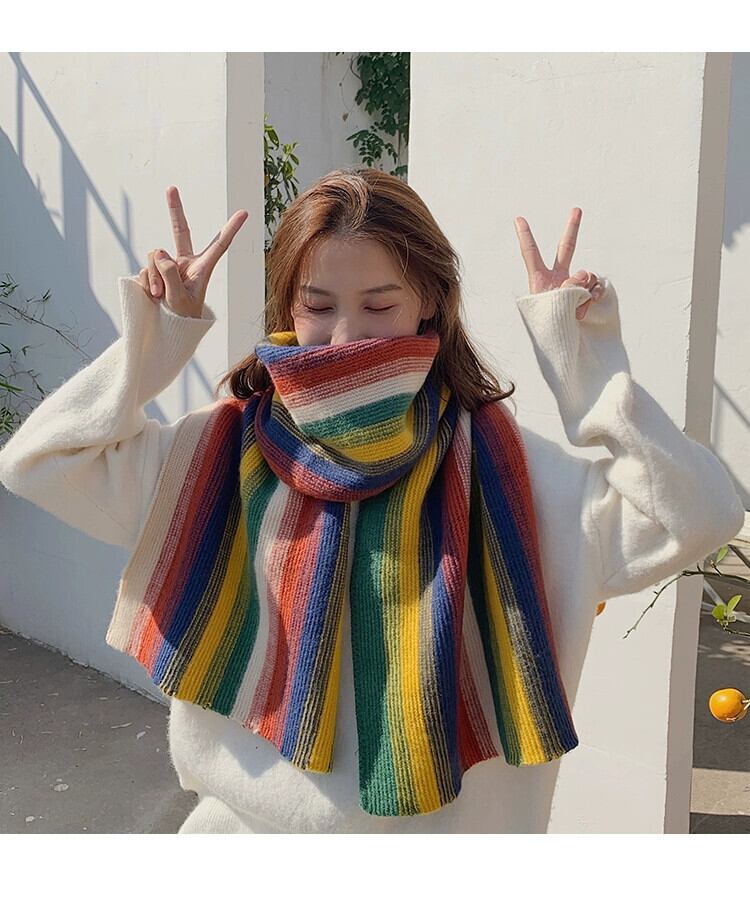 レインボーストライプのニットスカーフの女性の冬の多目的バージョンは、学生のかわいいウールのスカーフで暖かくトレンディに保ちます 大人ガーリー スウィート キュート カジュアル ウィンター 冬物 15dd65921528191