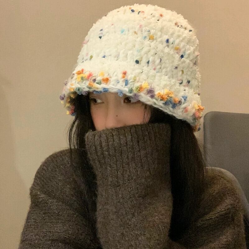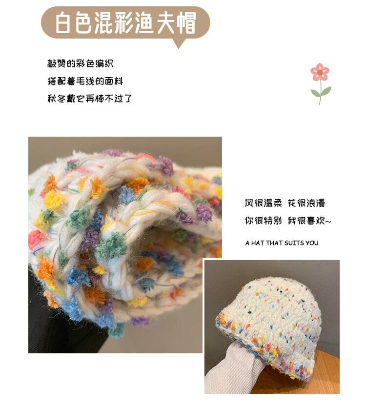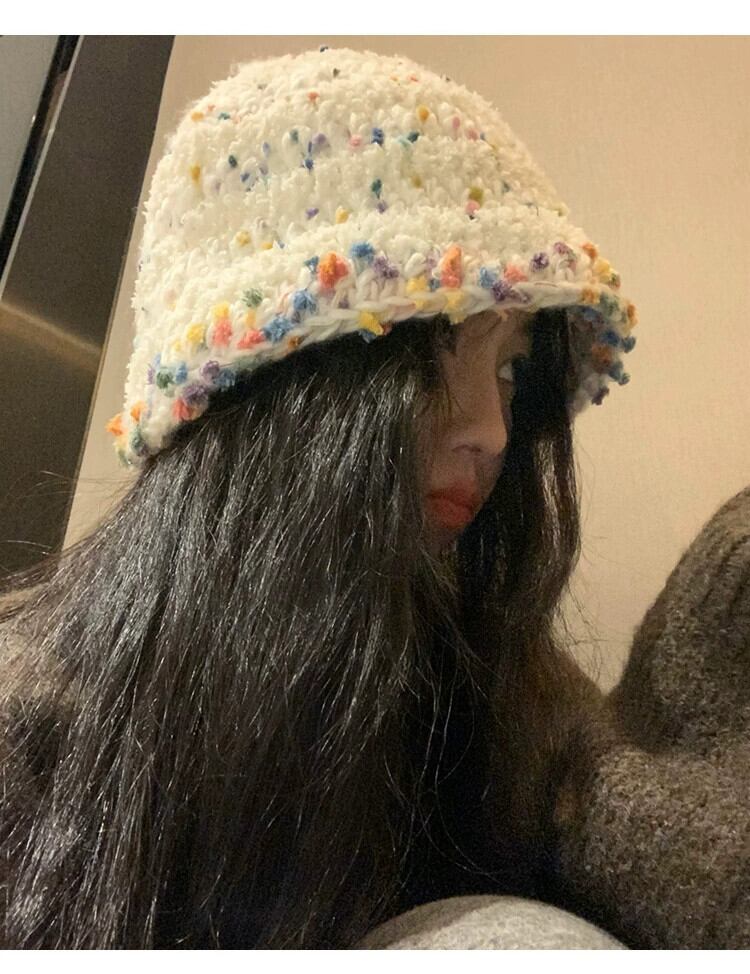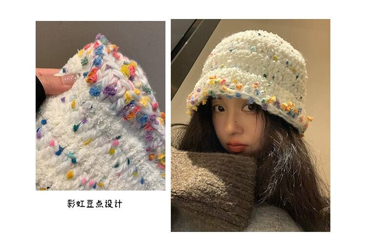 秋冬のカラフルなドット柄ウール帽子レディース、顔付きの小さなニット帽、暖かく耳を保護する、多用途のバケットハットトレンド オータム 秋物 ウィンター 冬物 15dd6526741780