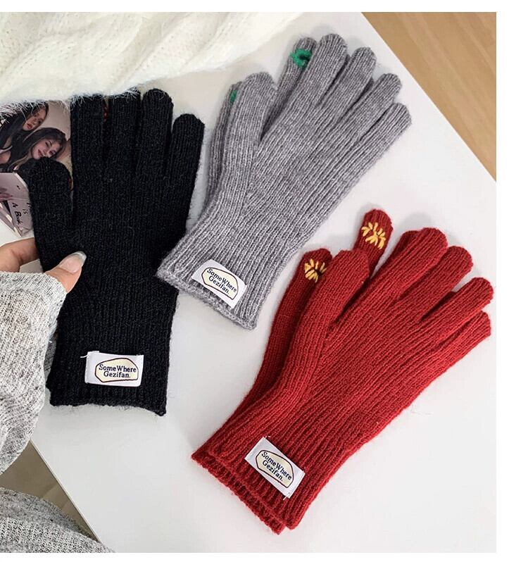 女性用の新しい冬用ニット手袋、無地のステッチデザイン、漏れやすい指、携帯電話でプレイ可能、保温、サイクリング、防寒。 ウィンター 冬物 ソリッドカラー 15dd66693159312