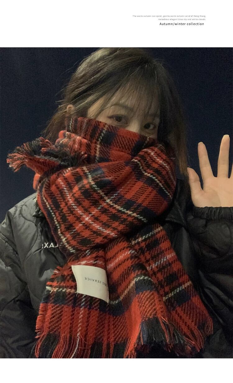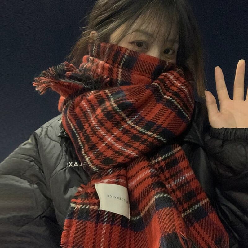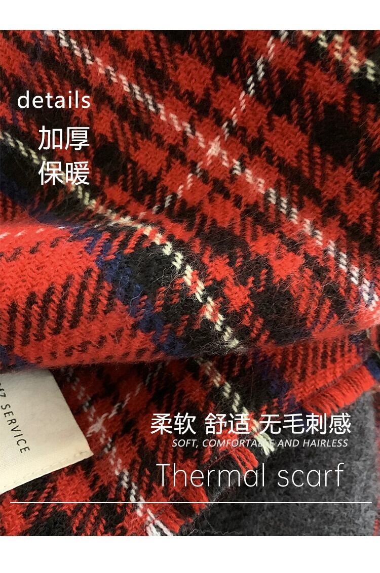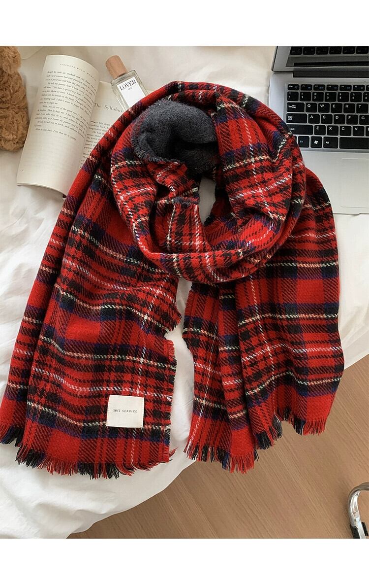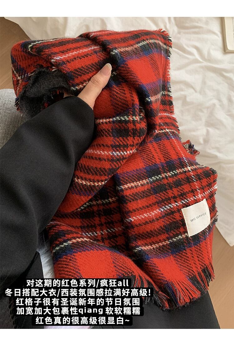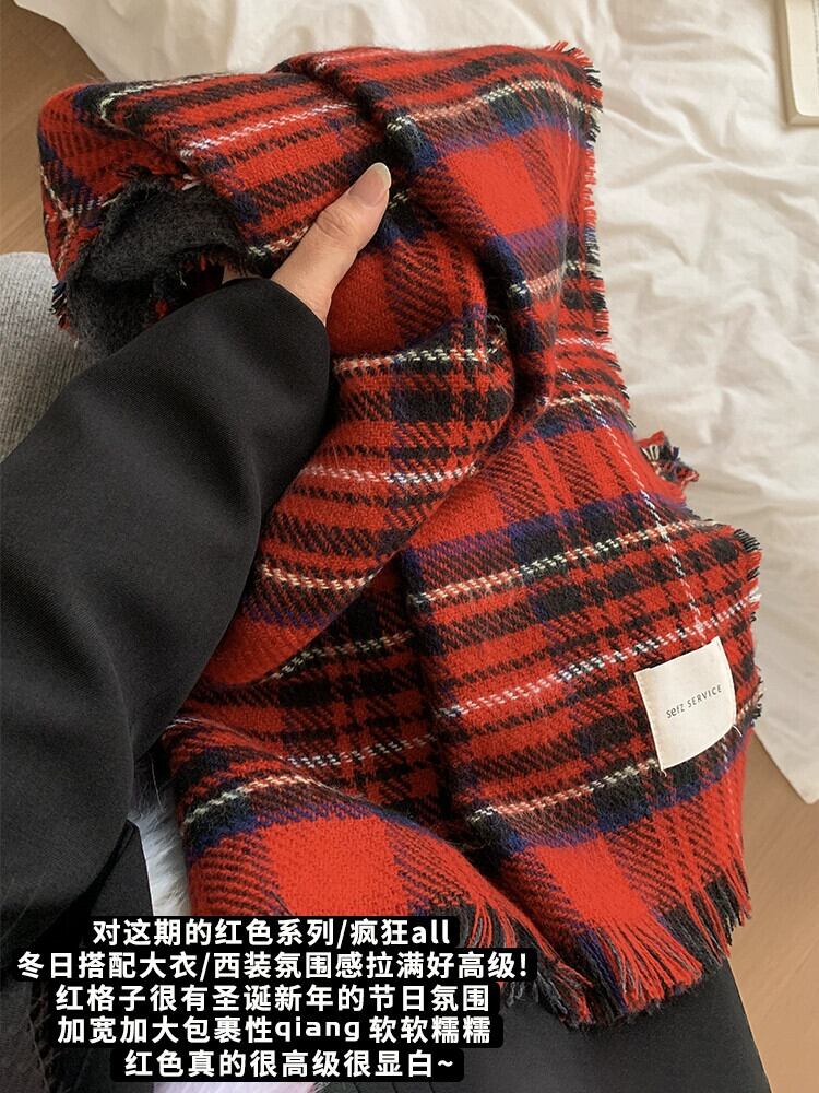 赤のチェック柄スカーフ女性冬 2023 新しいハイエンド模造カシミヤ肥厚ショール学生カップルネックスカーフ レッド ウィンター 冬物 15dd60433421367
