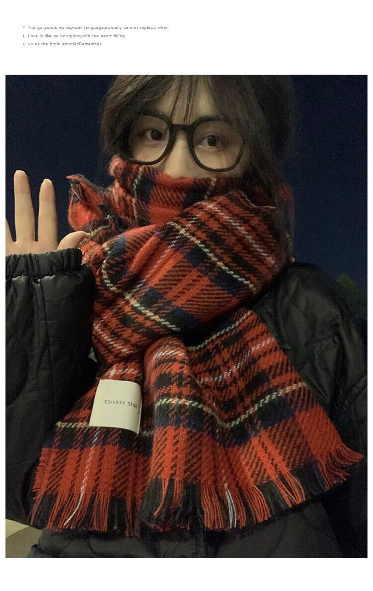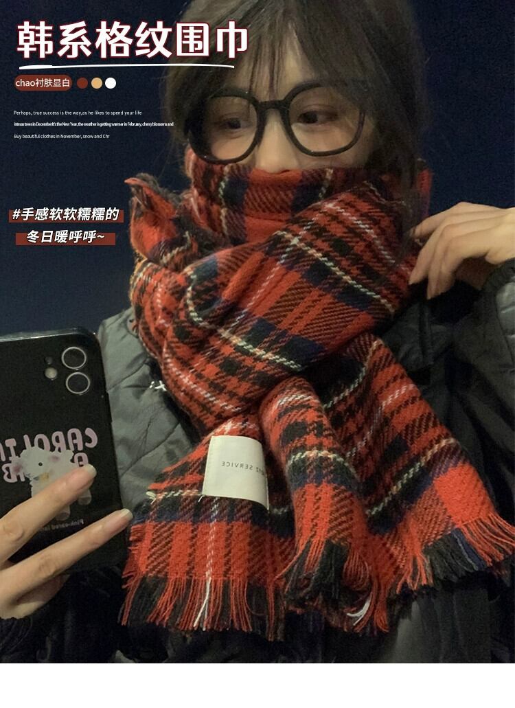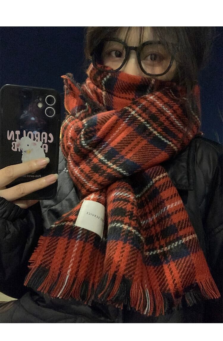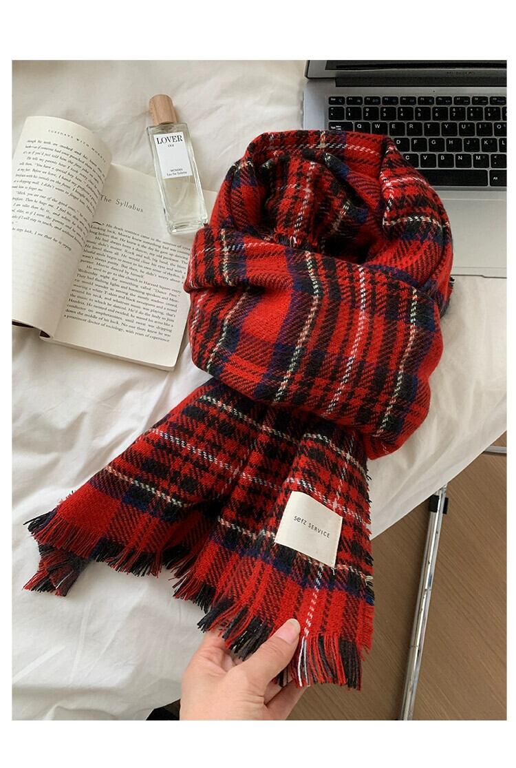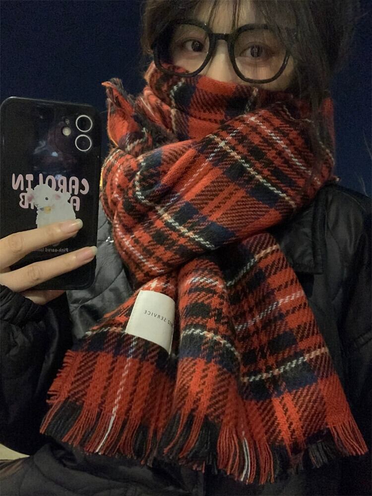 赤のチェック柄スカーフ女性冬 2023 新しいハイエンド模造カシミヤ肥厚ショール学生カップルネックスカーフ レッド ウィンター 冬物 15dd60433421367