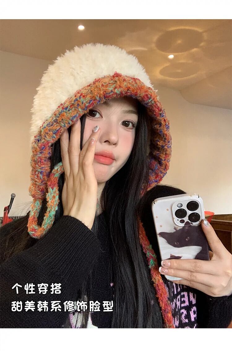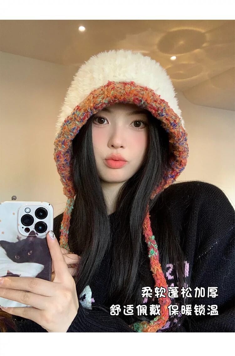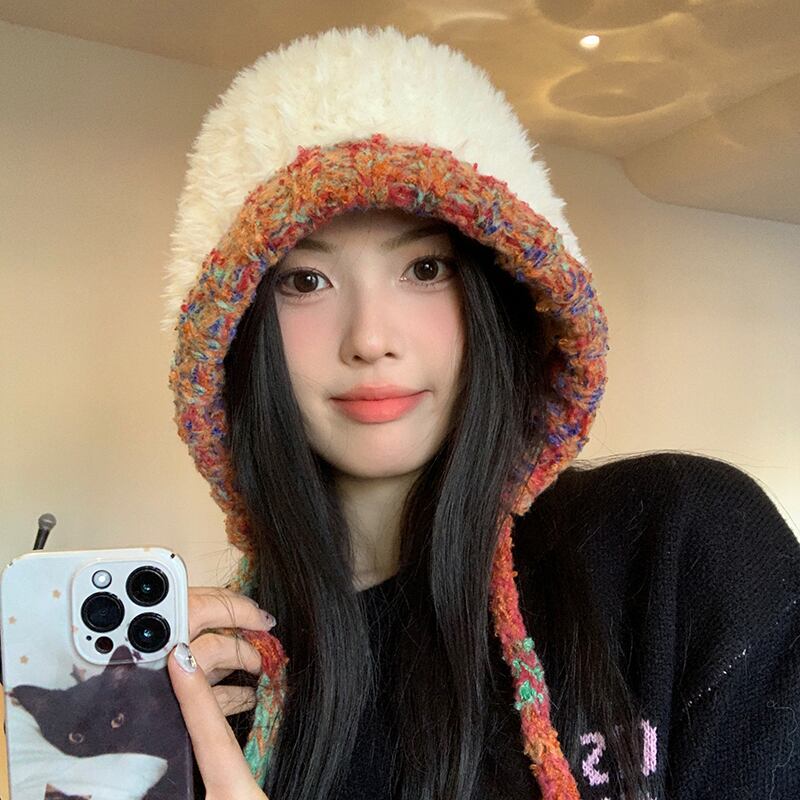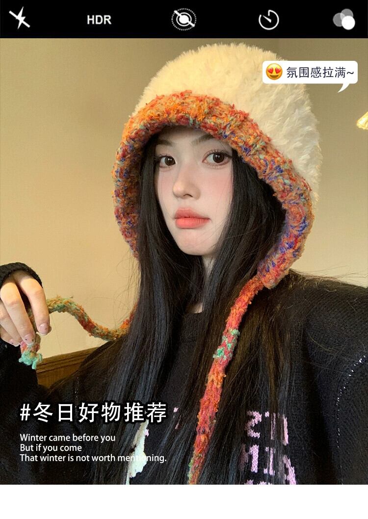 頭囲の大きな豪華なニット帽の女性 2023 新しい厚く暖かいウールの帽子サイクリング寒さから保護し、小顔を見せます 15dd93326230680