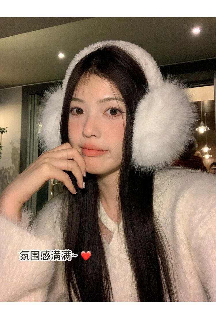 白ウサギの毛皮のソフトでかわいいぬいぐるみイヤーマフサイクリング不凍液イヤーマフ冬のイヤーマフ女性防風イヤーウォーマー ホワイト 大人ガーリー スウィート キュート カジュアル ウィンター 冬物 15dd40035141834