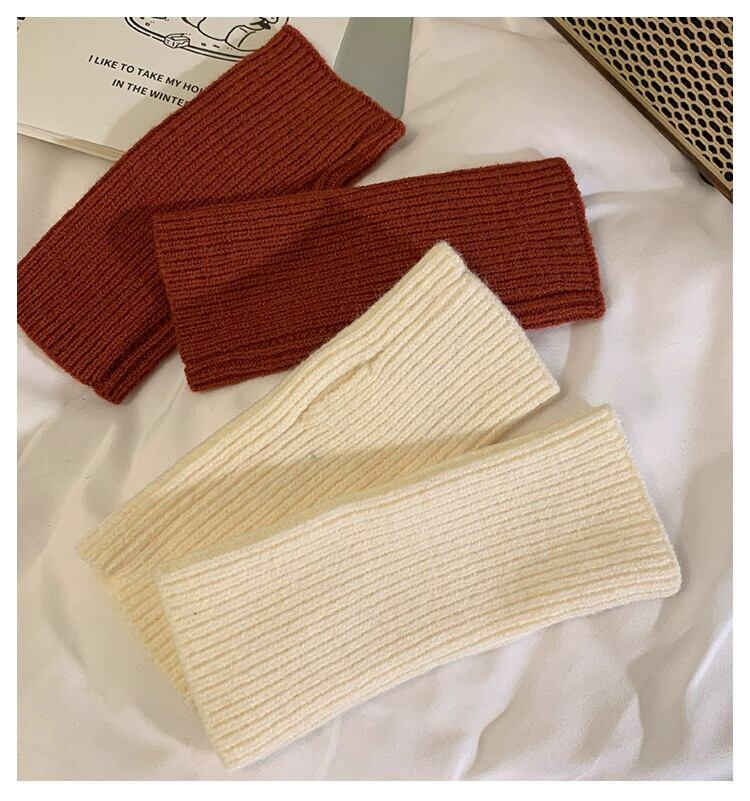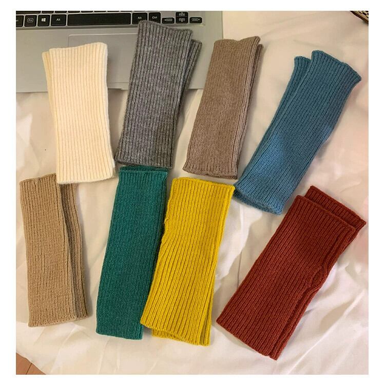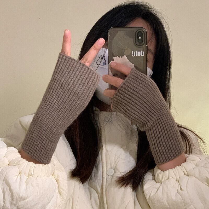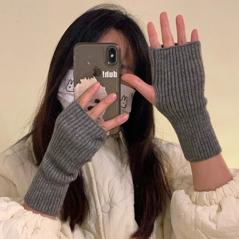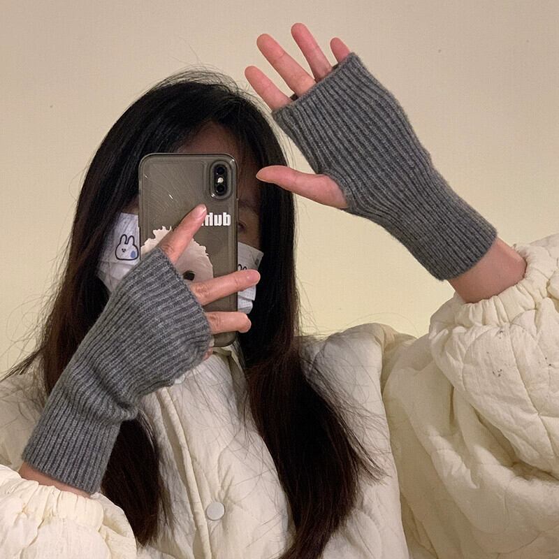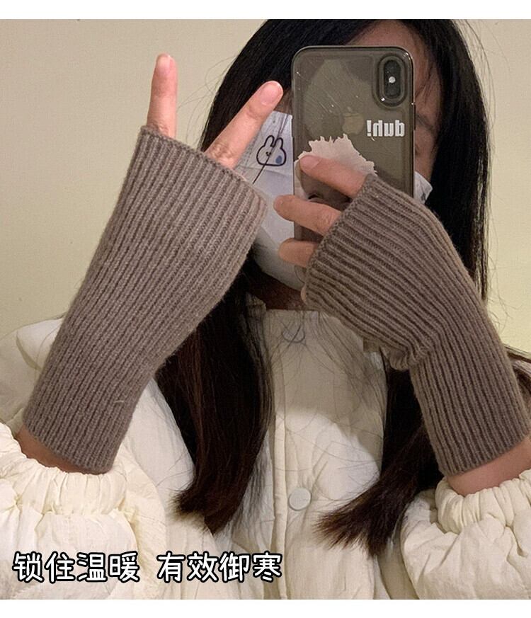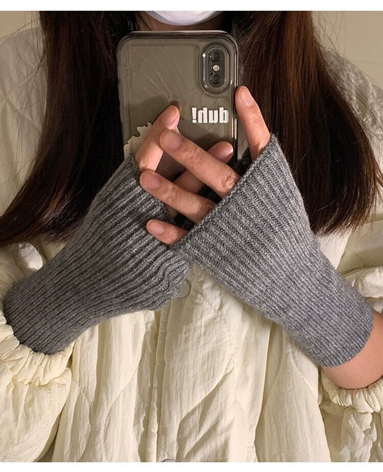 ハーフフィンガーウール手袋女性秋と冬の無地ファッショナブルな厚く暖かい指なしタッチスクリーンニット手袋手首袖 オータム 秋物 ウィンター 冬物 ソリッドカラー 15dd87621181423