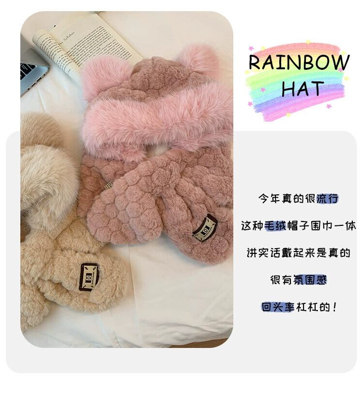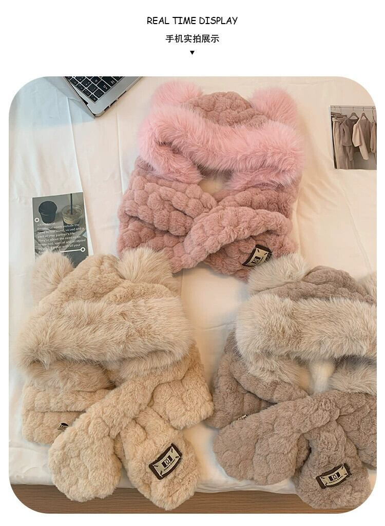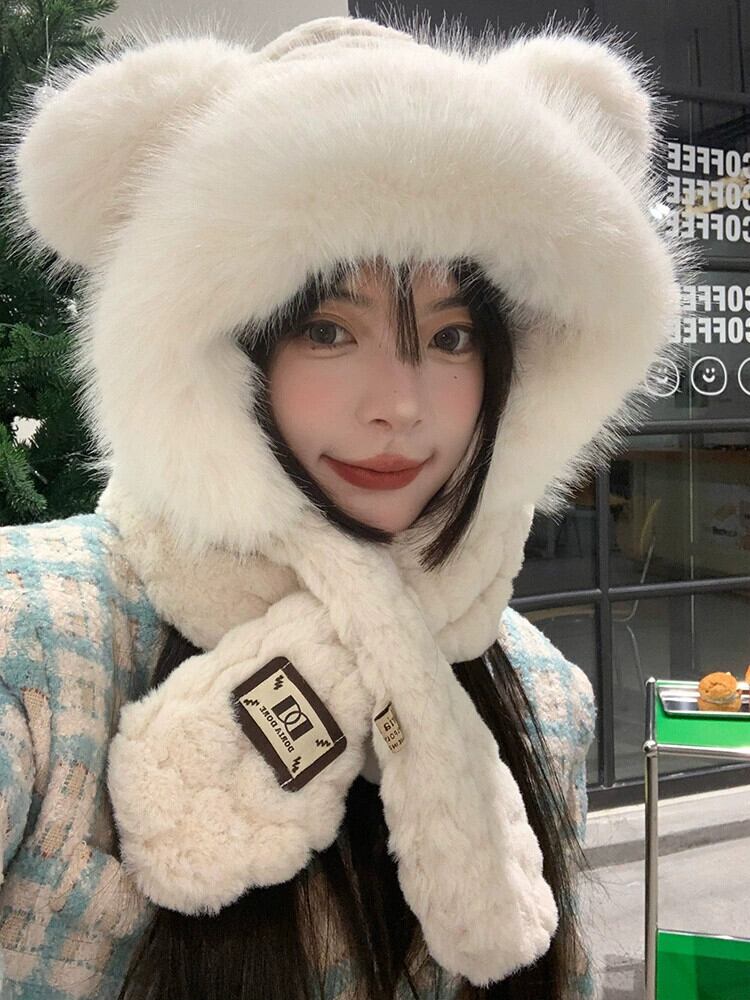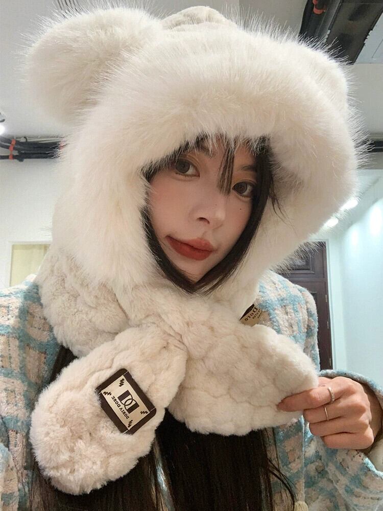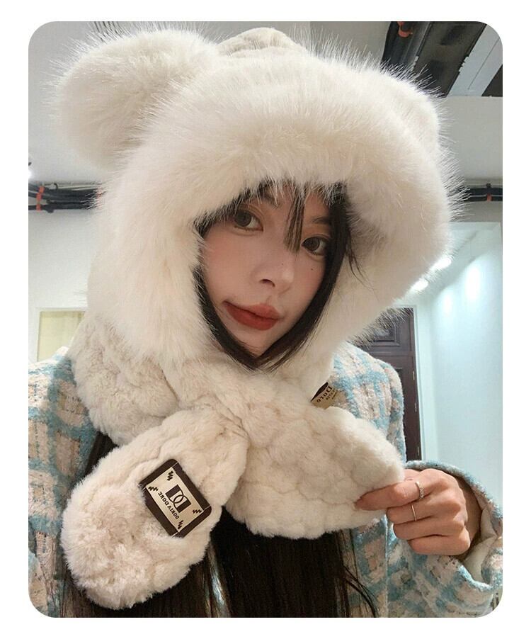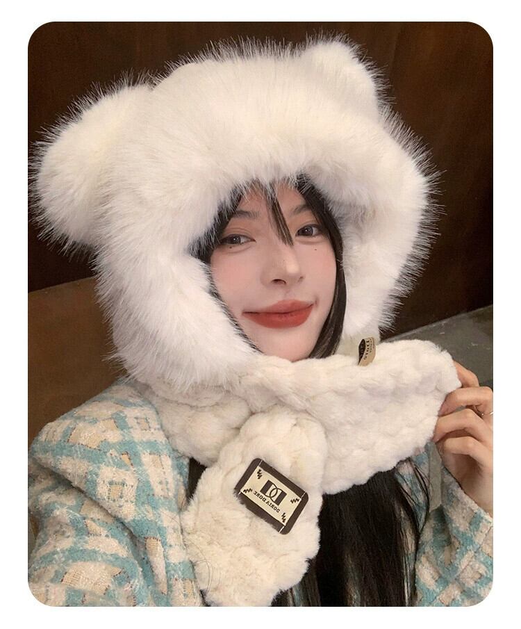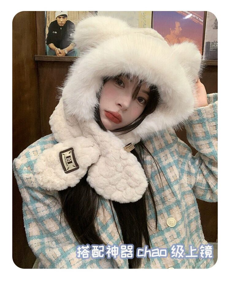 かわいいクマのぬいぐるみ帽子スカーフオールインワン女性の秋と冬オールマッチ暖かいスタイル耳保護小さな雷峰帽子顔付き 大人ガーリー スウィート キュート カジュアル オータム 秋物 ウィンター 冬物 15dd6076951435