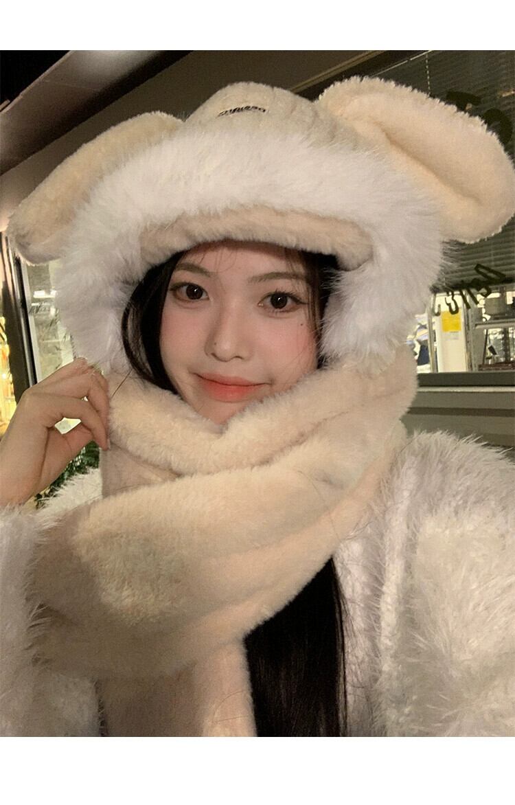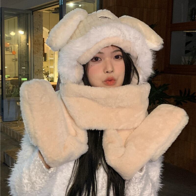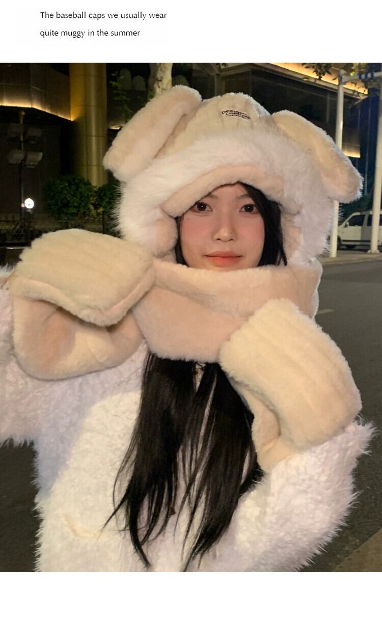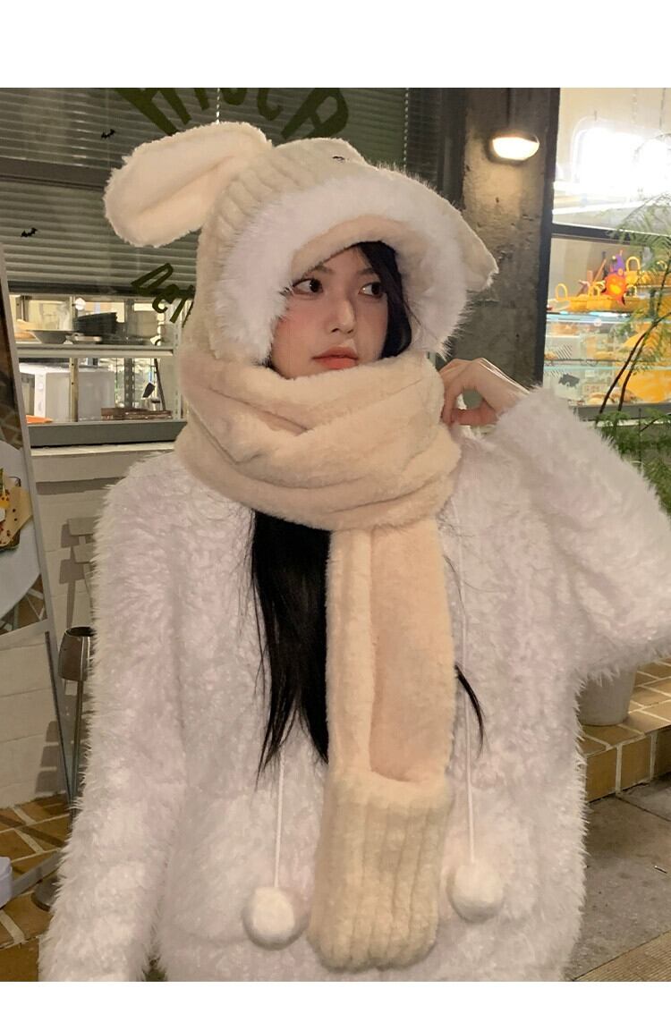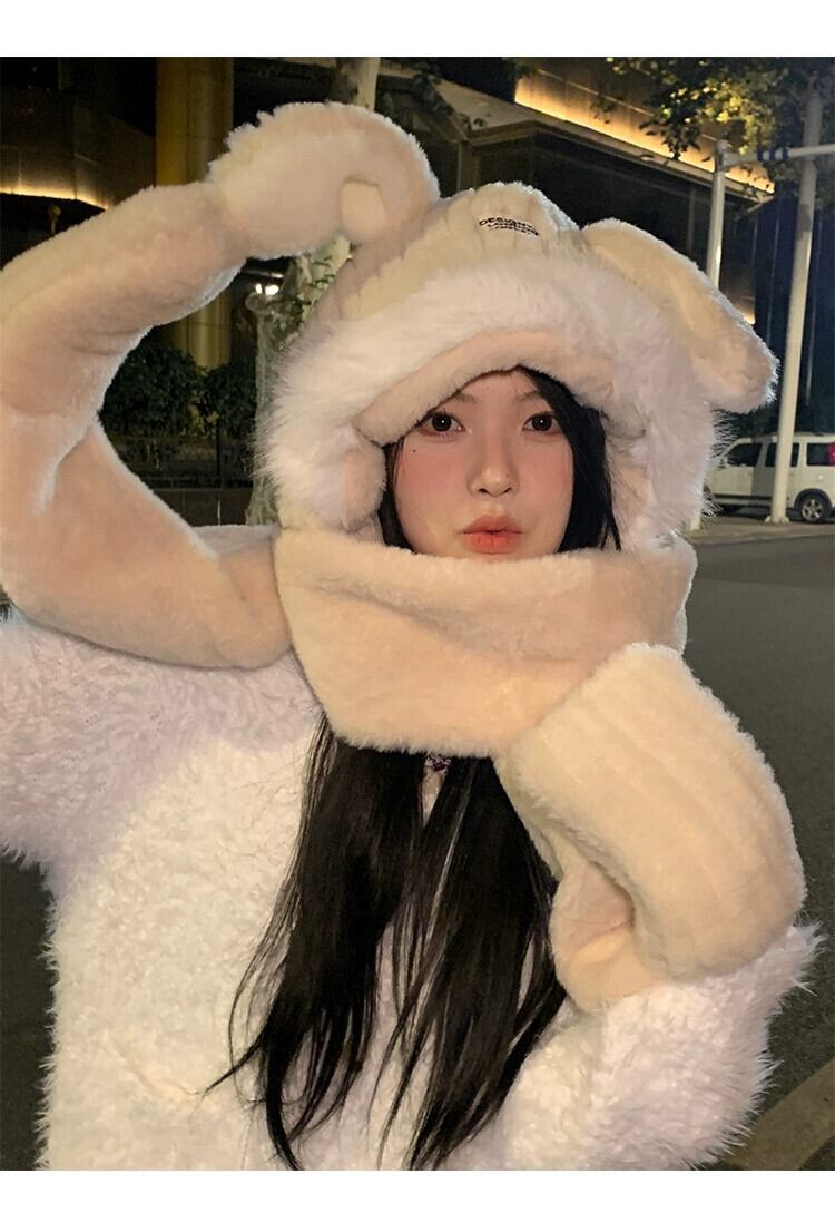 子犬ぬいぐるみ帽子、スカーフ、手袋、3点セット女性、冬の暖かいサイクリング、防風防寒フード付きスカーフ ウィンター 冬物 15dd67286976355