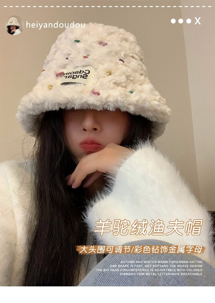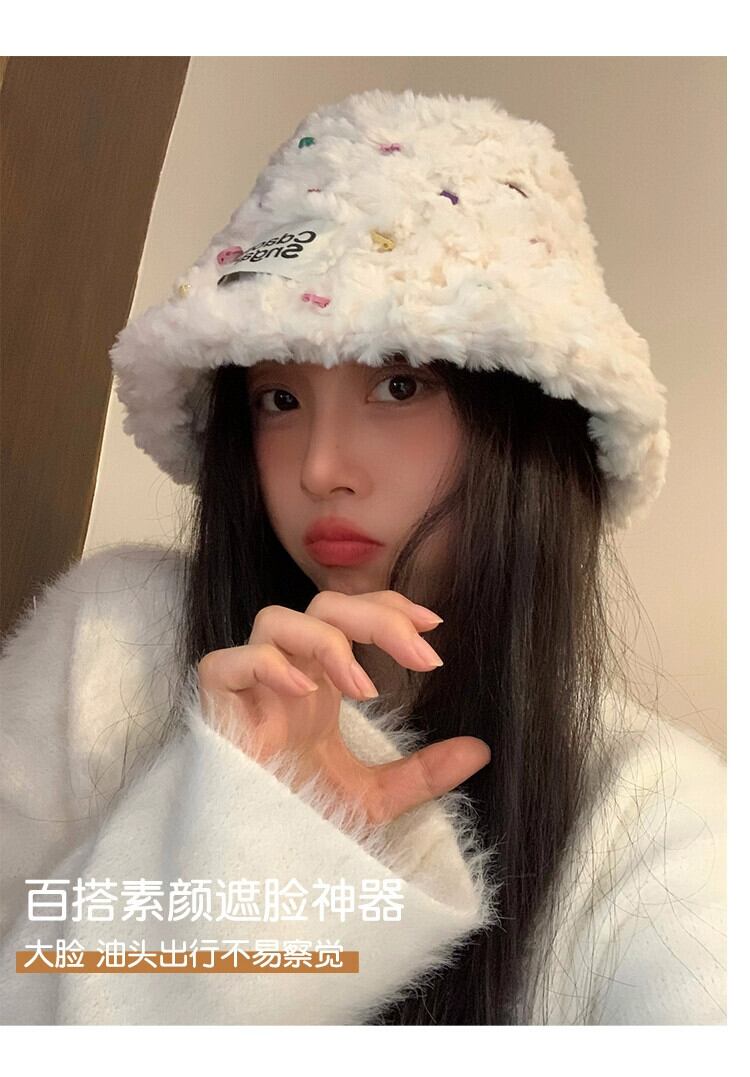 2023 帽子気質漁師帽子女性の秋と冬多用途暖かい厚い豪華な大きな頭白い盆地帽子 ホワイト オータム 秋物 ウィンター 冬物 15dd73935490180