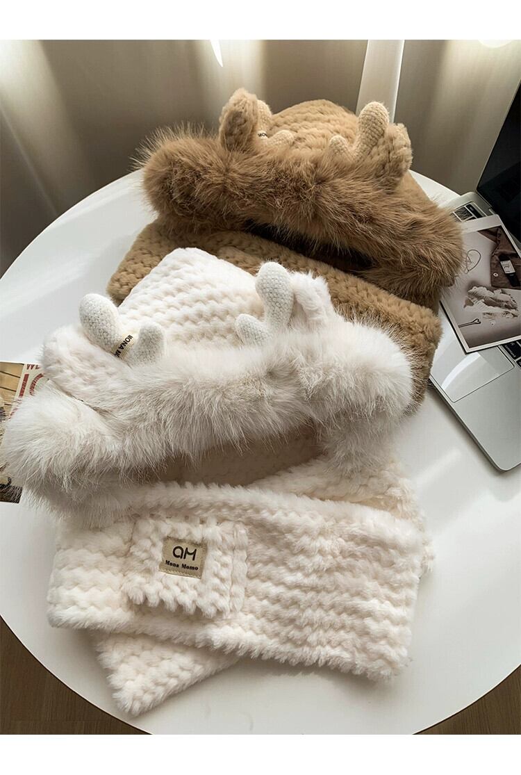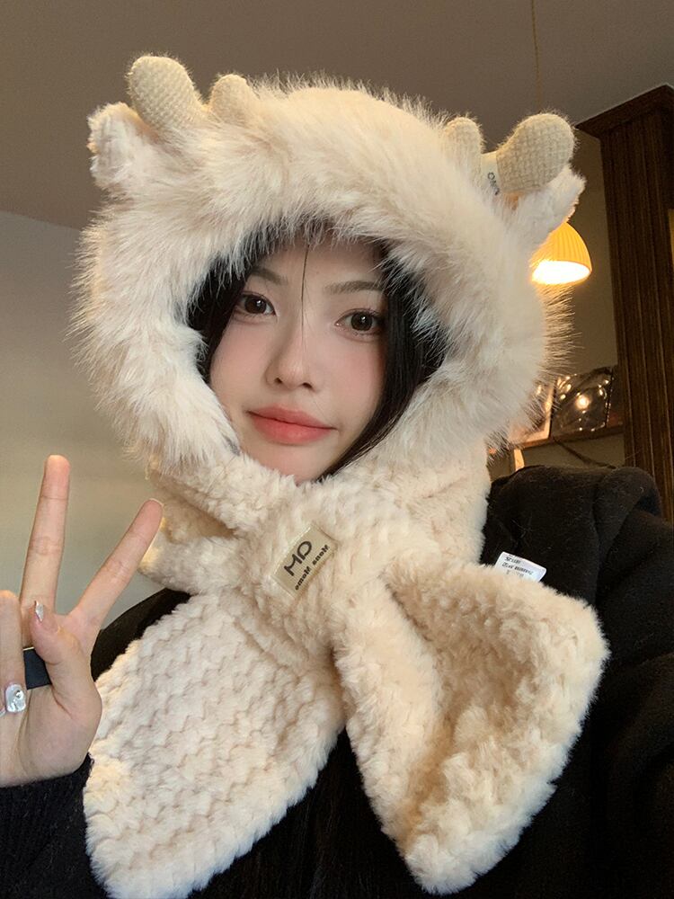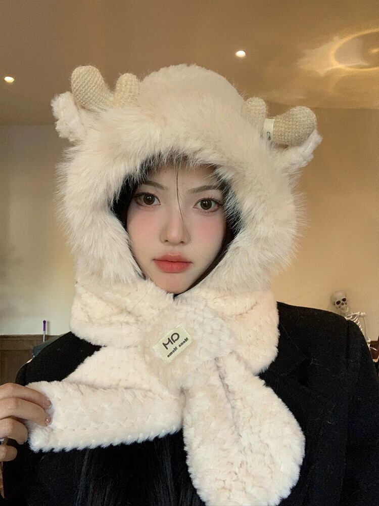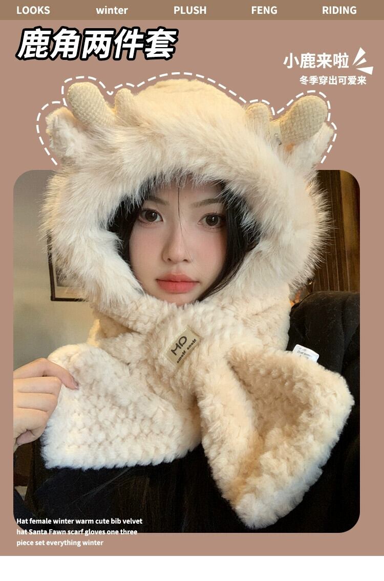 豪華な帽子とスカーフが 1 つになった冬用の暖かい Lei Feng 帽子、女性の枝角、アウトドア サイクリングとスキーの厚みのある 2 点セット ウィンター 冬物 15dd53639641626