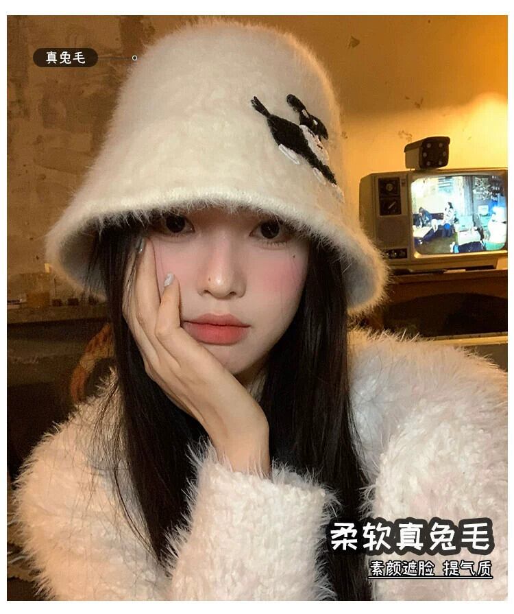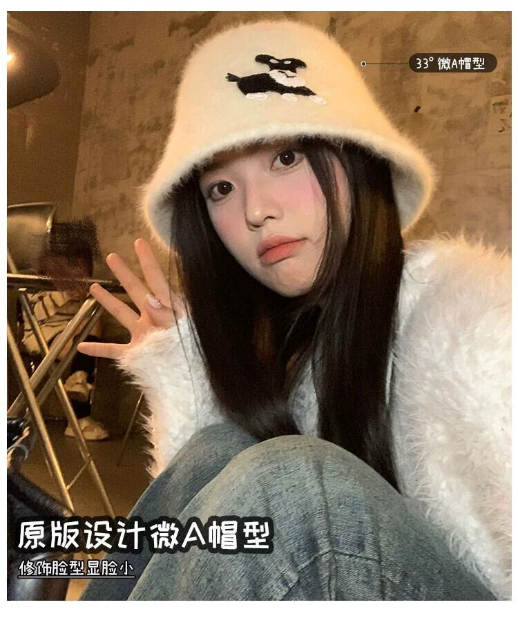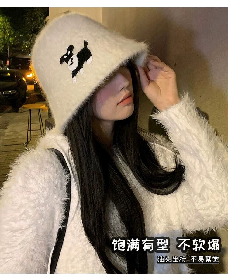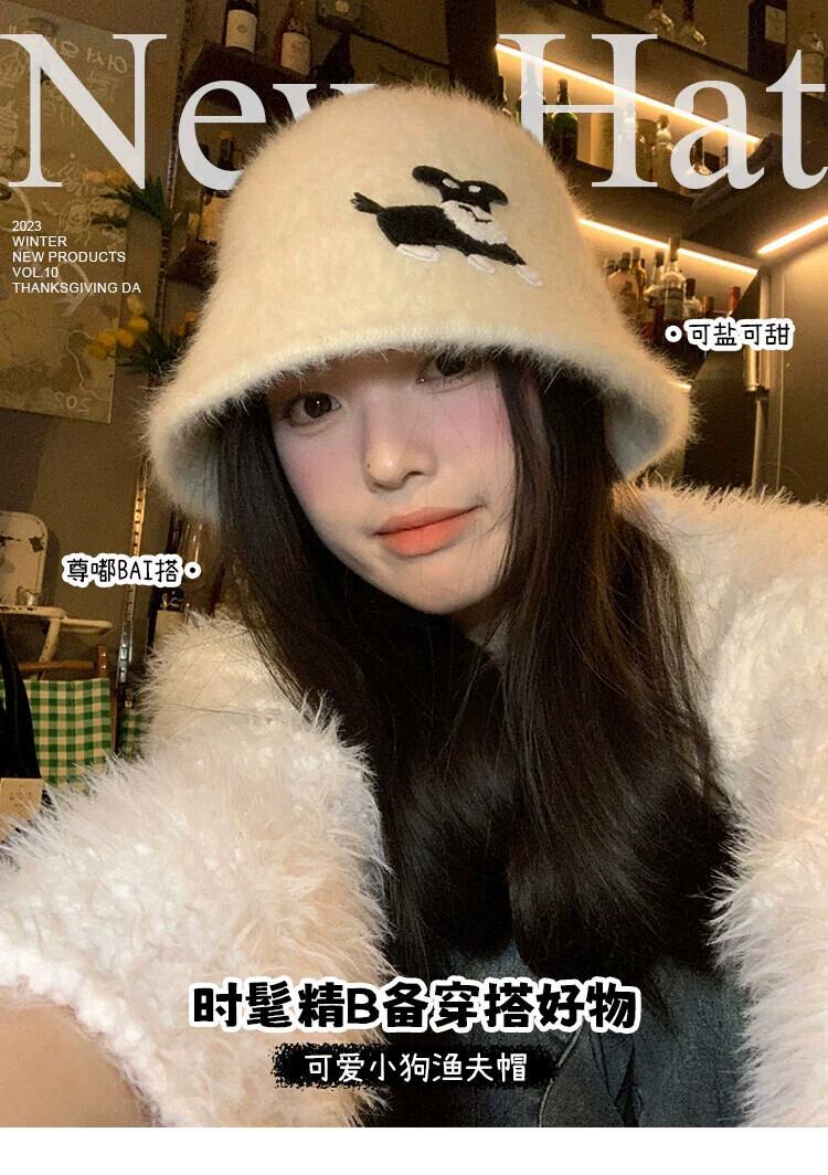 秋と冬の子犬とウサギの毛皮の漁師の帽子の女性、顔付きバージョン、小さなバケットハット、多用途の白い大きな頭囲、暖かい盆地帽子 ホワイト オータム 秋物 ウィンター 冬物 15dd229046706