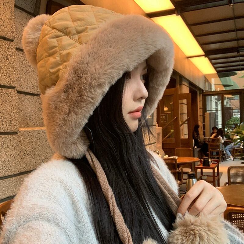 冬のかわいい豪華な雷峰帽子の女性、乗馬中に暖かく保つための厚みのある漁師の帽子、さらに小顔に見せるためのベルベットの耳保護プルオーバーハット 大人ガーリー スウィート キュート カジュアル ウィンター 冬物 15dd32656289910