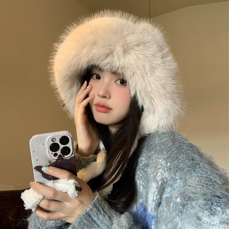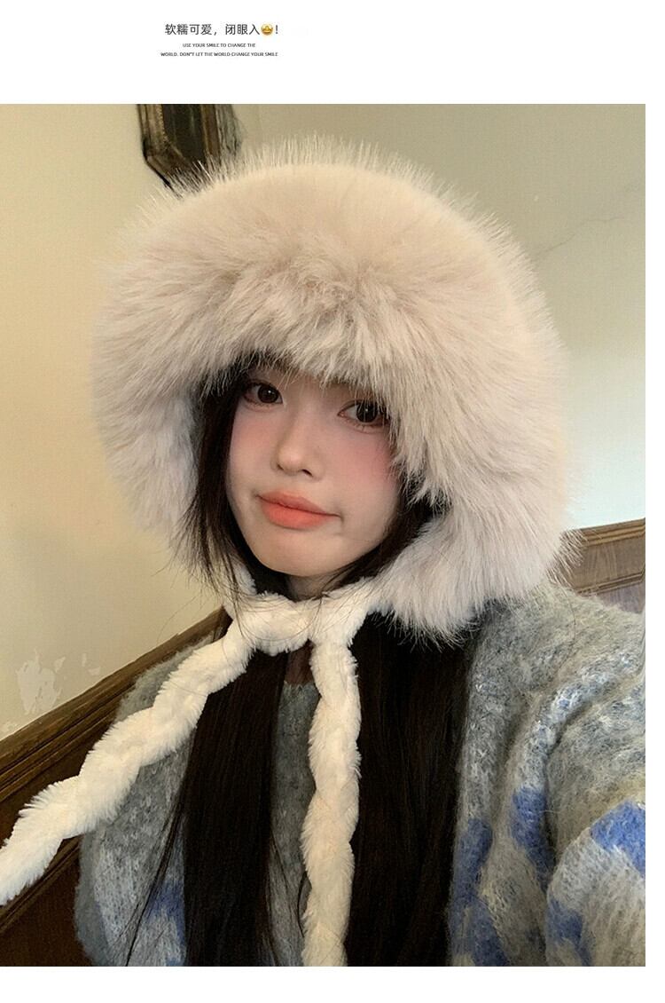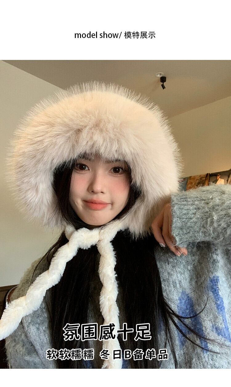 ぬいぐるみ Lei Feng 帽子女性の冬のかわいい顔明らかに小さなぬいぐるみベルベット肥厚ウールニットサイクリング耳保護暖かい帽子トレンディ 大人ガーリー スウィート キュート カジュアル ウィンター 冬物 15dd52712741205
