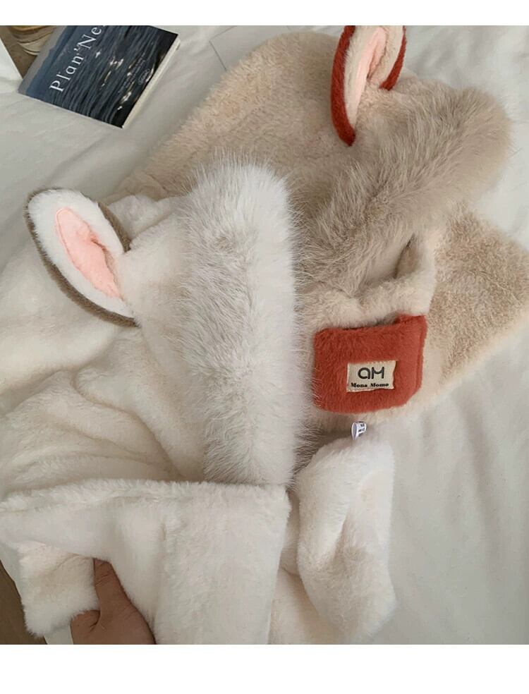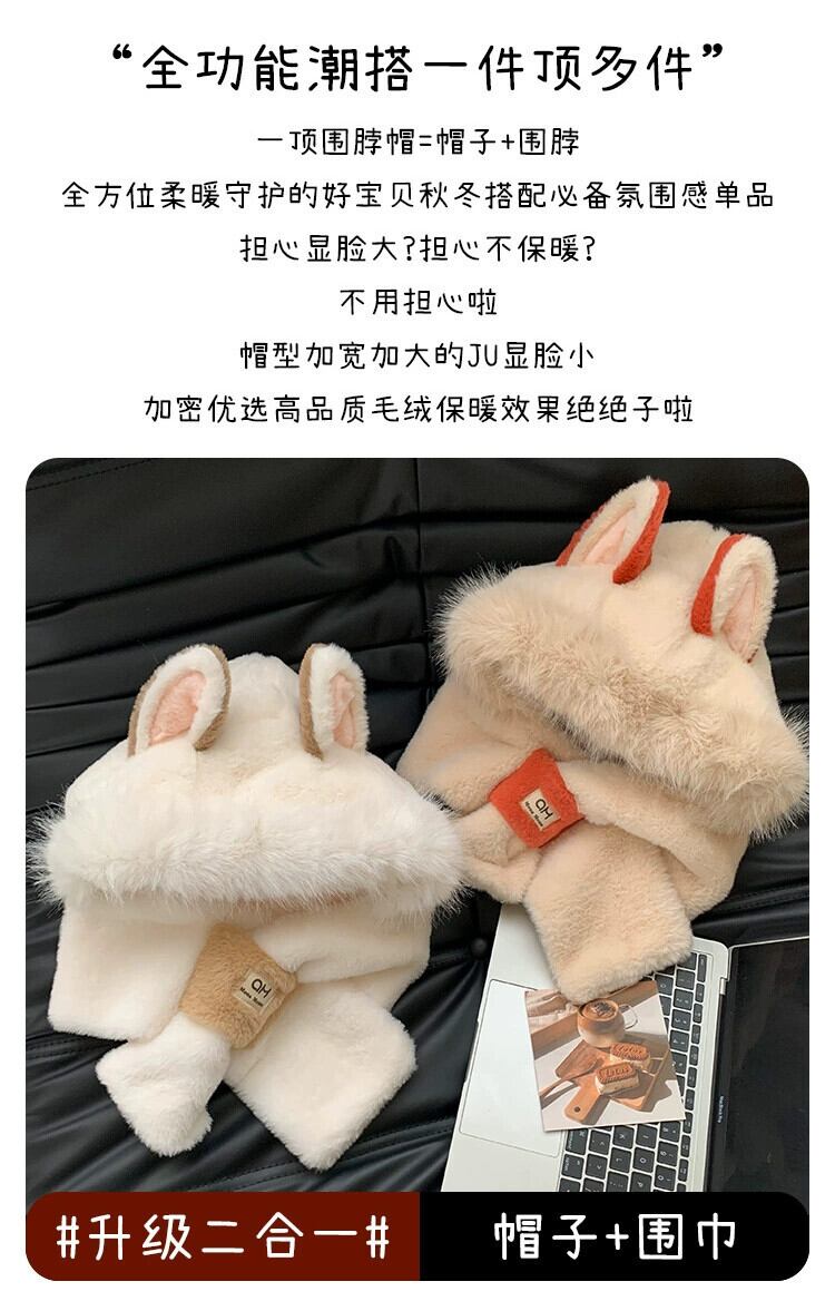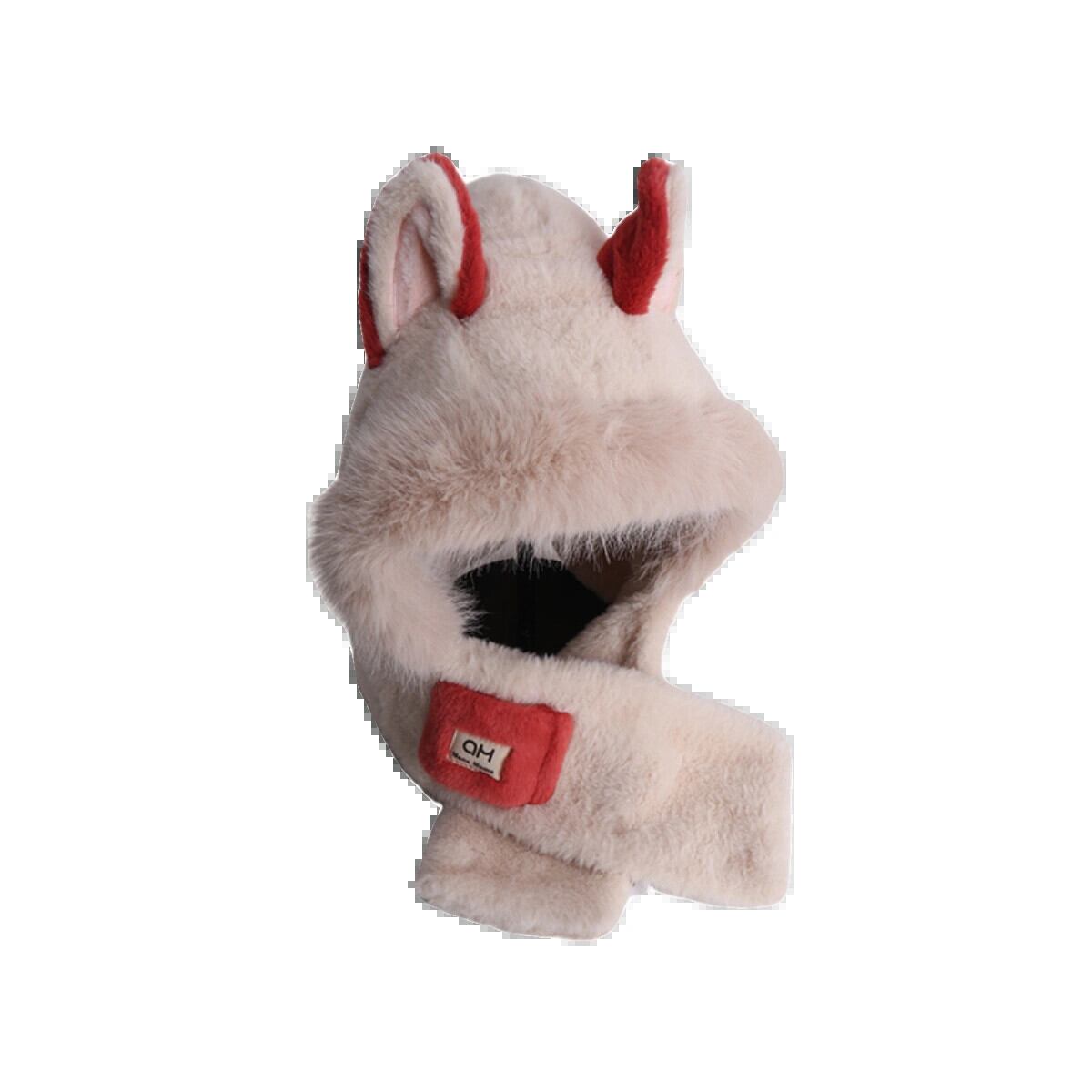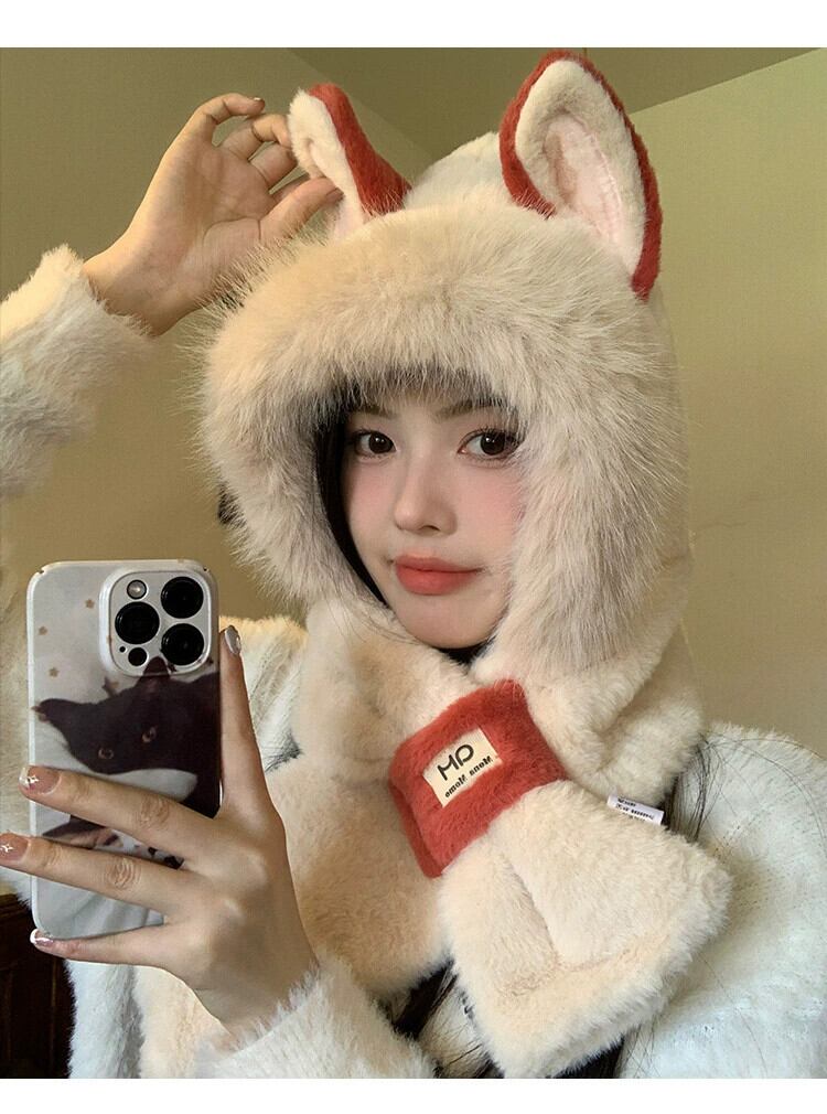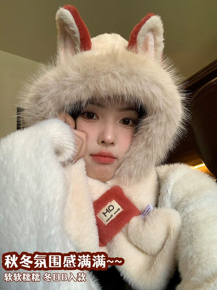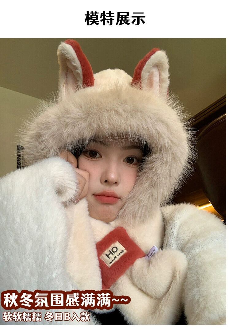 かわいいキツネの耳のぬいぐるみ帽子スカーフ、オールインワンの女子学生冬スカーフ、暖かく保ち、寒いライディングを防ぎ、ベルベットのトレンドをプラスします。 大人ガーリー スウィート キュート カジュアル ウィンター 冬物 15dd75489829166
