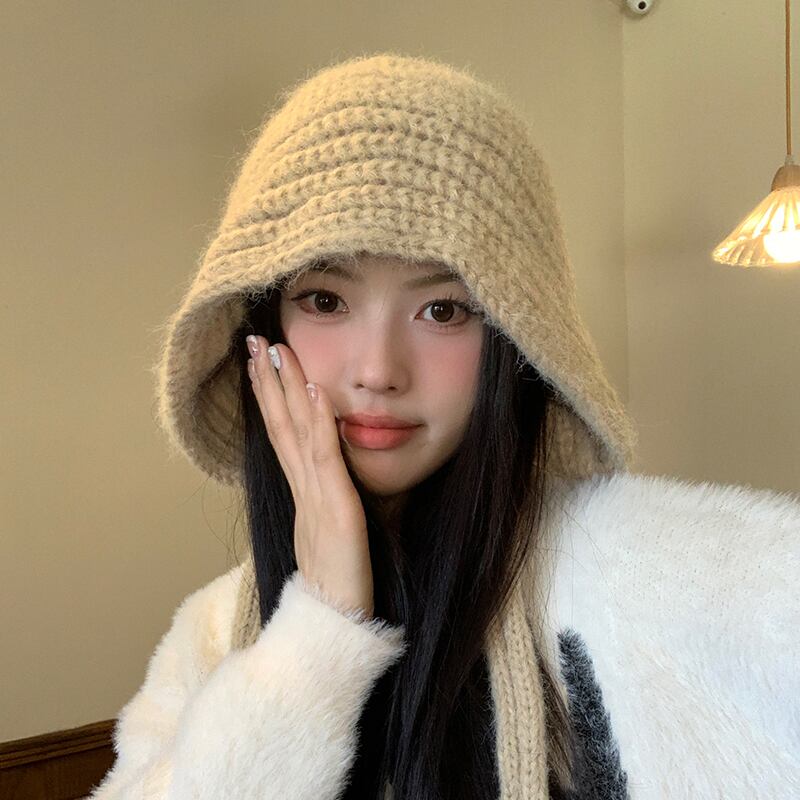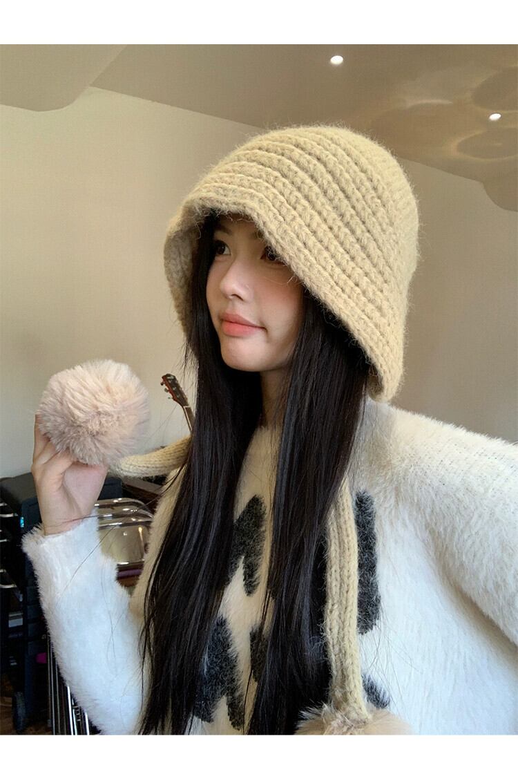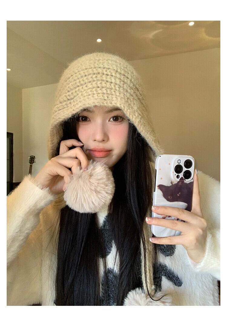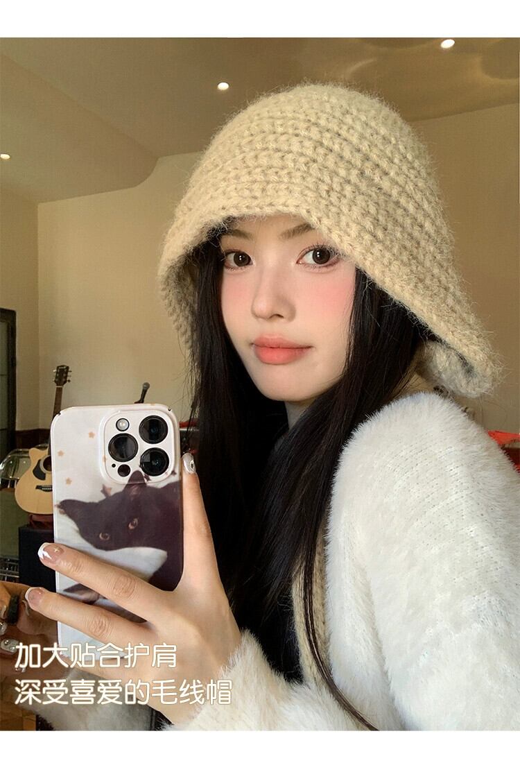 ウール入り無地ウールの女性の秋と冬多目的暖かい肥厚ニット帽子大きな頭囲顔が見える小さな包頭帽子 オータム 秋物 ウィンター 冬物 ソリッドカラー 15dd49393867132