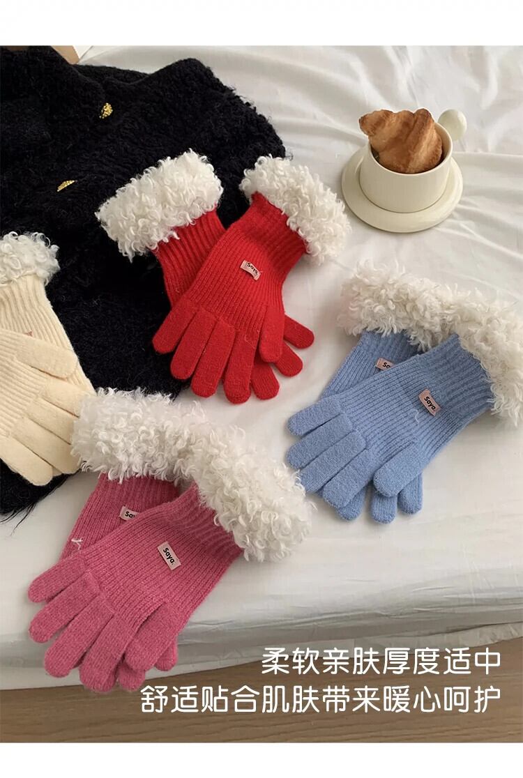 ぬいぐるみエッジ手袋女性冬 2023 新しいスタイルニット暖かいサイクリングバイク 5 本の指が分離され、タッチスクリーン防風性と防寒性 ウィンター 冬物 15dd3771122813