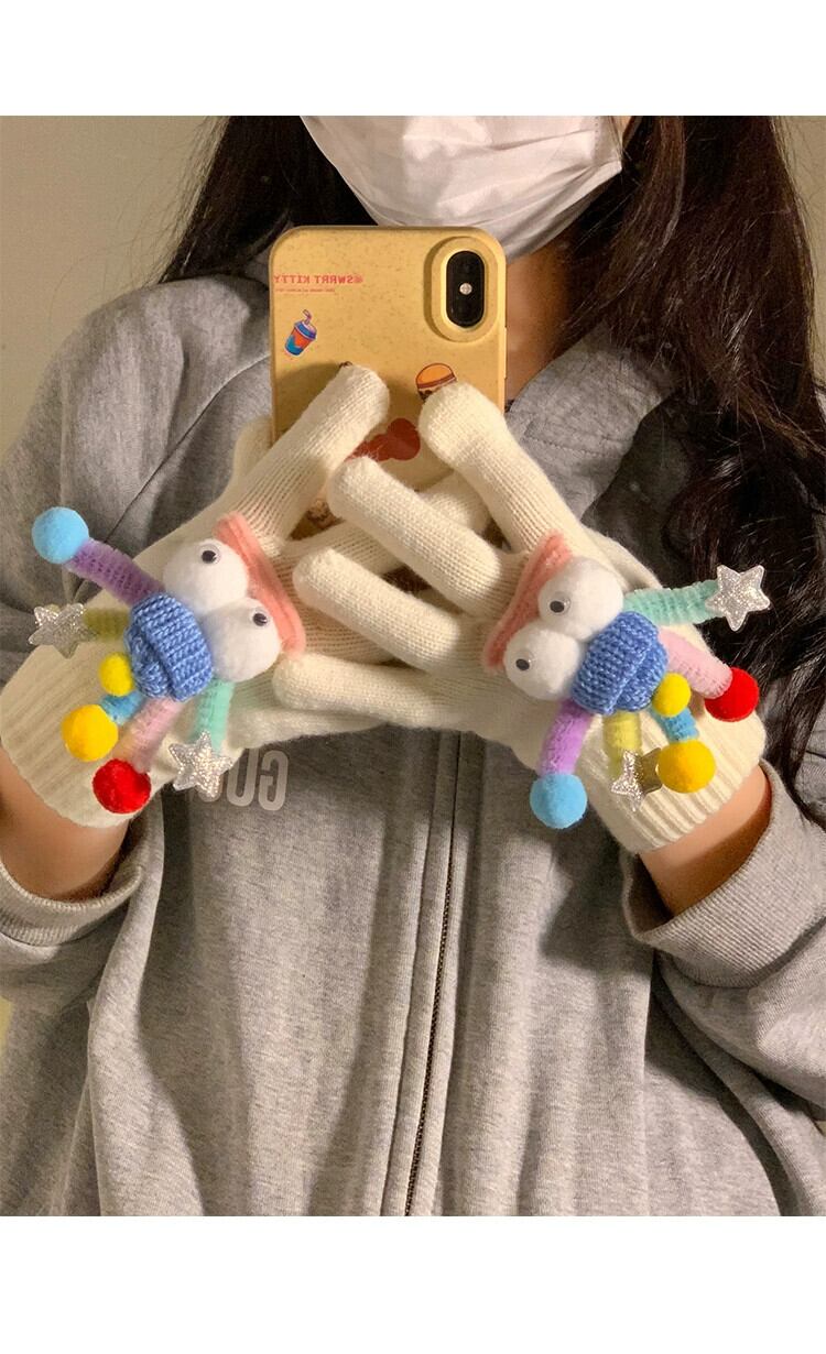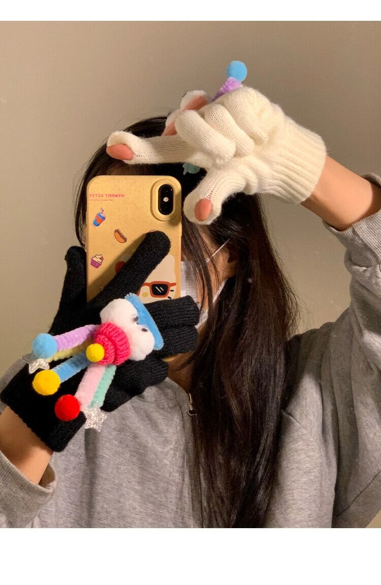 かわいいと面白い手袋女性冬の暖かい 5 本指電動自転車乗馬手袋学生防寒ぬいぐるみ 大人ガーリー スウィート キュート カジュアル ウィンター 冬物 15dd81959395598