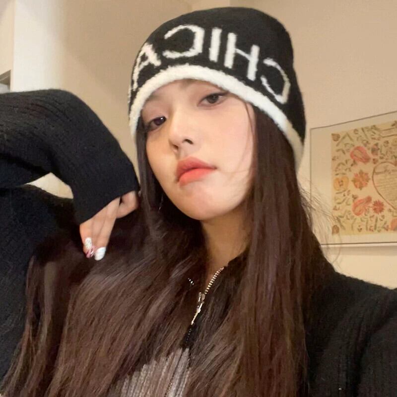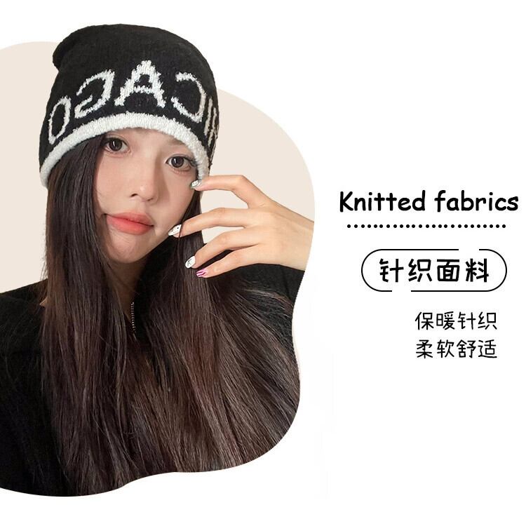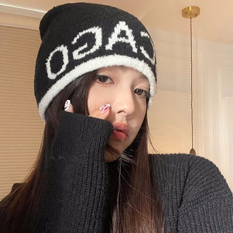 秋冬のブラックレターニットパイルハットレディース、頭囲が大きく、暖かく汎用性の高いストリートウールハットトレンドを保ちます。 帽子 オータム 秋物 ウィンター 冬物 15dd17936255674