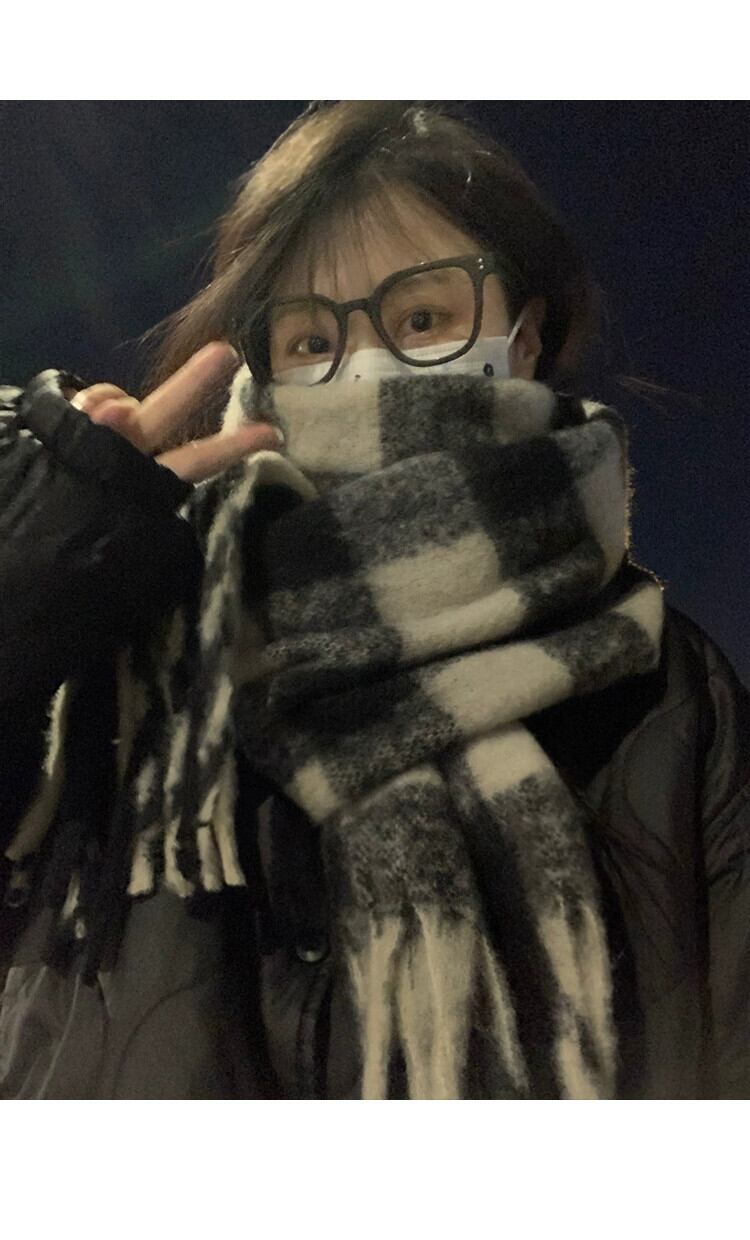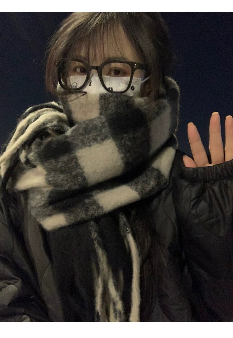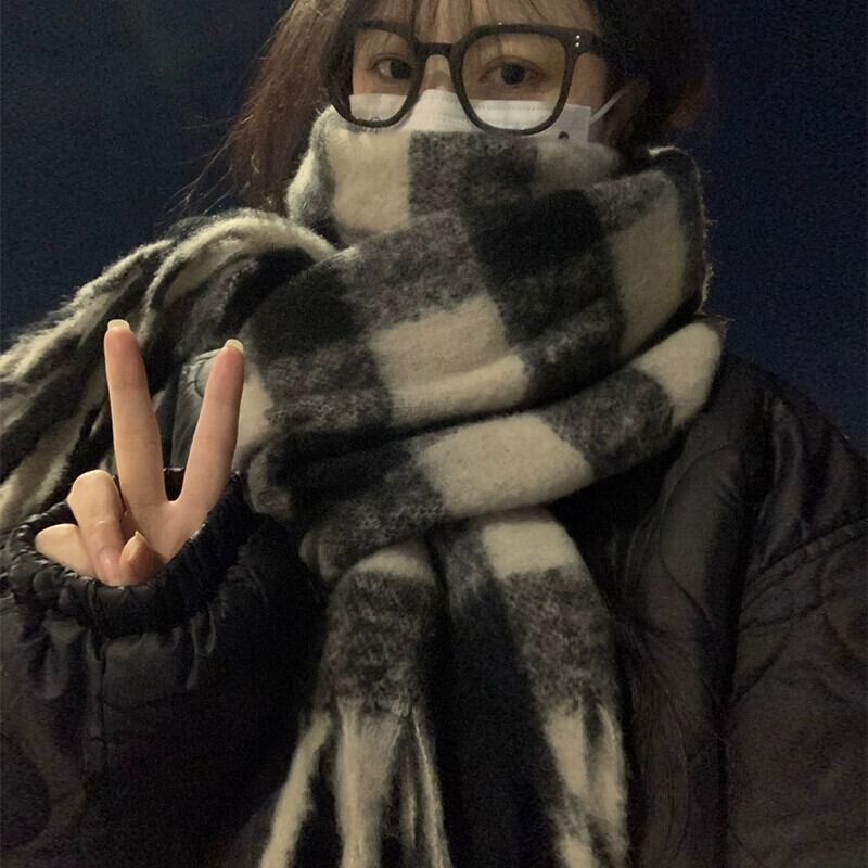 黒と白のチェック柄スカーフ女性冬模造カシミヤ 2023 新しい肥厚ロングスタイルハイエンド多用途モヘアスカーフ ホワイト ブラック ウィンター 冬物 15dd84801900175