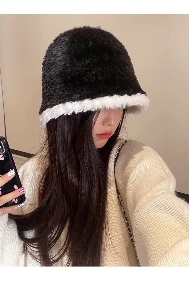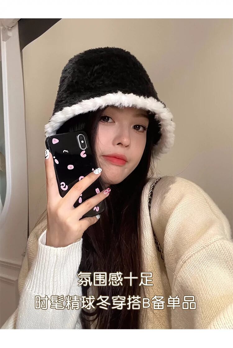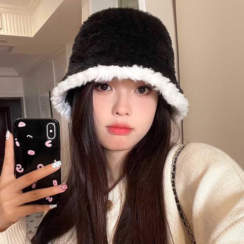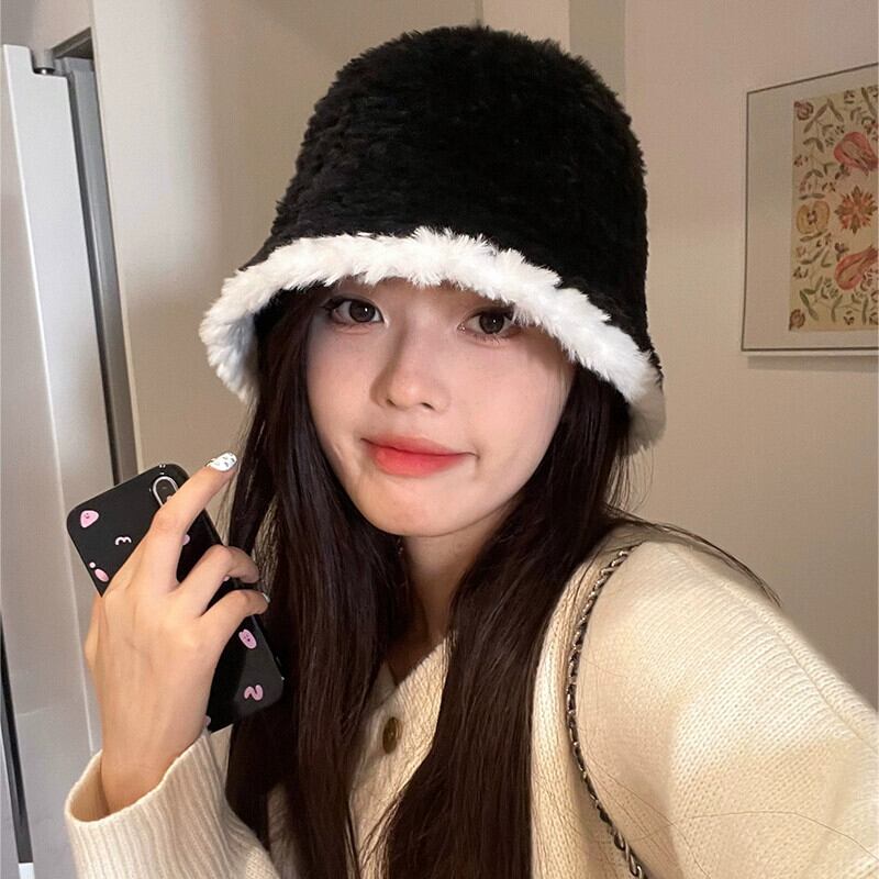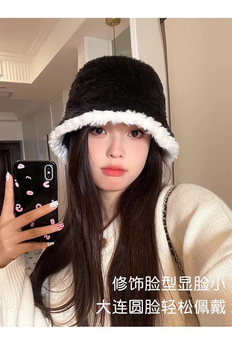 帽子女性の豪華な漁師の帽子 2023 黒秋と冬多用途な顔を示す小さな盆地帽子冬暖かいバケットハット ブラック オータム 秋物 ウィンター 冬物 15dd82076599220