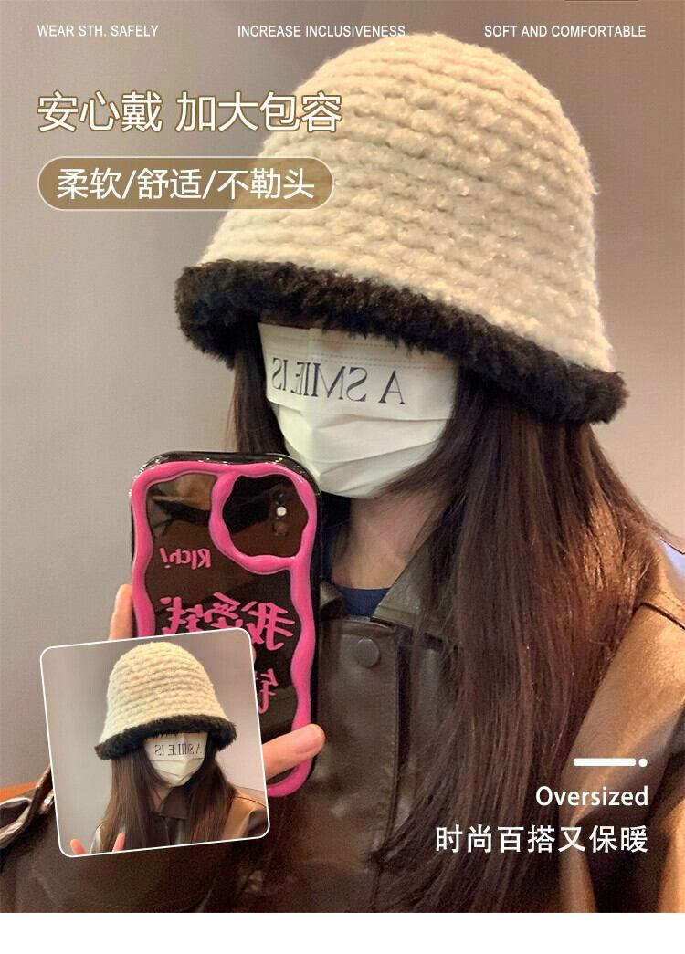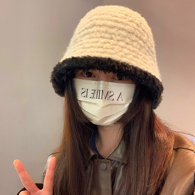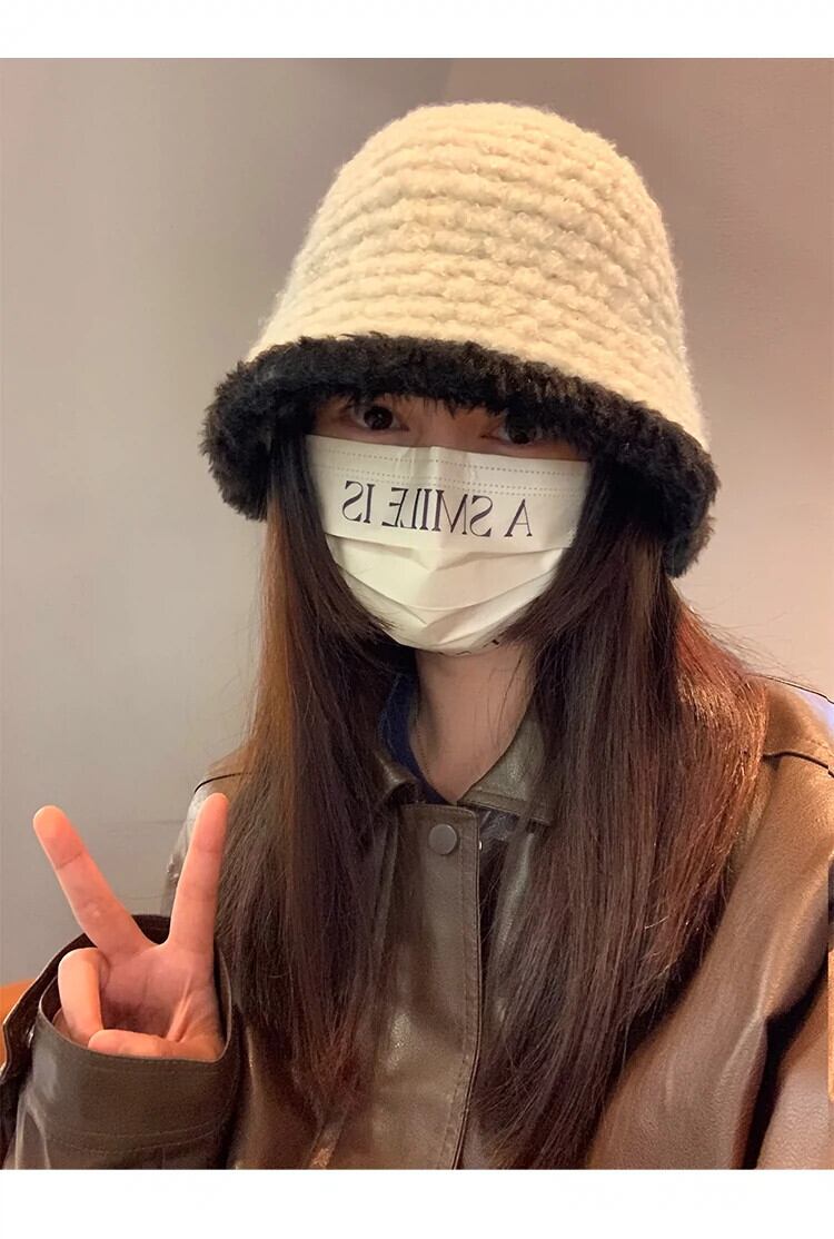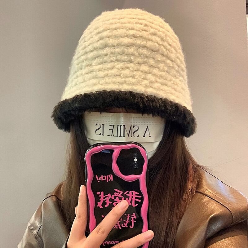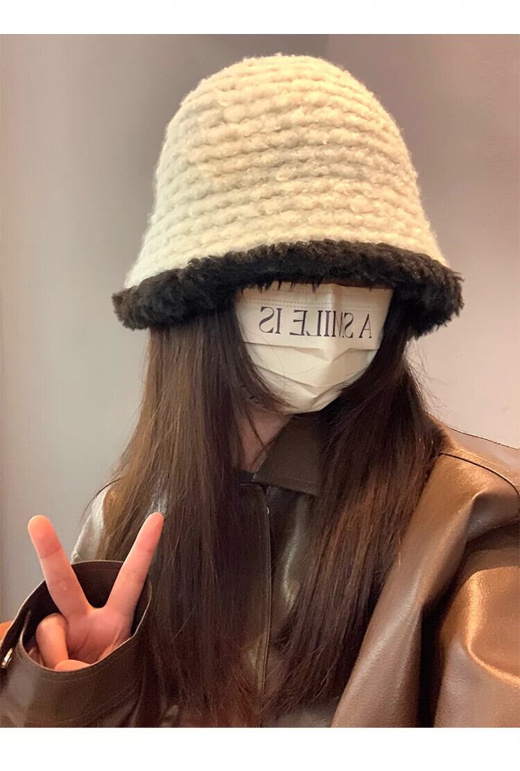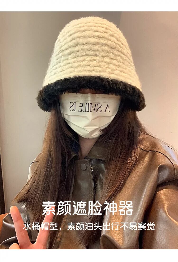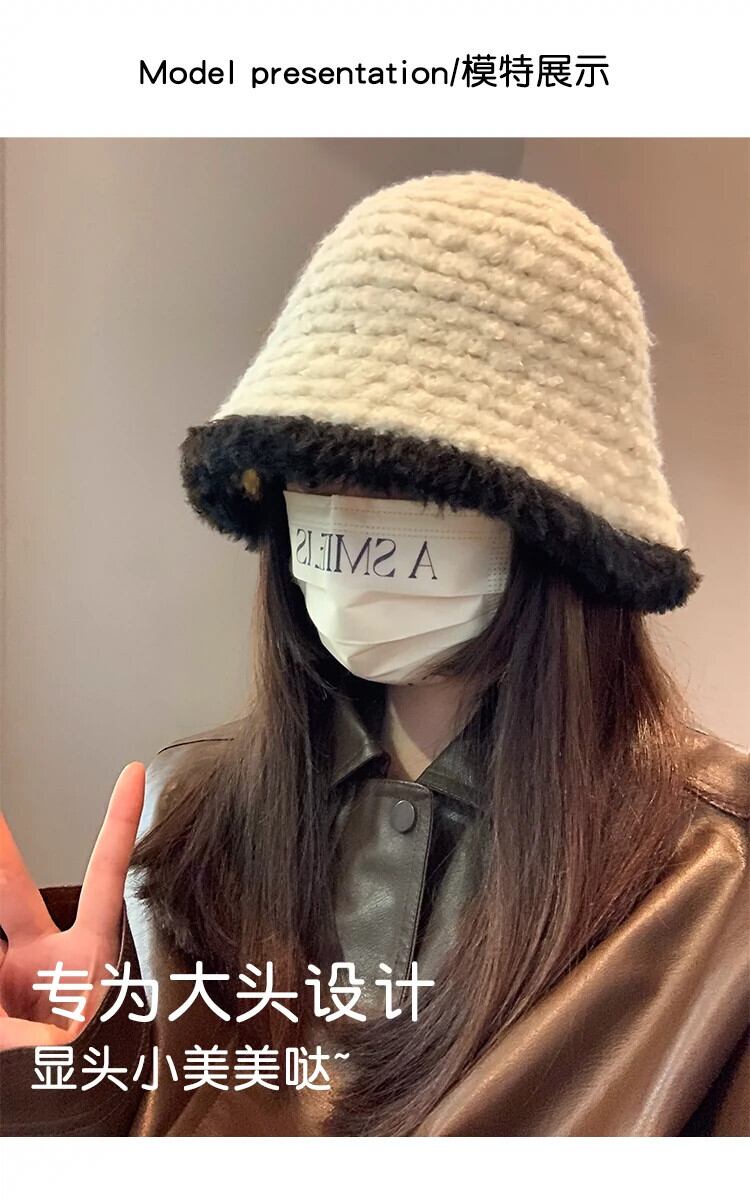 ese オールマッチベージュぬいぐるみバケットハット女性の冬の漁師の帽子 2023 新人表示小さなウールニット盆地帽子 ウィンター 冬物 15dd6434138715