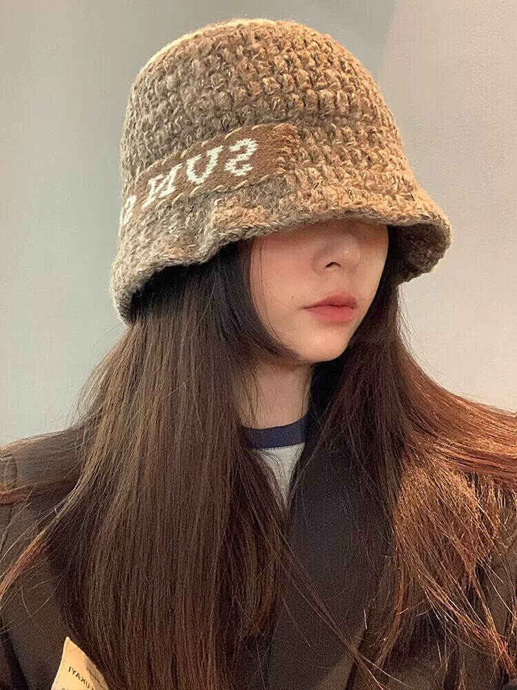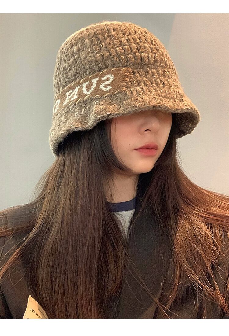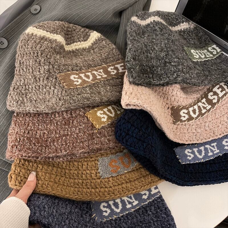 ニッチな手編みのウールの帽子、秋と冬の女性、カジュアルで多用途のカップルニット漁師の帽子、トレンドを披露 オータム 秋物 ウィンター 冬物 15dd53413409559