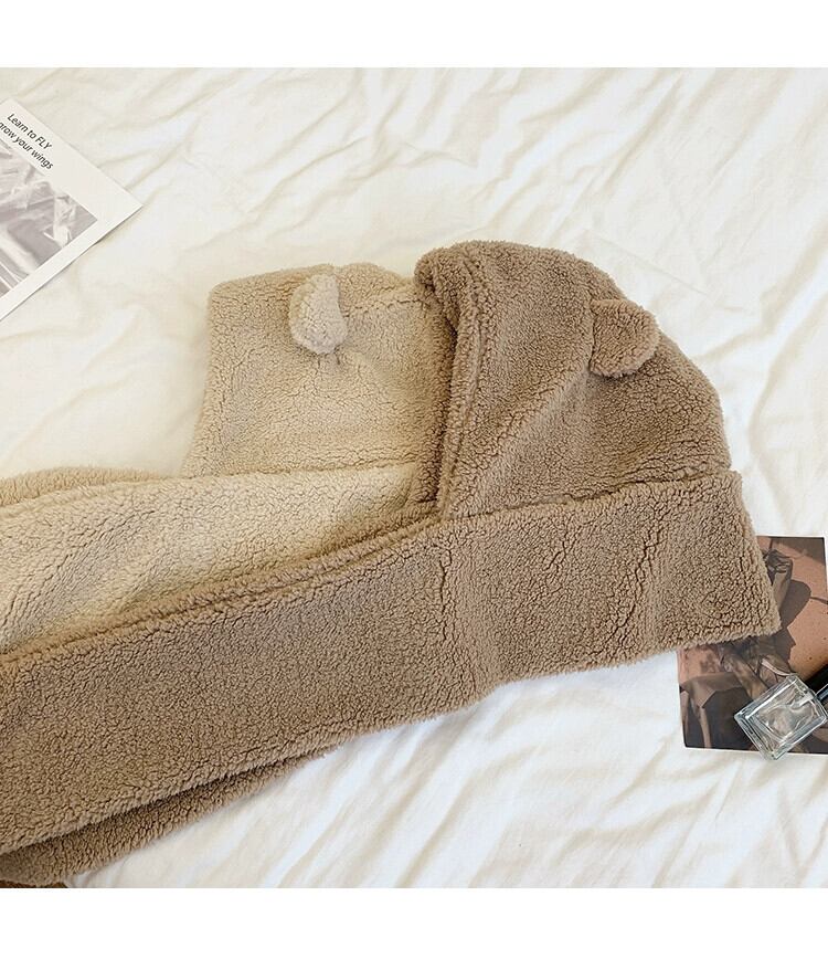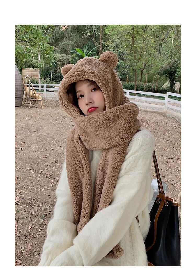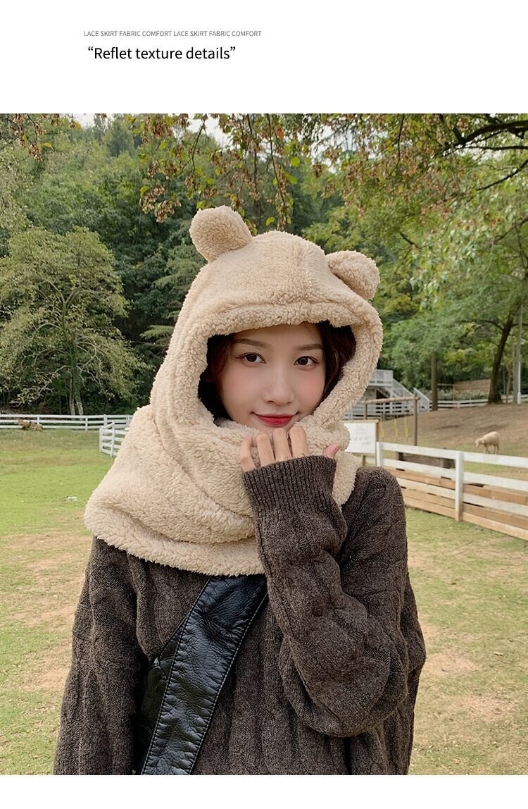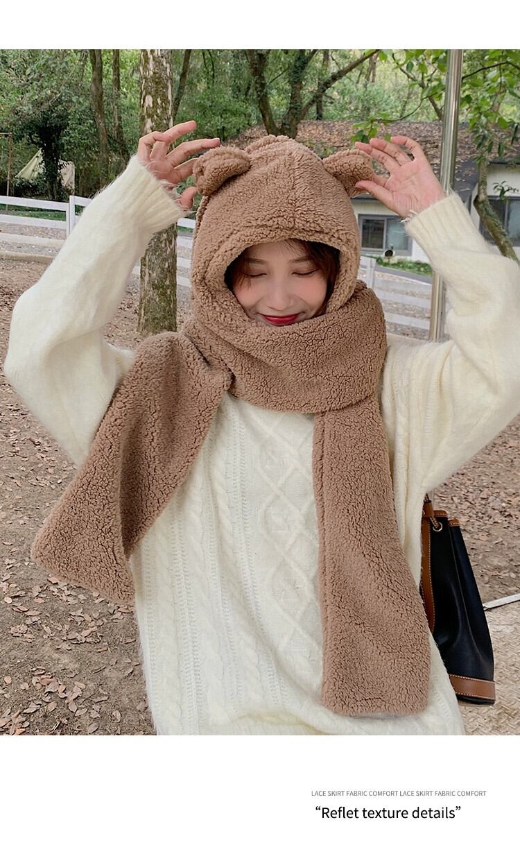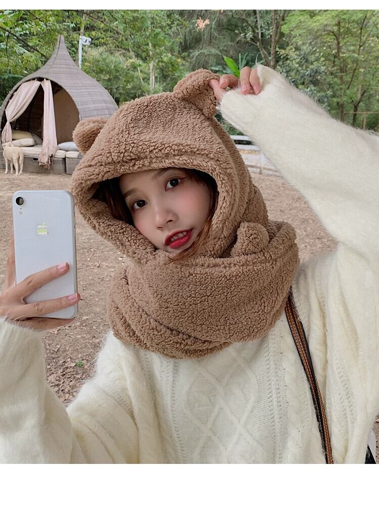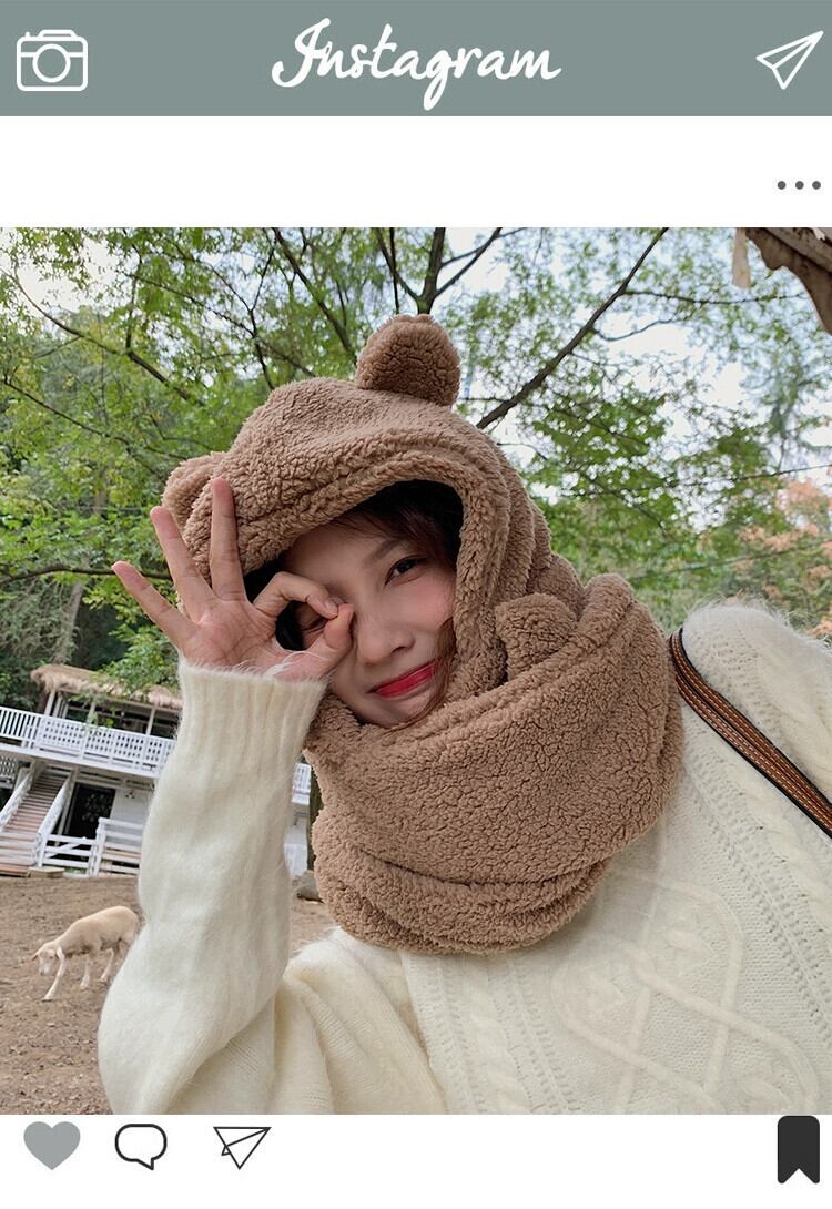 ジェニーと同じスタイルのクマ耳帽子とスカーフオールインワン女性秋冬かわいいぬいぐるみ暖かいバージョントレンディな冬 大人ガーリー スウィート キュート カジュアル オータム 秋物 ウィンター 冬物 15dd73401759072