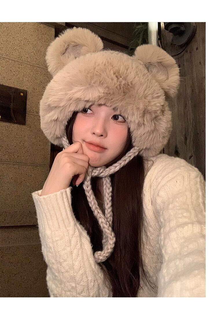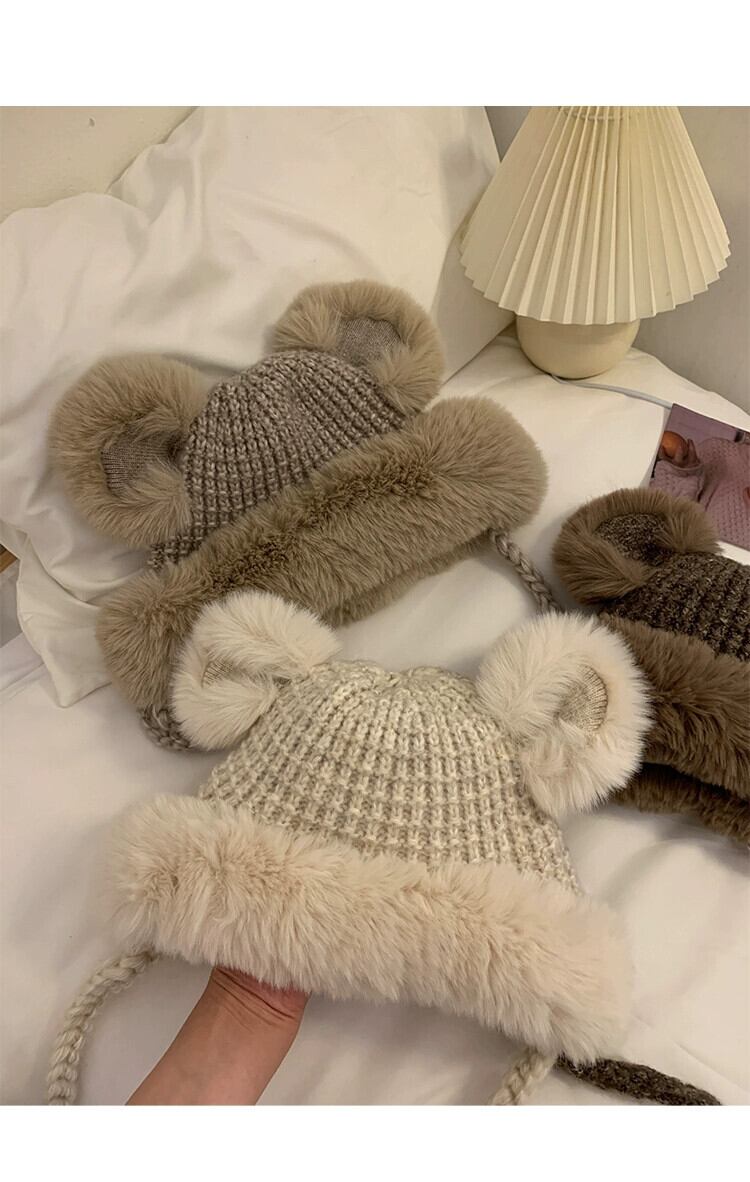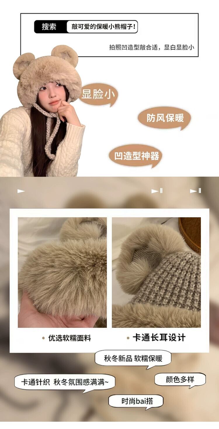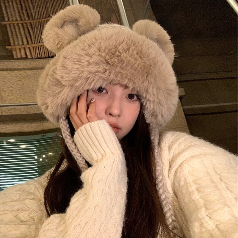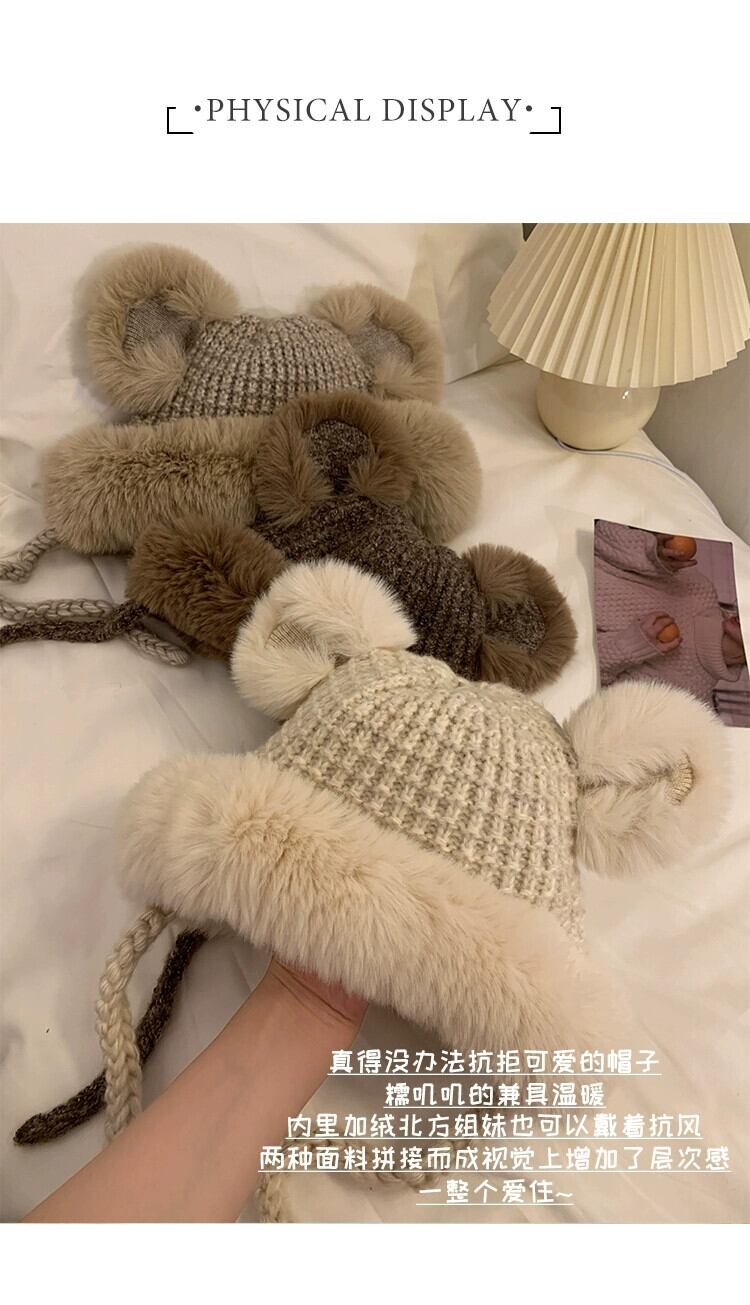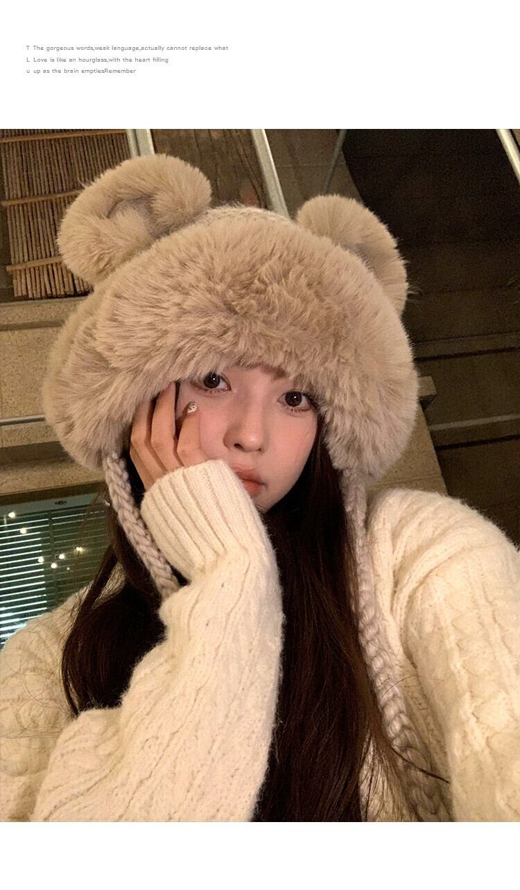 スタイルの女性の耳保護帽子秋と冬の新しい雷峰帽子多用途肥厚防寒毛皮のクマの耳プルオーバー帽子 オータム 秋物 ウィンター 冬物 15dd64645919935