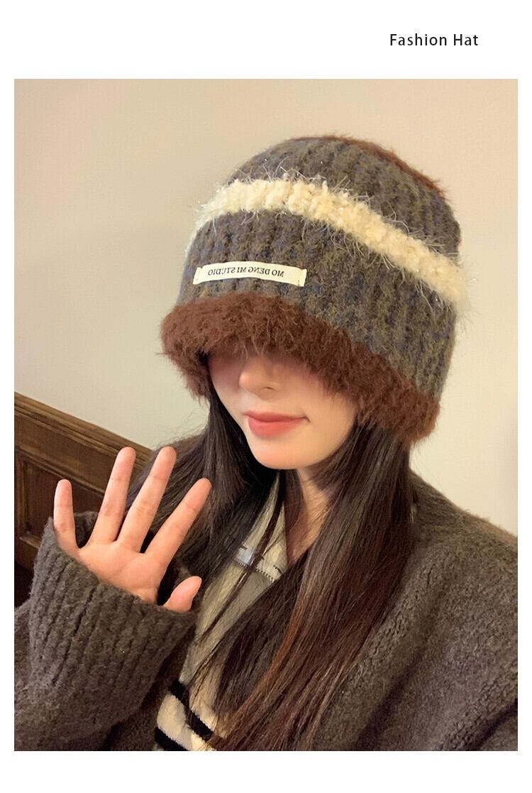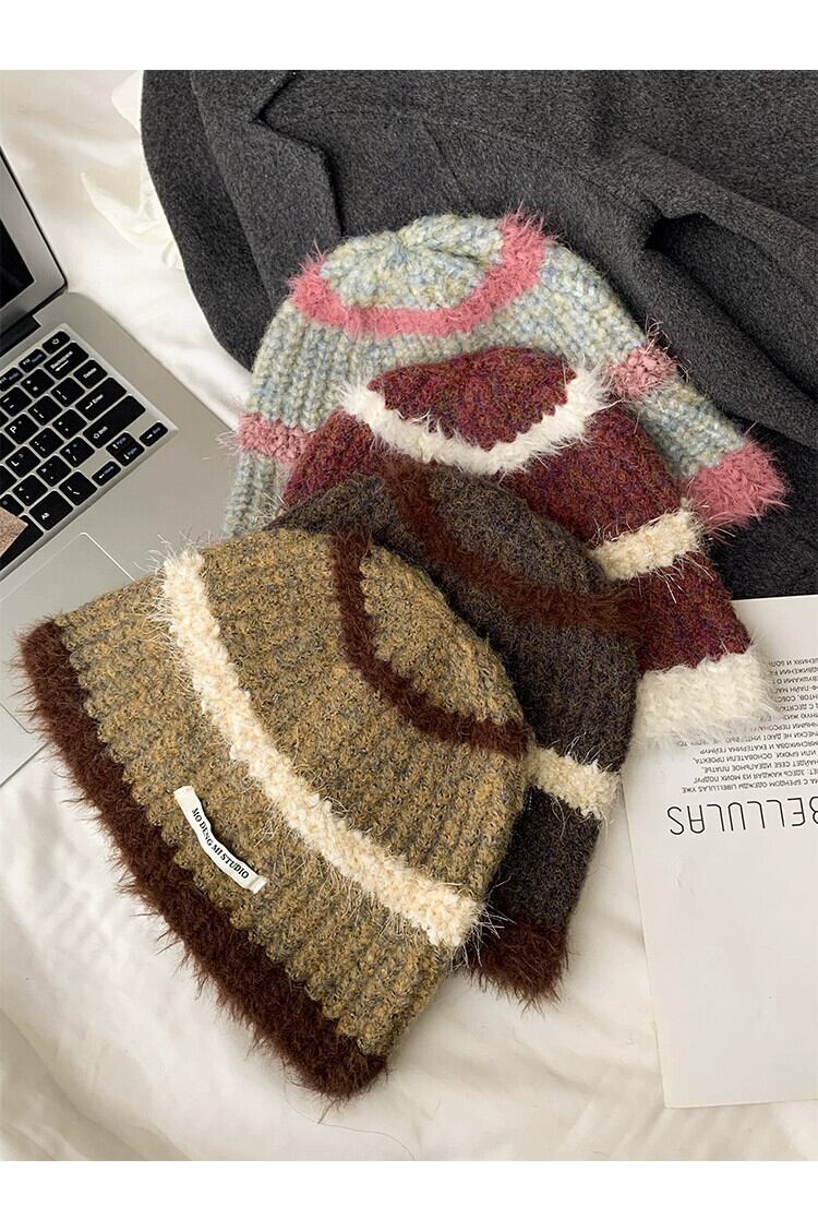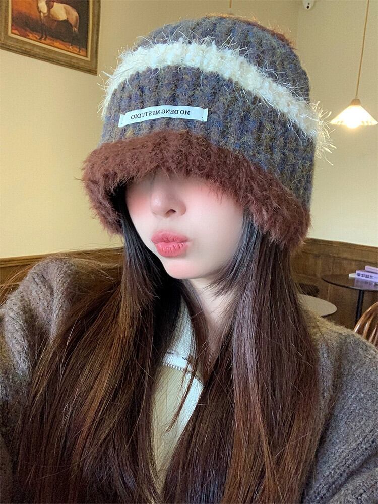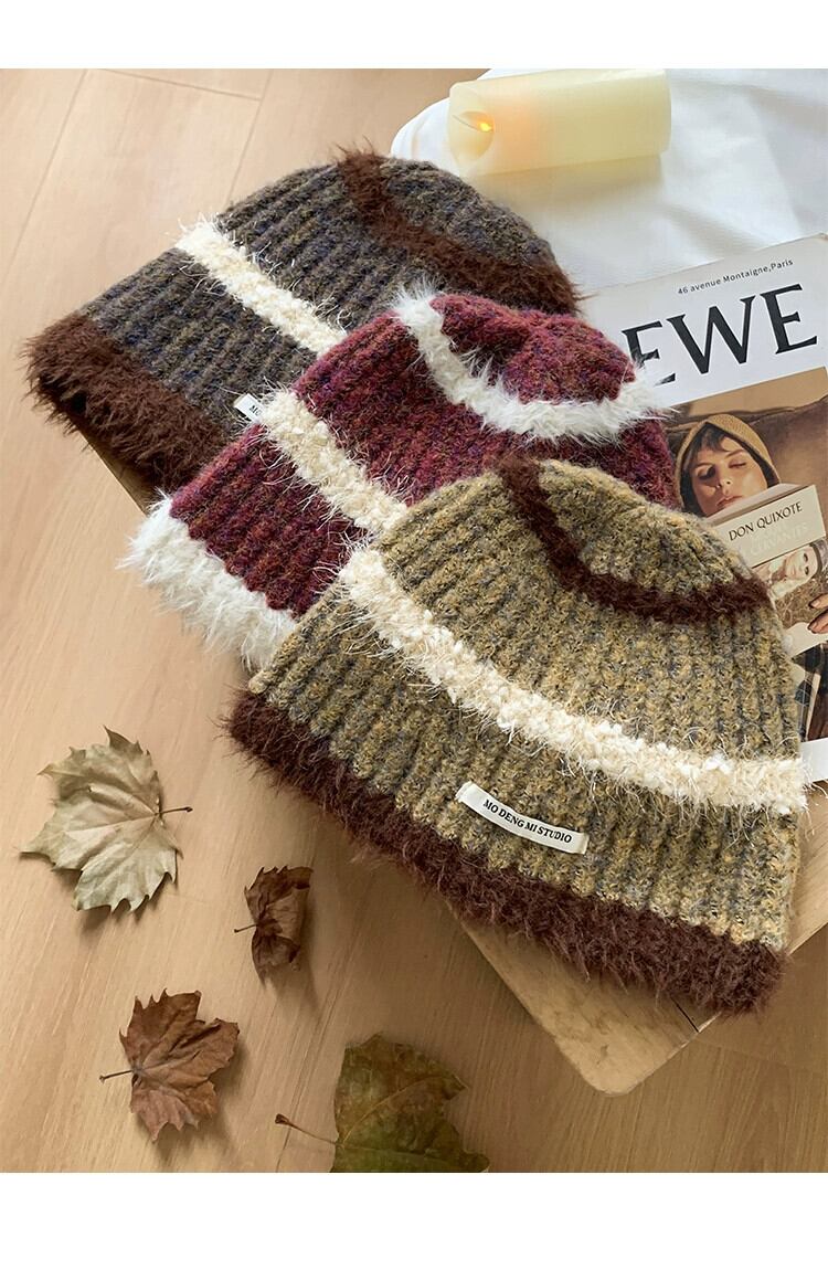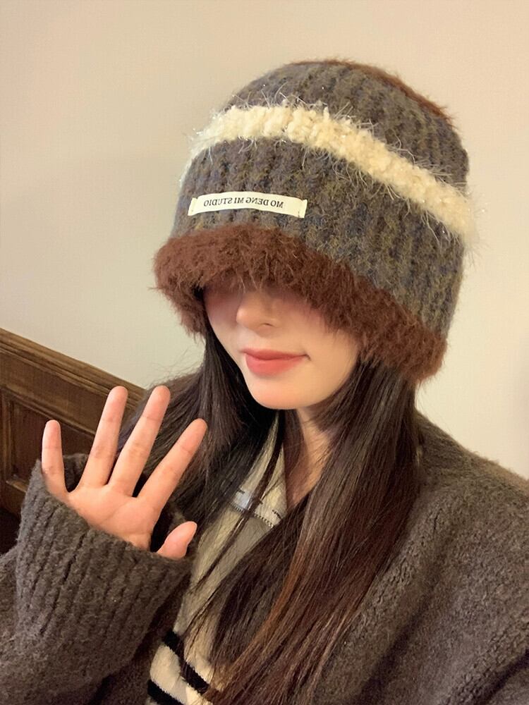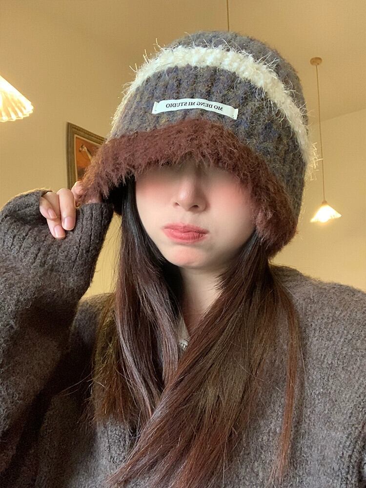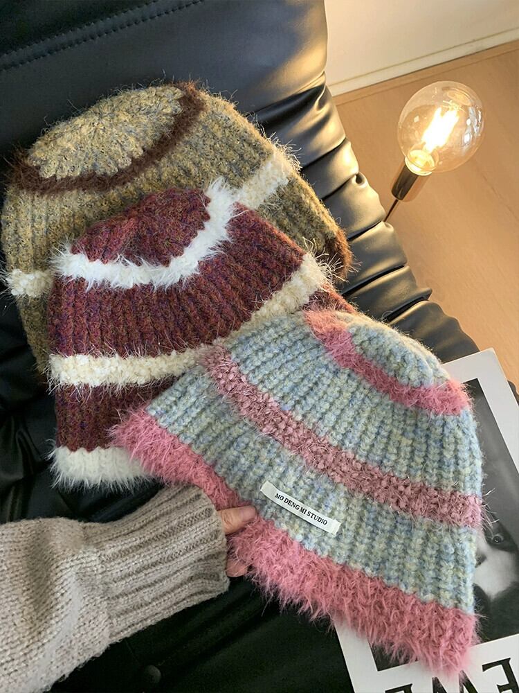 豪華なニット帽の女性 2023 冬の新しい暖かいストライプ耳保護ウール帽子多用途顔を見せて寒さから保護します ウィンター 冬物 15dd81052337382