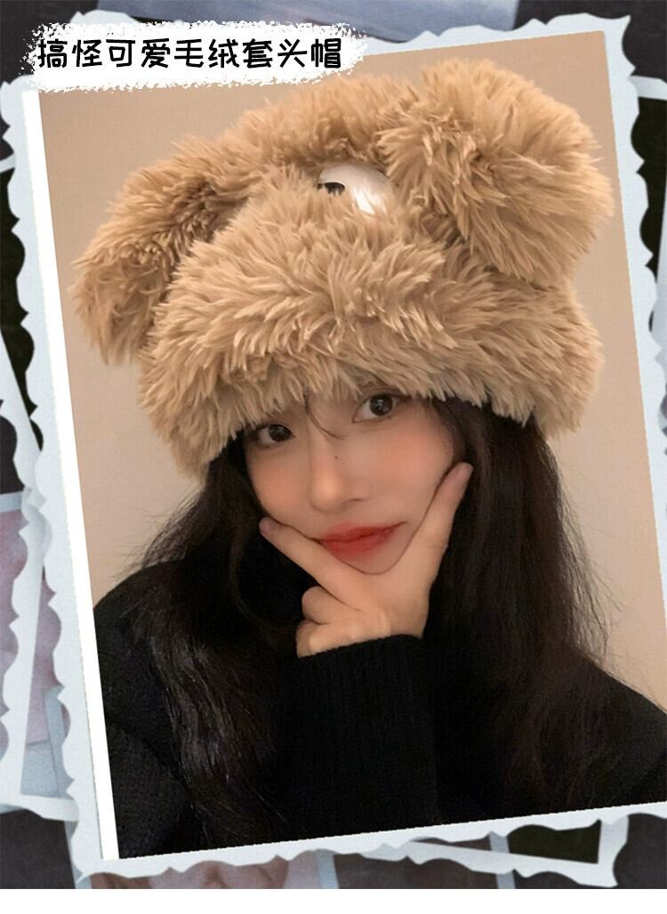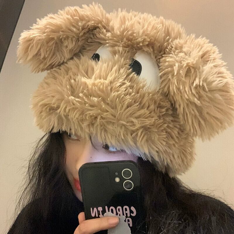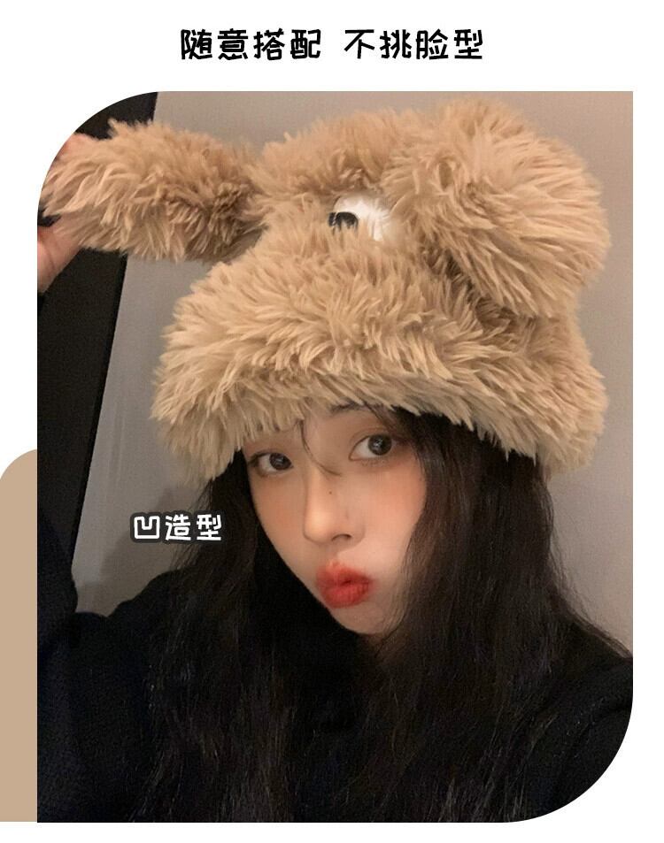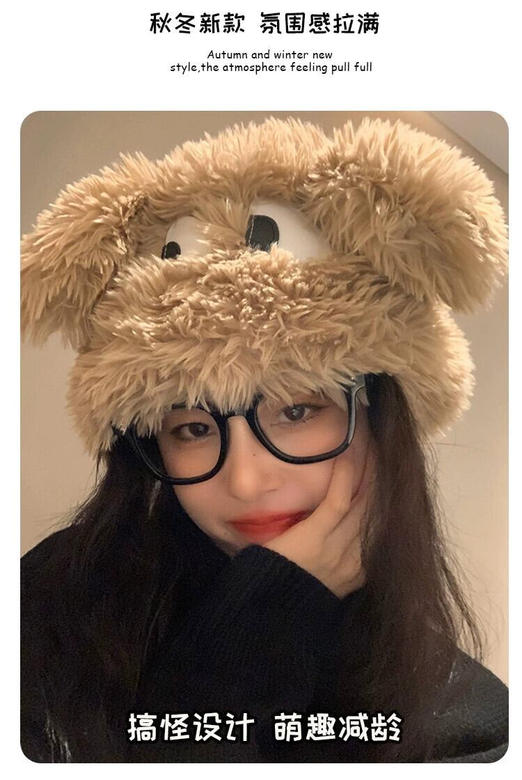 ぬいぐるみ子犬帽子女性の秋と冬暖かい耳保護ビーニー帽子かわいい耳多用途ニット大きな頭囲 大人ガーリー スウィート キュート カジュアル オータム 秋物 ウィンター 冬物 15dd28303974717