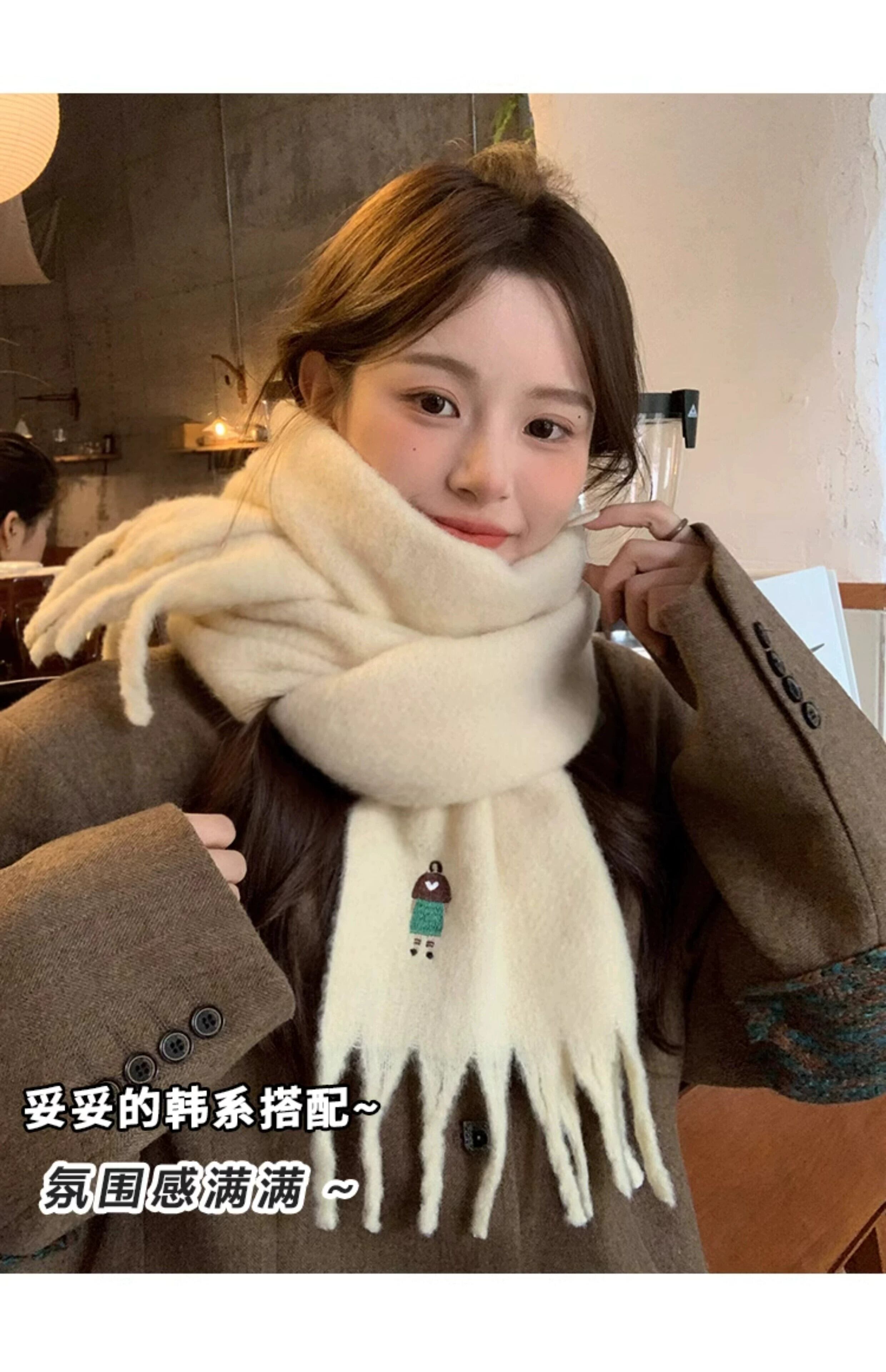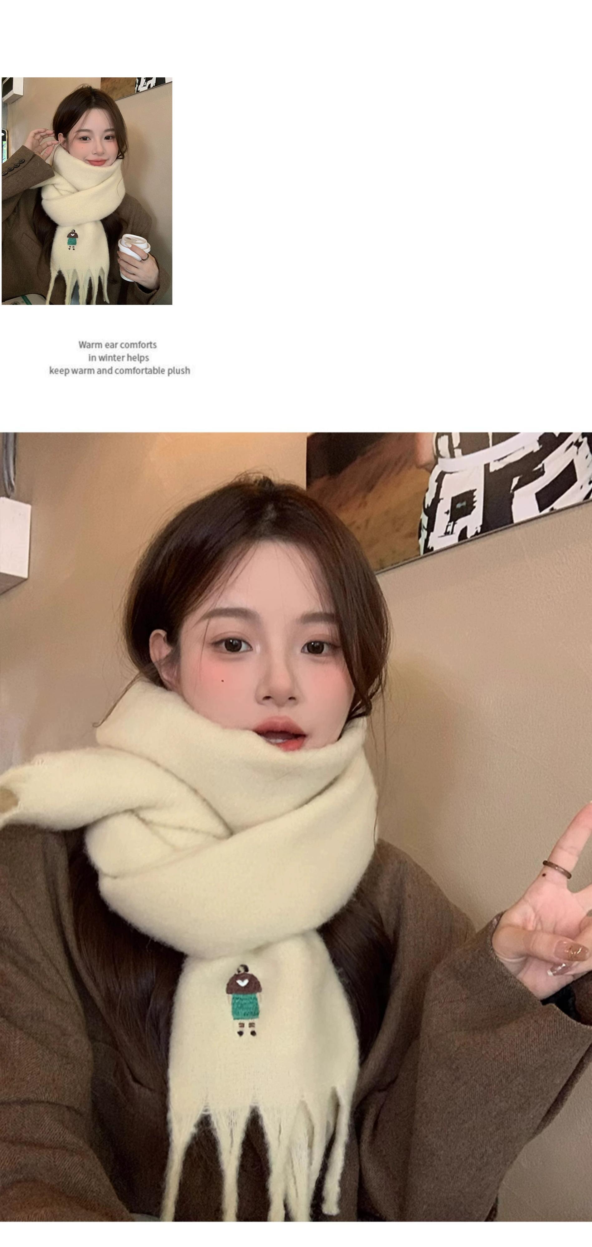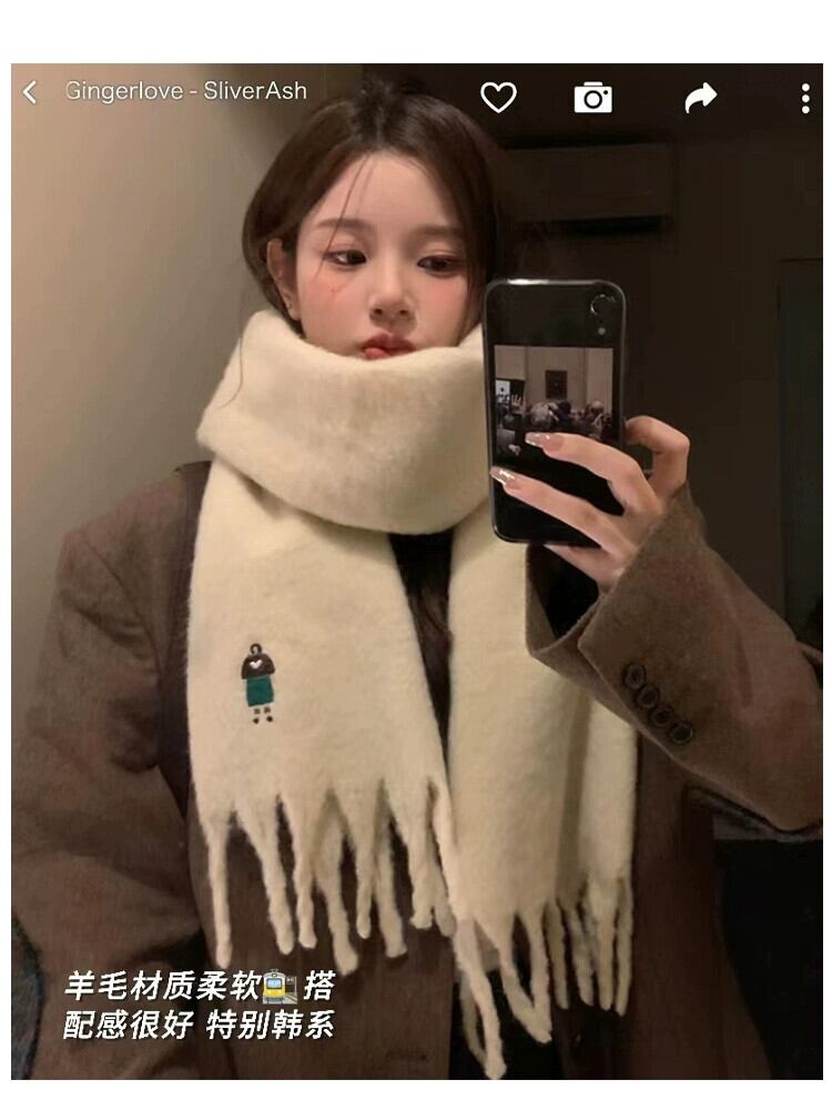 刺繍模造カシミヤスカーフ女性冬 2023 新しいハイエンドウォームホワイトスカーフ学生ショールトレンド レッド ウィンター 冬物 15dd46550277700