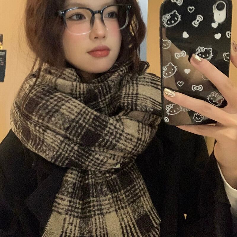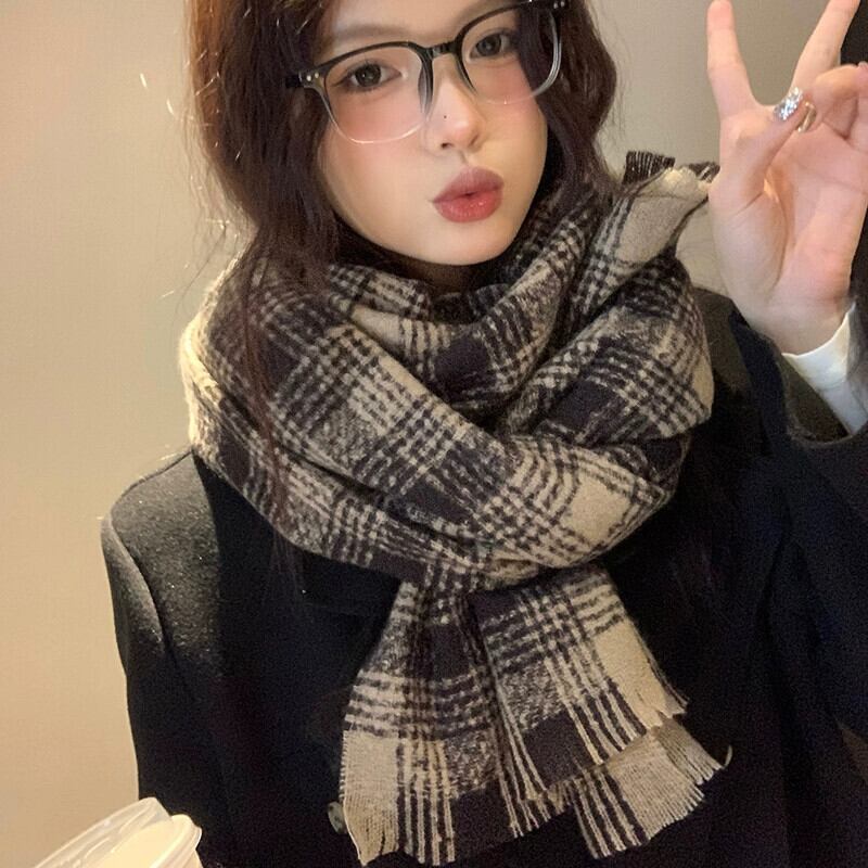 バージョン多用途チェック柄スカーフ女性の秋と冬 2023 新しい模造カシミヤ暖かく耐寒性肥厚ショールカップルネックスカーフ オータム 秋物 ウィンター 冬物 15dd9352394119