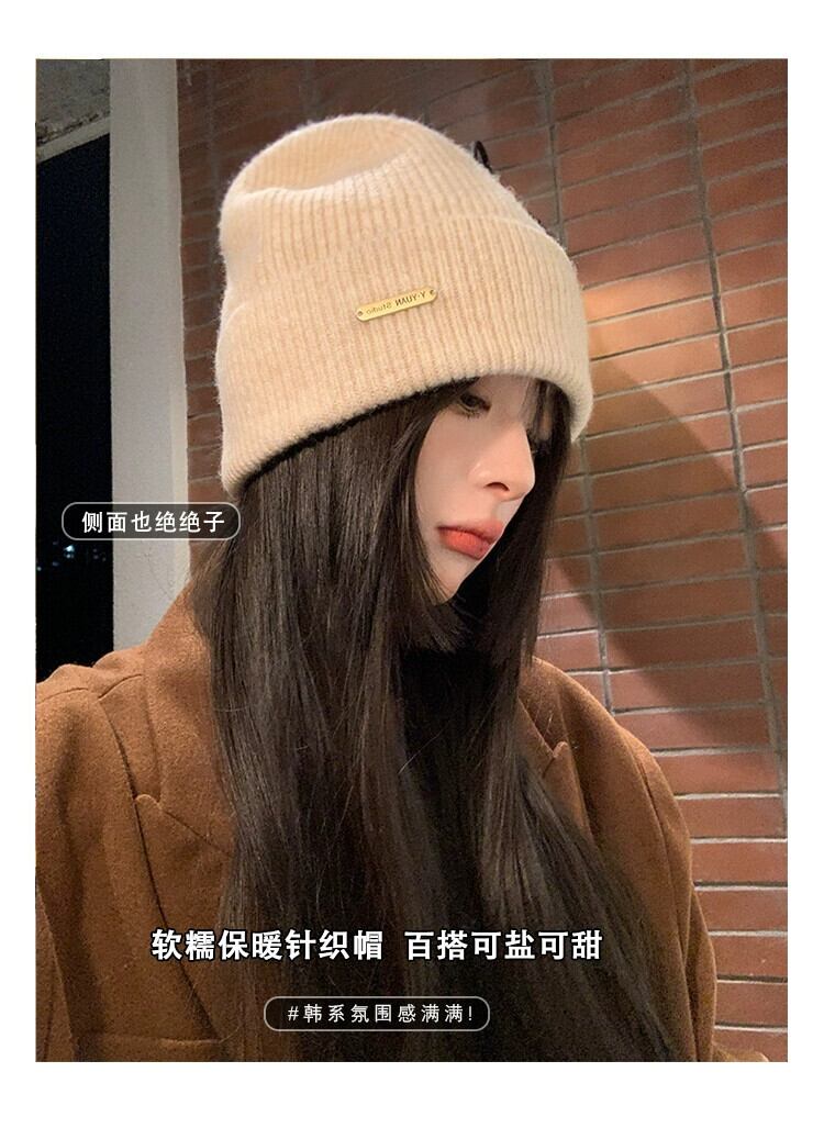 ニット帽子女性冬 2023 新スタイル小顔 ese スタイル暖かいウールの帽子大きな頭囲耳保護ヘッドバンド帽子トレンディな ウィンター 冬物 ヘアバンド ヘアアクセサリー 15dd34172605738