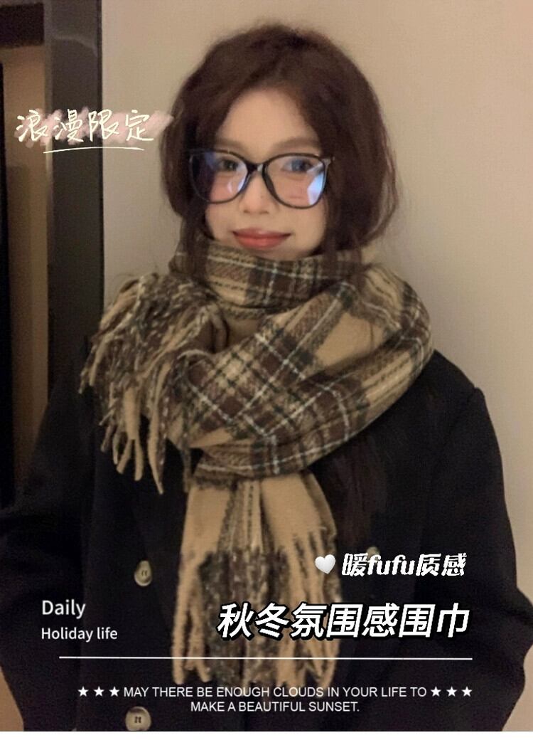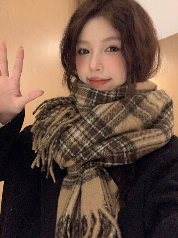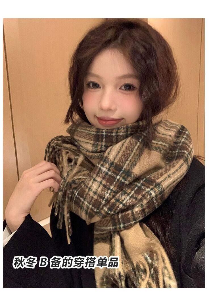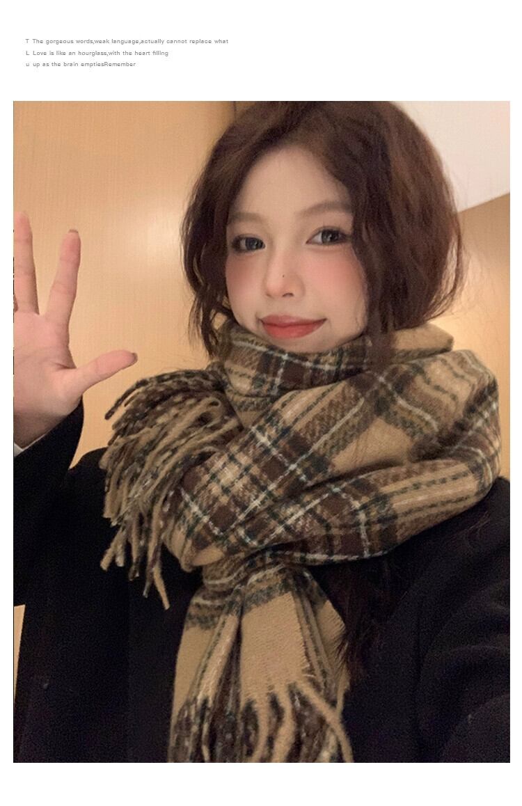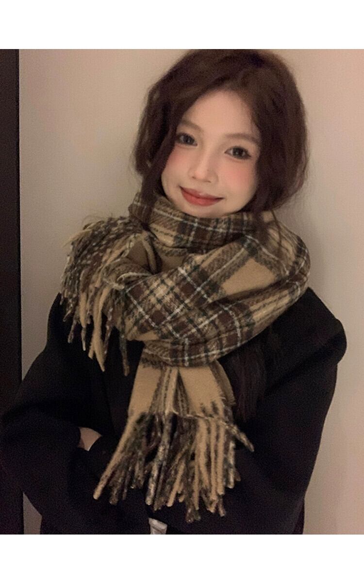 メイラードスタイル ese レトロスカーフ女性冬 2023 新しい多用途モヘア電話厚く暖かいスカーフ ウィンター 冬物 15dd40327806672